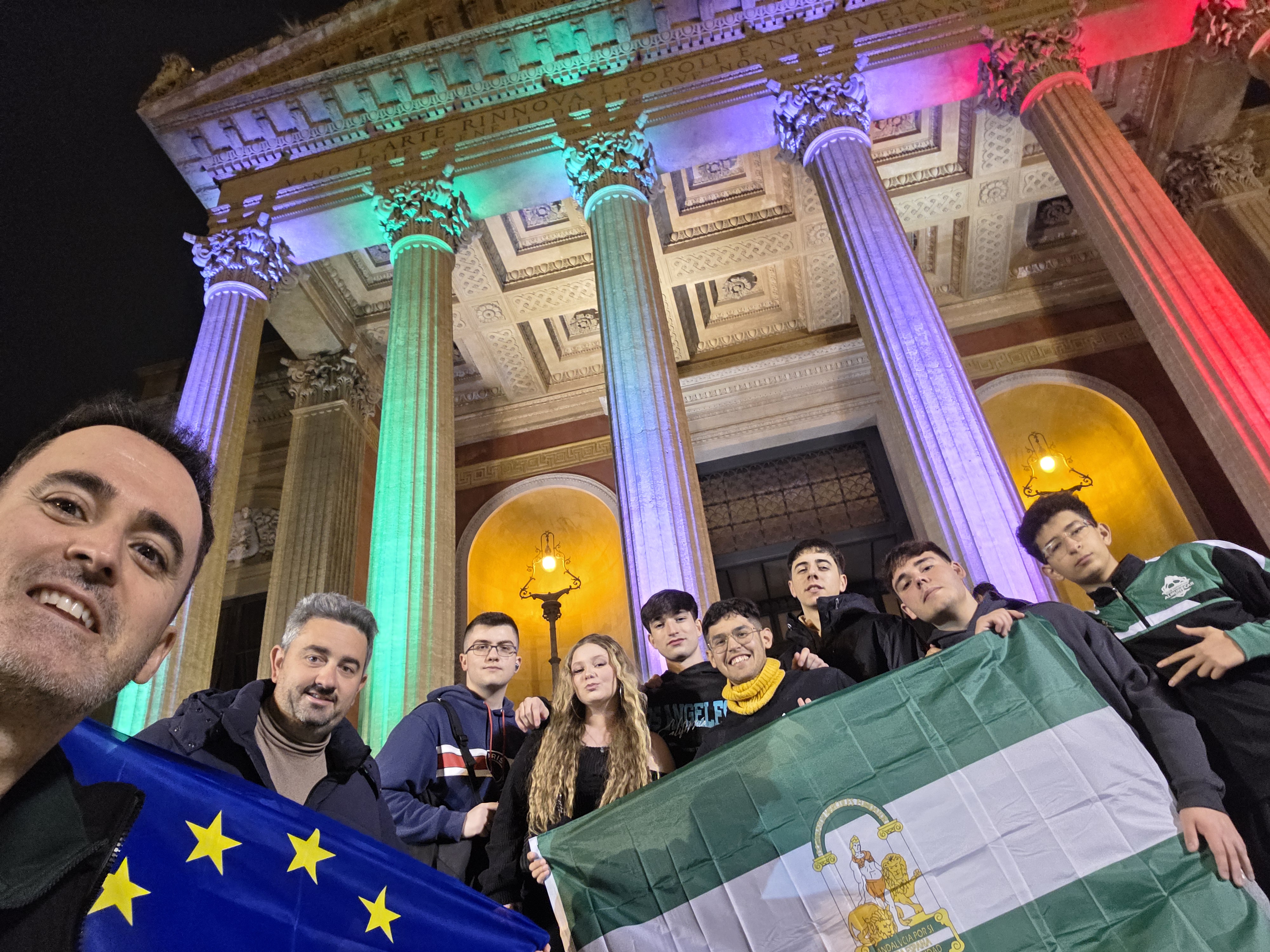 Pero lo más emocionante del día ha sido celebrar el 28 de febrero en Palermo. Nuestros alumnos han llevado Andalucía en el corazón, recordando nuestras raíces, nuestra cultura y todo lo que representa formar parte de una comunidad que apuesta por la educación pública y la movilidad europea.