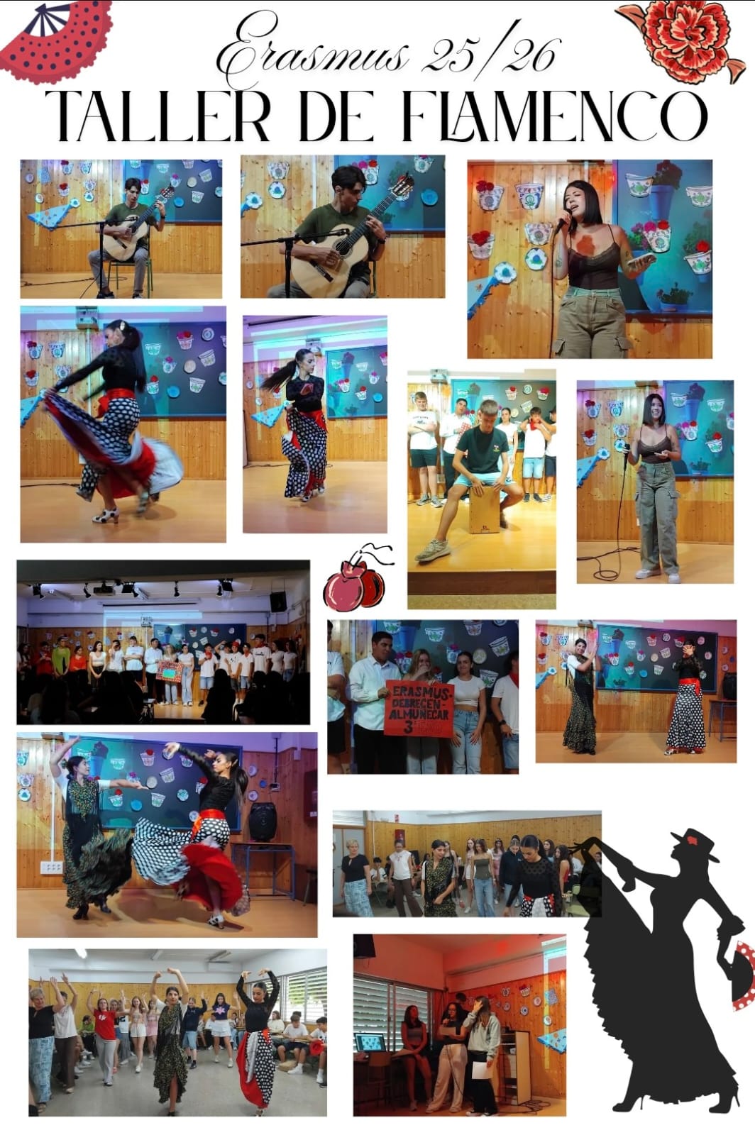 La semana pasada nos visitaron alumnos de Debrecen, dentro del programa Erasmus+ con Hungría. El miércoles 8 realizamos una actividad en la que les mostramos elementos de la cultura flamenca. Gracias a todos los participantes (alumnado de 1°BMAE, 2°BMAE y 3º ESO de Cultura Flamenca) especialmente a las profesoras que bailaron e impartieron el taller, María José y Eva.