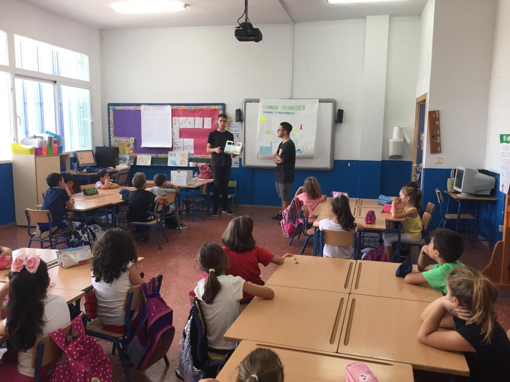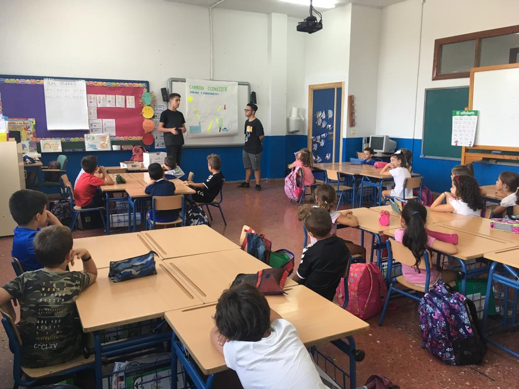 El viernes 11 de Octubre los alumnos de 1° de bachillerato del IES Al Andalus han estado en el CEIP la Santa Cruz a dar charlas sobre cambio climático. Esta actividad forma parte del programa “alumnos divulgadores de la ciencia”.