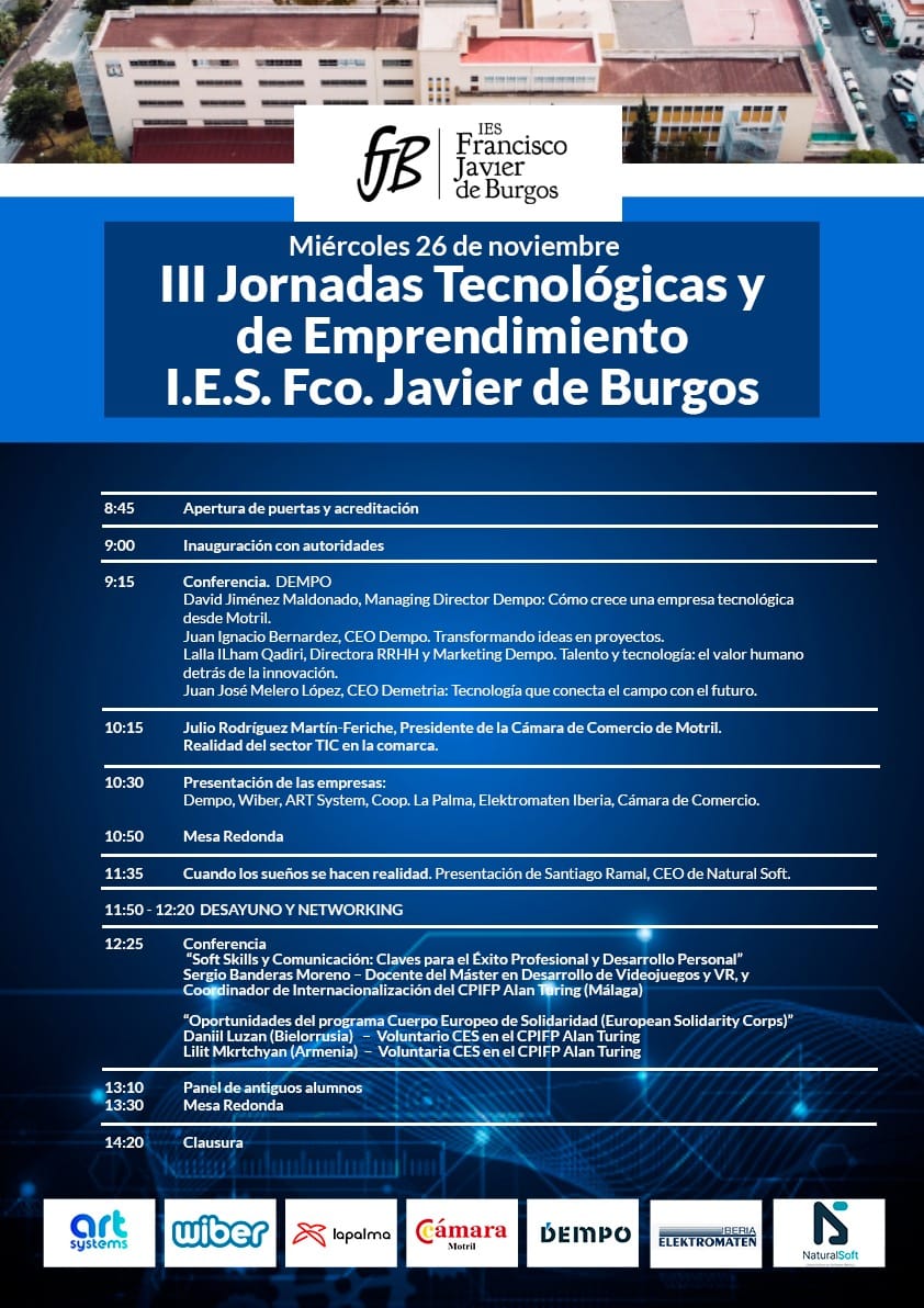El alumnado de 2º CFGM de Sistemas Microinformáticos y Redes participó en las III Jornadas Tecnológicas y de Emprendimiento organizadas por el IES Francisco Javier de Burgos de Motril (@iesfjb.oficial).