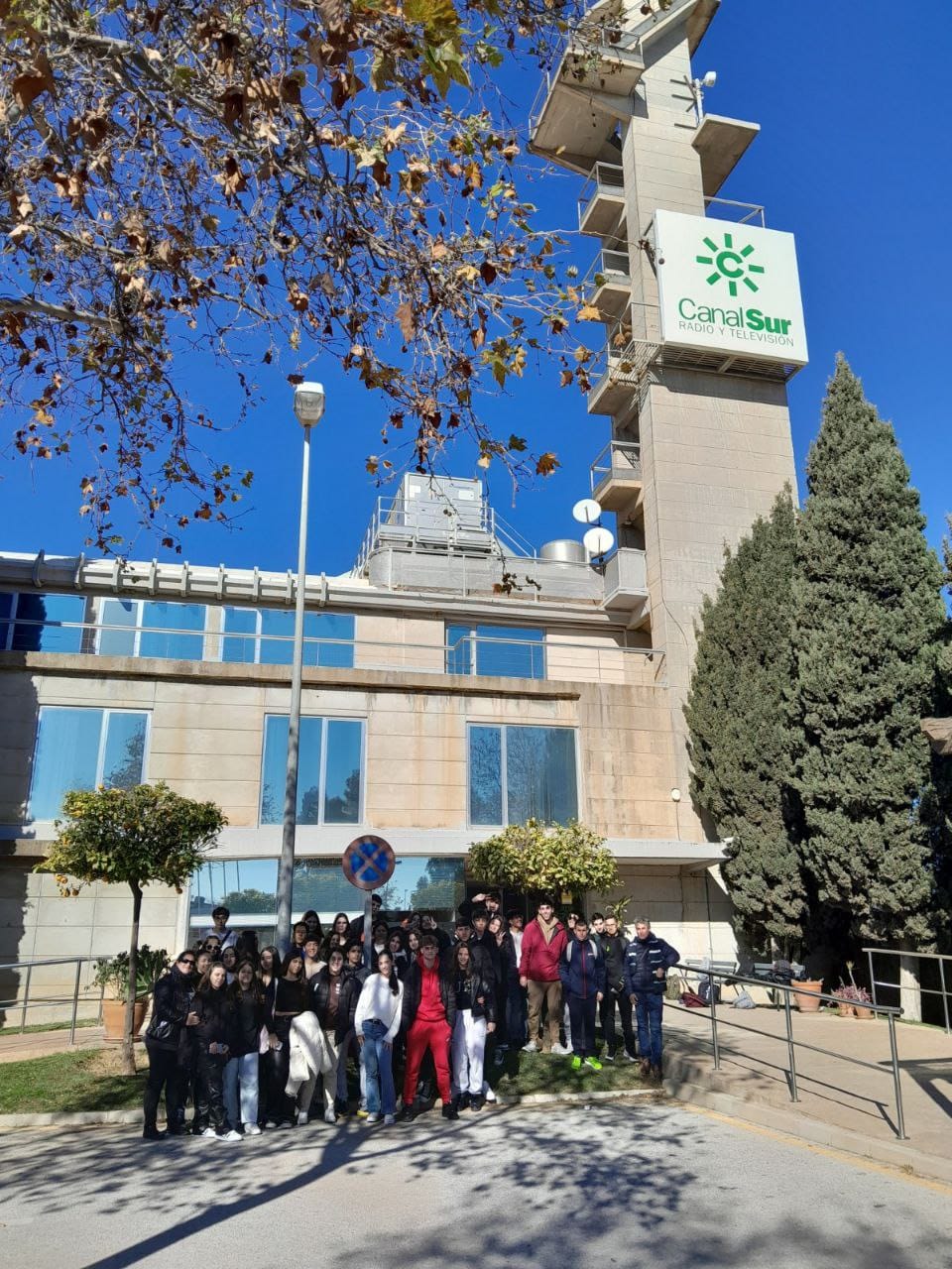 Este viernes los alumnos de 4°ESO C, 1 de FPB y 1 de Ciclo formativo de Electrónica y Electricidad han visitado junto a sus profesores Inmaculada Marin y Antonio Portillo las instalaciones de Canal Sur en Málaga. Ha sido una visita muy interesante en la que el alumnado ha conocido por dentro cómo funciona la televisión y la radio en Andalucía.