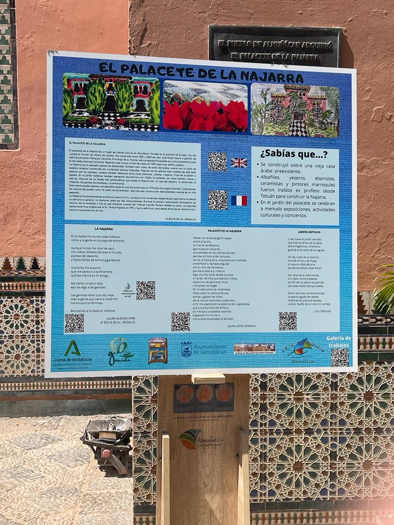 En el acto de presentación del viernes pudimos disfrutar de un maravilloso recital poético en el que recitaron sus poemas alumnado y poetas locales. Asistieron a dicho acto el Delegado de Turismo, los concejales de Cultura, Participación ciudadana, Servicios Sociales y nuestra inspectora, María Ángeles Almirón, así como una representación del alumnado de cada centro acompañado por sus directores y responsables de biblioteca. Nuestro centro ha estado trabajando durante ocho meses en la elaboración de dos paneles: el correspondiente a la botánica del parque del Majuelo, y el del Palacete de la Najarra.