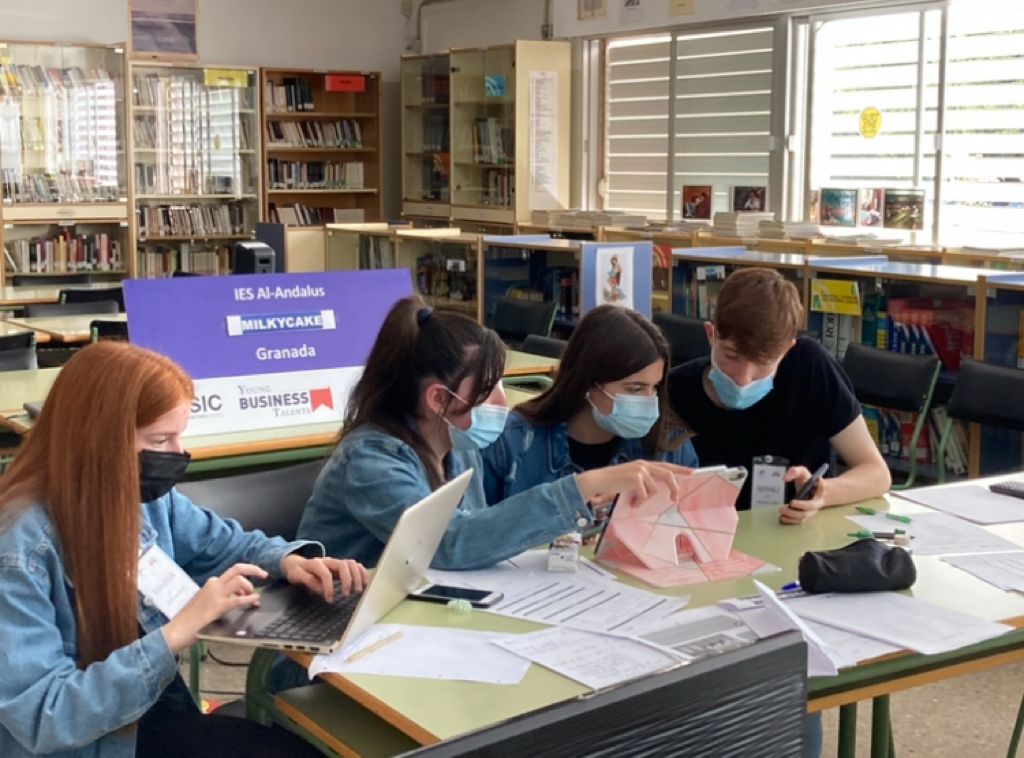 Por fin ha llegado la Final Nacional de esta edición de Young Business Talents España. Este viernes, día 7 de mayo, han participado los mejores emprendedores virtuales del país. Entre ellos, un equipo de nuestro Centro, formado por 4 alumnos de 1º de Bachillerato de Sociales, con el nombre de MILKYCAKE.