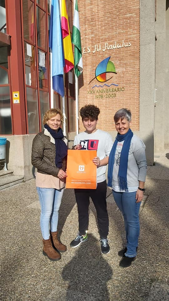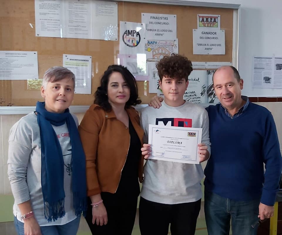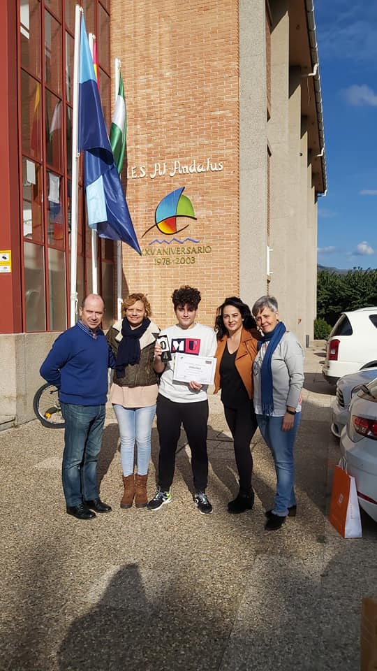 Aquí tenemos al ganador del concurso, Jorge García Gutiérrez, que recibe por parte del AMPA "El Acueducto" y con la asistencia del director del IES Al-Ándalus, su diploma de ganador y un pequeño regalo. Gracias