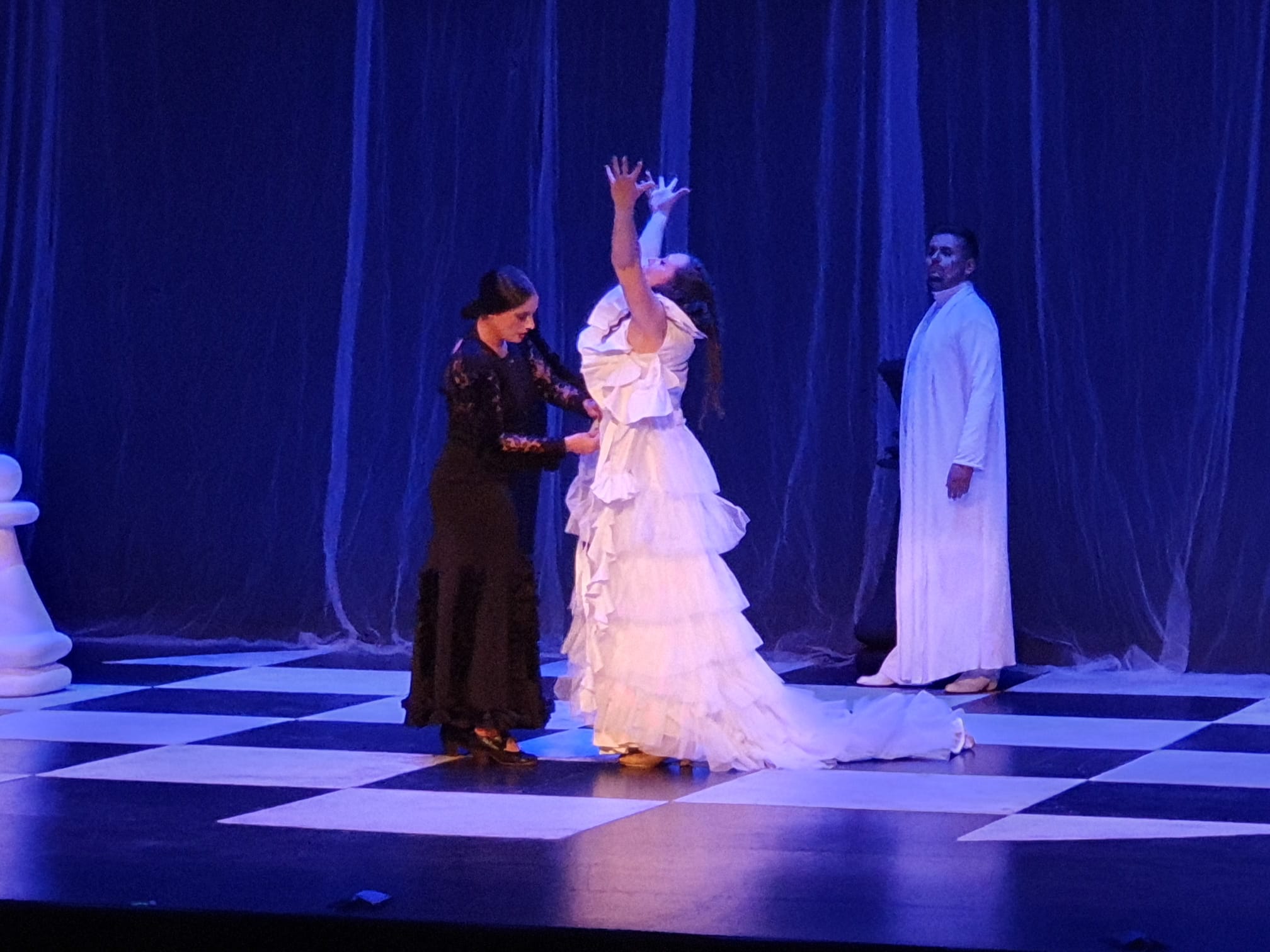 El estudio del Flamenco implica muy diversas disciplinas, no solo la música sino también la historia, la lengua, la pintura, la danza…pudiéndose trabajar desde las mismas con diferentes y enriquecedores enfoques. Desde este punto de vista multidisciplinar, nuestro centro ha querido que el mayor número de alumnos y alumnas acudiesen al espectáculo “La Jugada del Sacrificio”, basado en la obra Niebla de Unamuno, creado por la bailaora y coreógrafa Cristina Pagés, en el que se han sintetizado diversas manifestaciones artísticas, teniendo al flamenco como eje central. En este sentido, los alumnos de ESO3, ESO4 y 1º de Bachillerato, con independencia de las asignaturas que cursan, han sido emplazados a asistir el pasado 15 de noviembre al auditorio “Martín Recuerda”, donde disfrutaron, como muchos de ellos me han manifestado, de una representación original e impactante que no dejó a nadie indiferente.