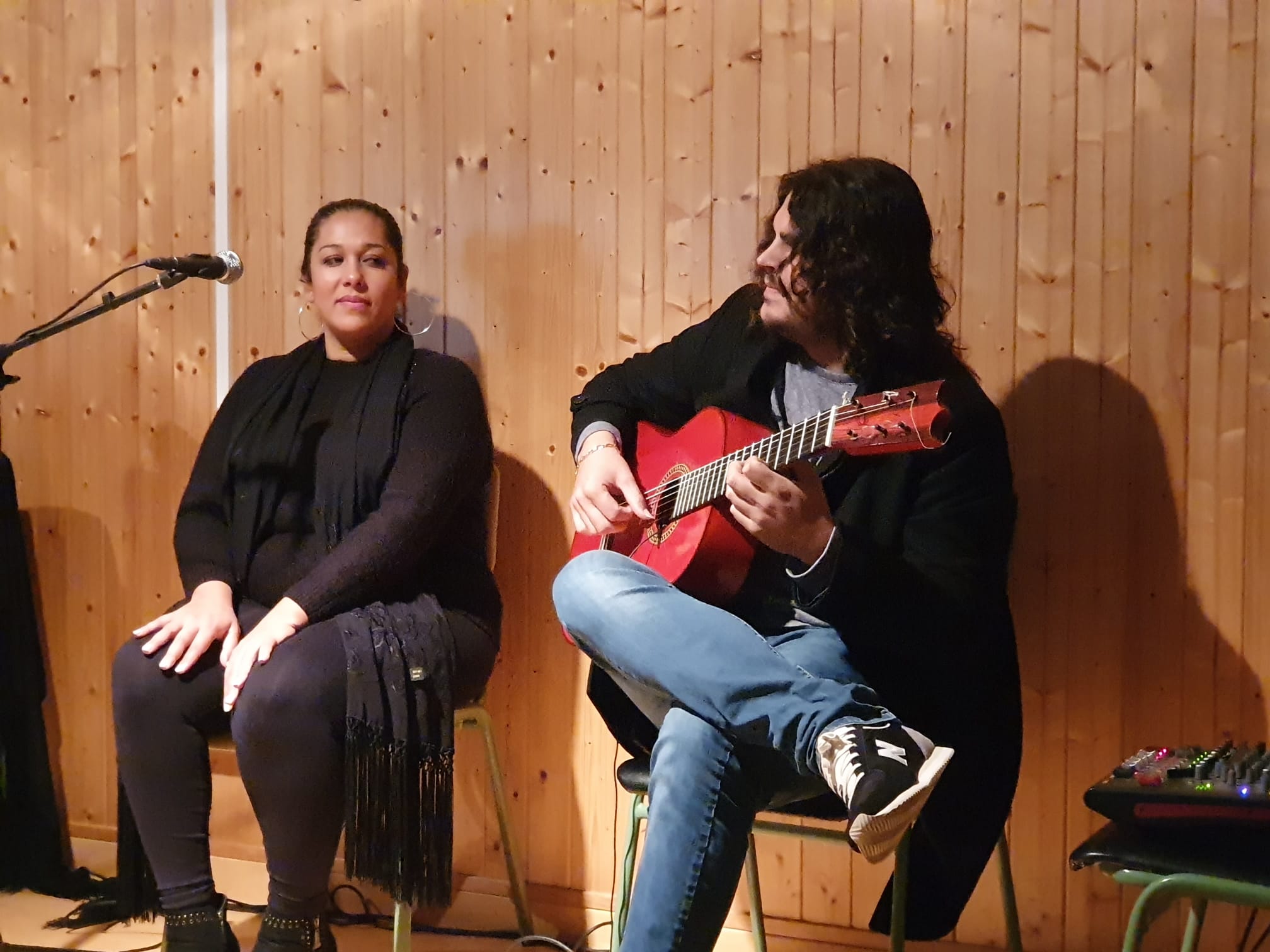 Como en otras ocasiones, estos grandes flamencos de nuestra tierra han querido compartir con nosotros su talento y su pasión por este arte, transmitiendo esa intensa emoción que se siente cuando uno ama lo que hace. María la Canastera, nuestra querida antigua alumna, con su voz cálida y potente cantó rumbas, alegrías, tangos y explicó de forma didáctica cómo hacer las palmas para acompañar estos palos. Nuestro alumnado, que fue felicitado por los artistas al marcar muy correctamente el difícil compás de la bulería, aprendió el nombre de grandes figuras del flamenco a través de amenas anécdotas contadas por María y Carmelo, haciendo que el tiempo pasara volando y todos nos quedásemos con ganas de más.
