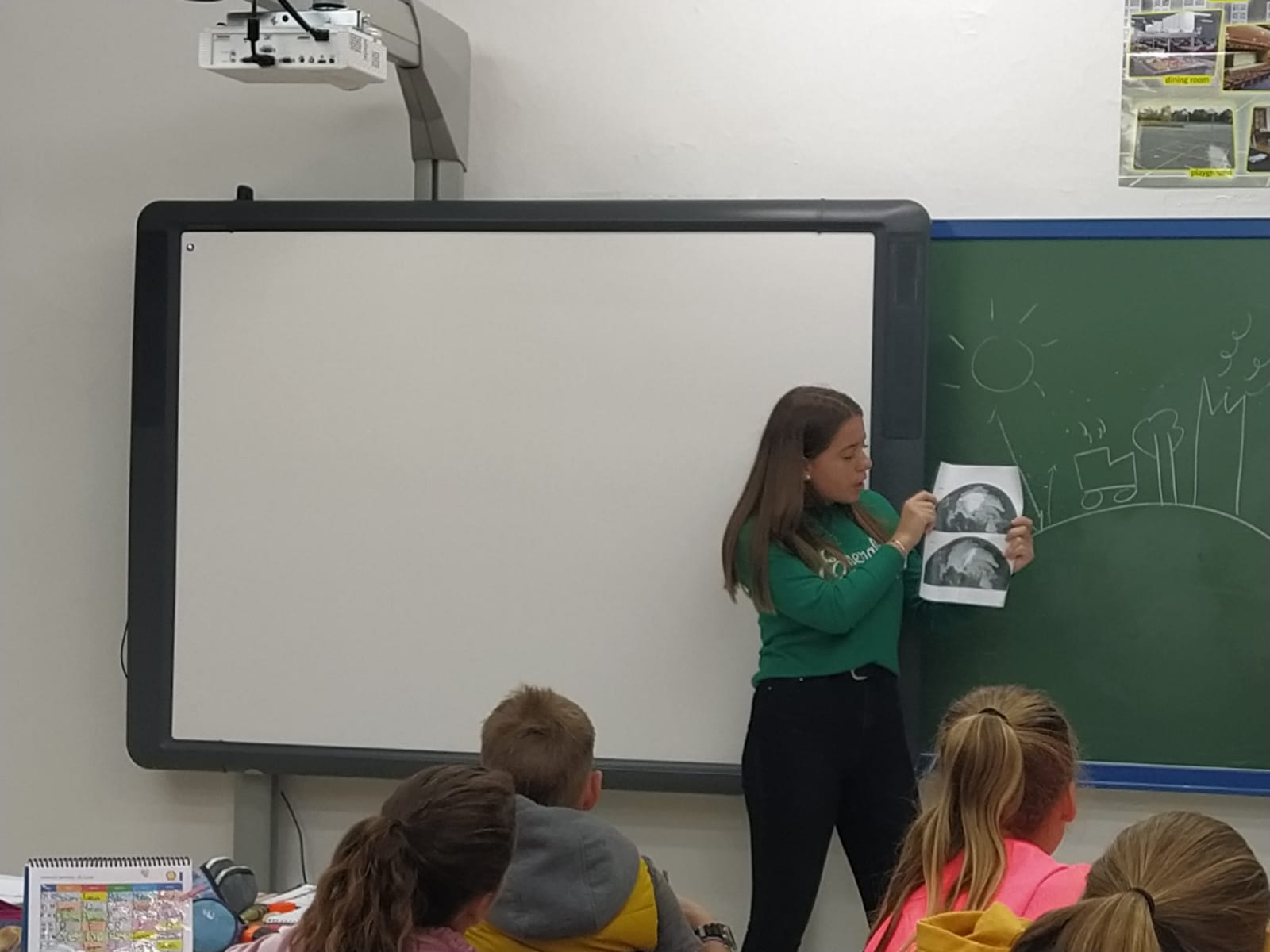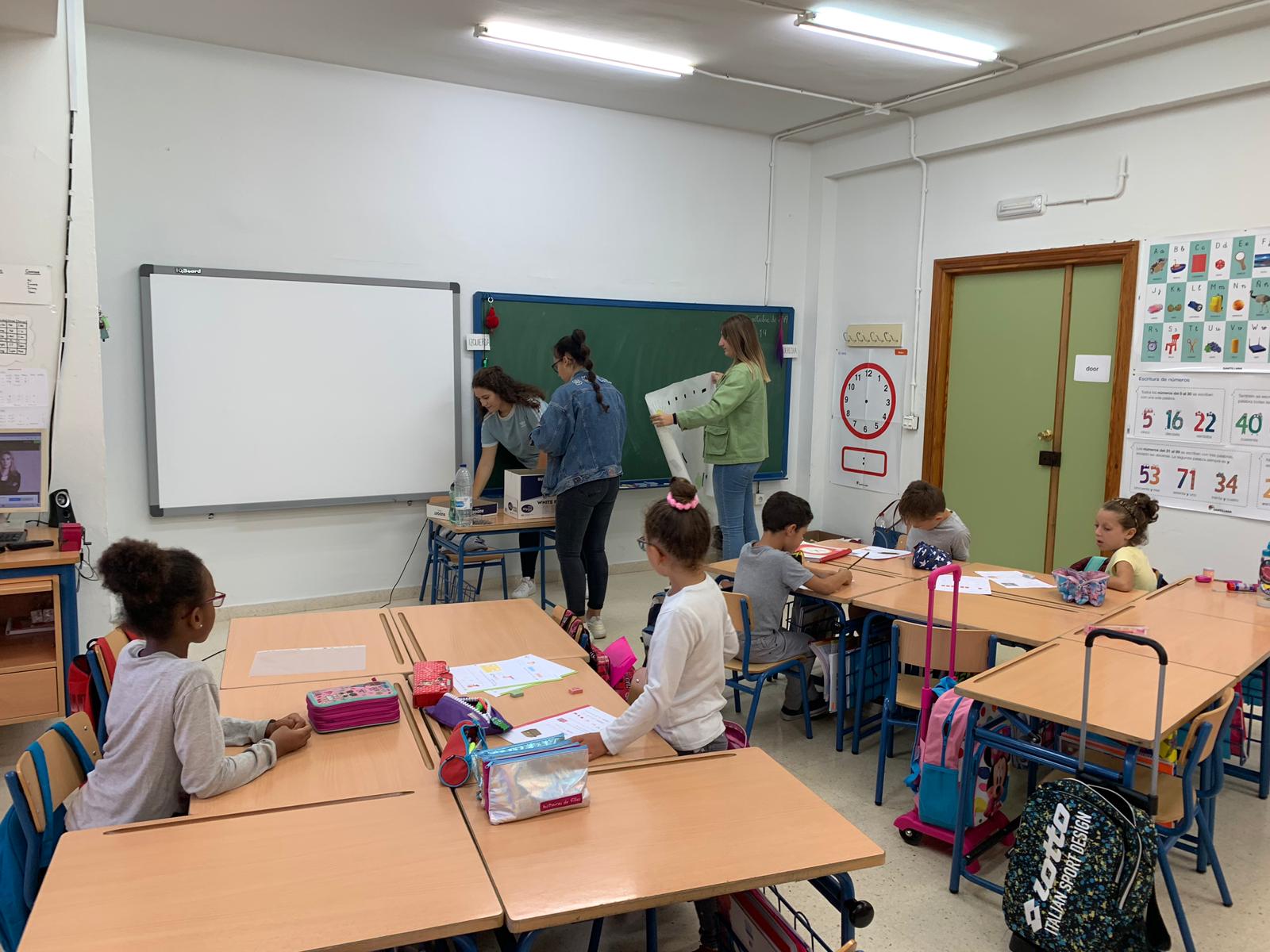 El grupo completo de clase de Cultura Científica se ha dividido en 6 grupos de 3-4 alumnos y cada grupo tiene asignado un nivel de primaria de 1° a 6°. Las charlas tuvieron lugar desde las 10.20 a las 11.10, y han constado de una parte teórica donde explican en qué consiste el cambio climático, algunos experimentos para que puedan ver cómo ocurre y muchas actividades sobre el tema en las que se hará participar a los niños de primaria.