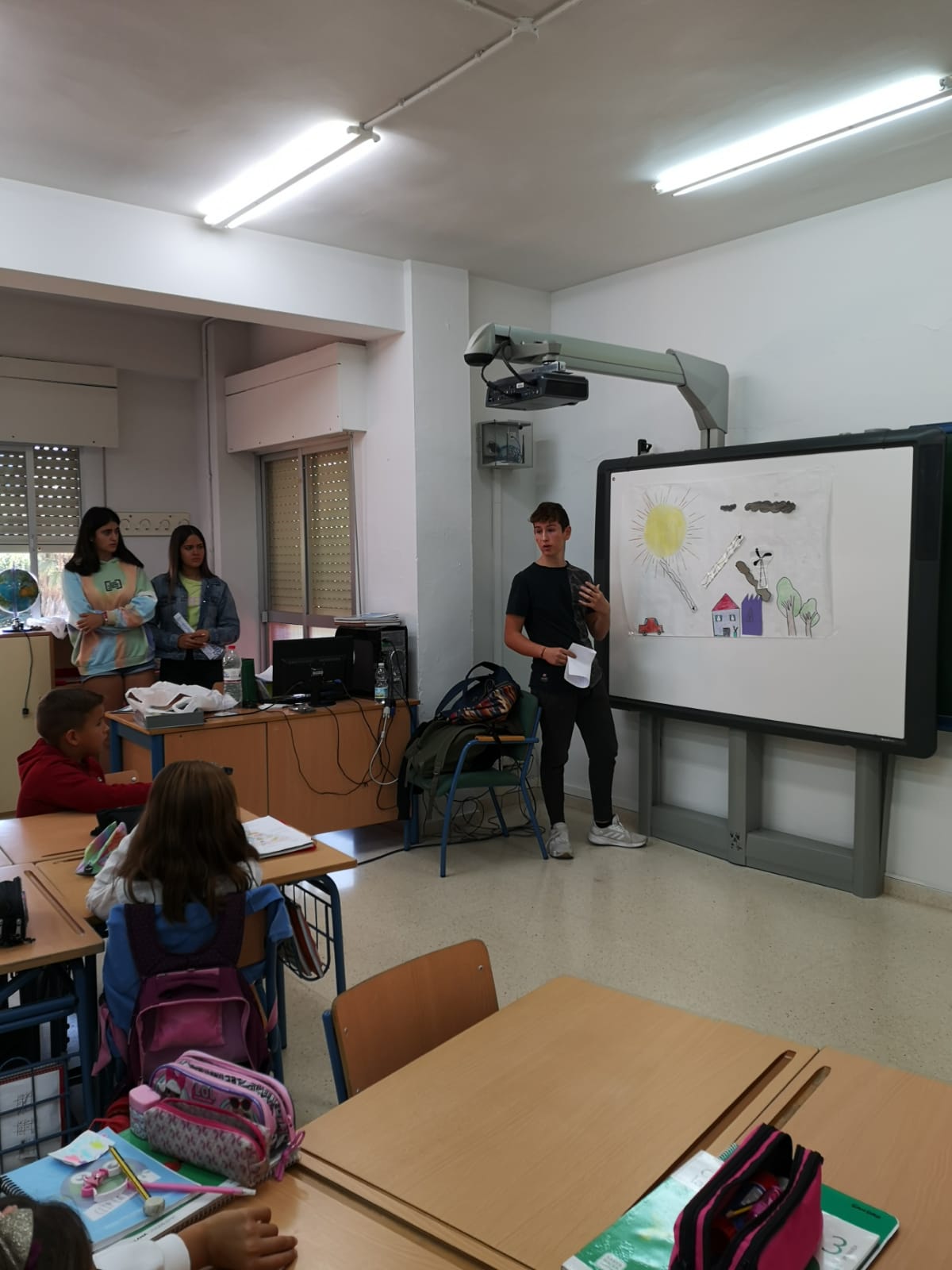 El viernes 11 de Octubre los alumnos de 1° de bachillerato del IES Al Andalus han estado en el CEIP la Santa Cruz a dar charlas sobre cambio climático. Esta actividad forma parte del programa “alumnos divulgadores de la ciencia”.