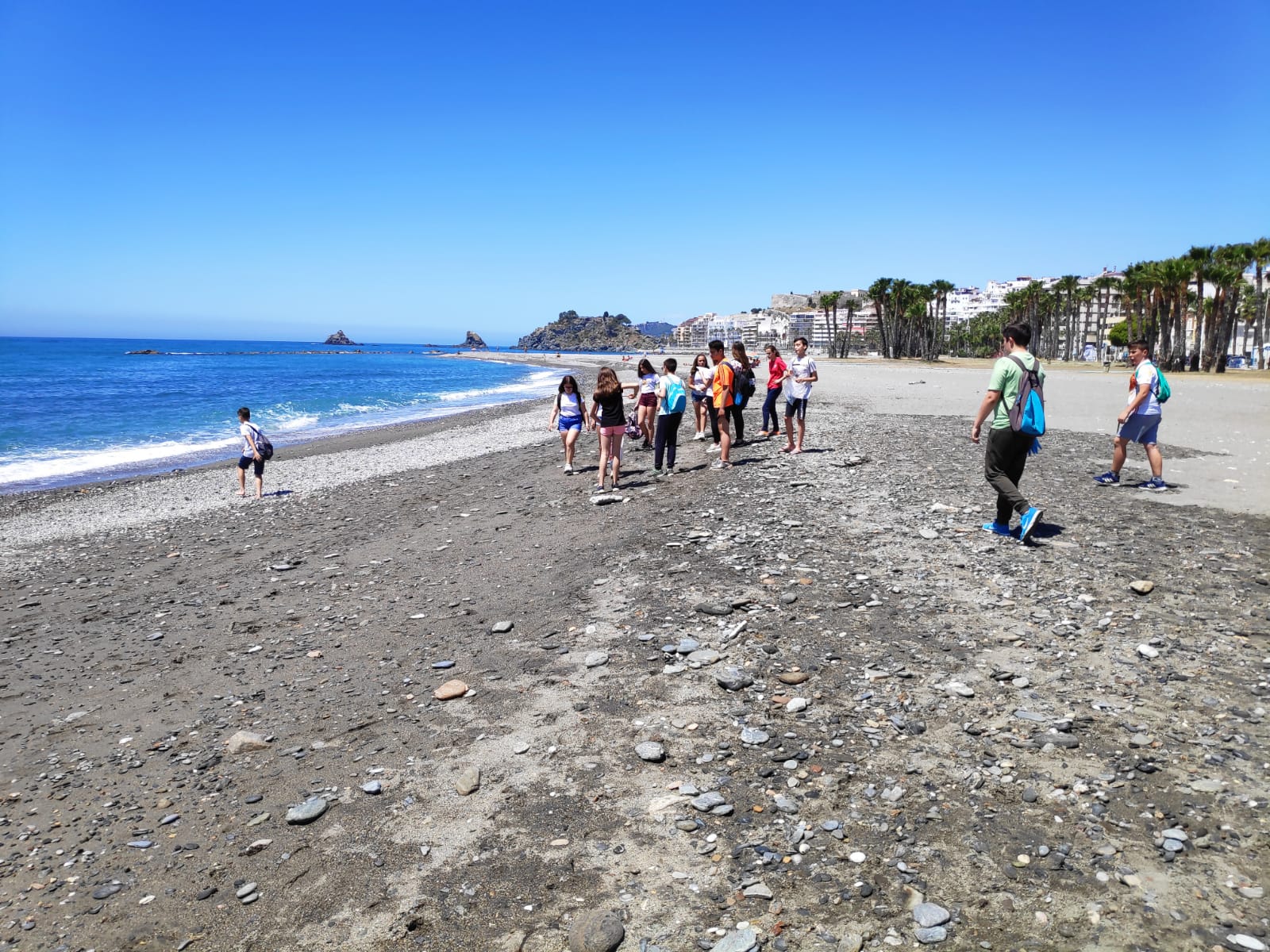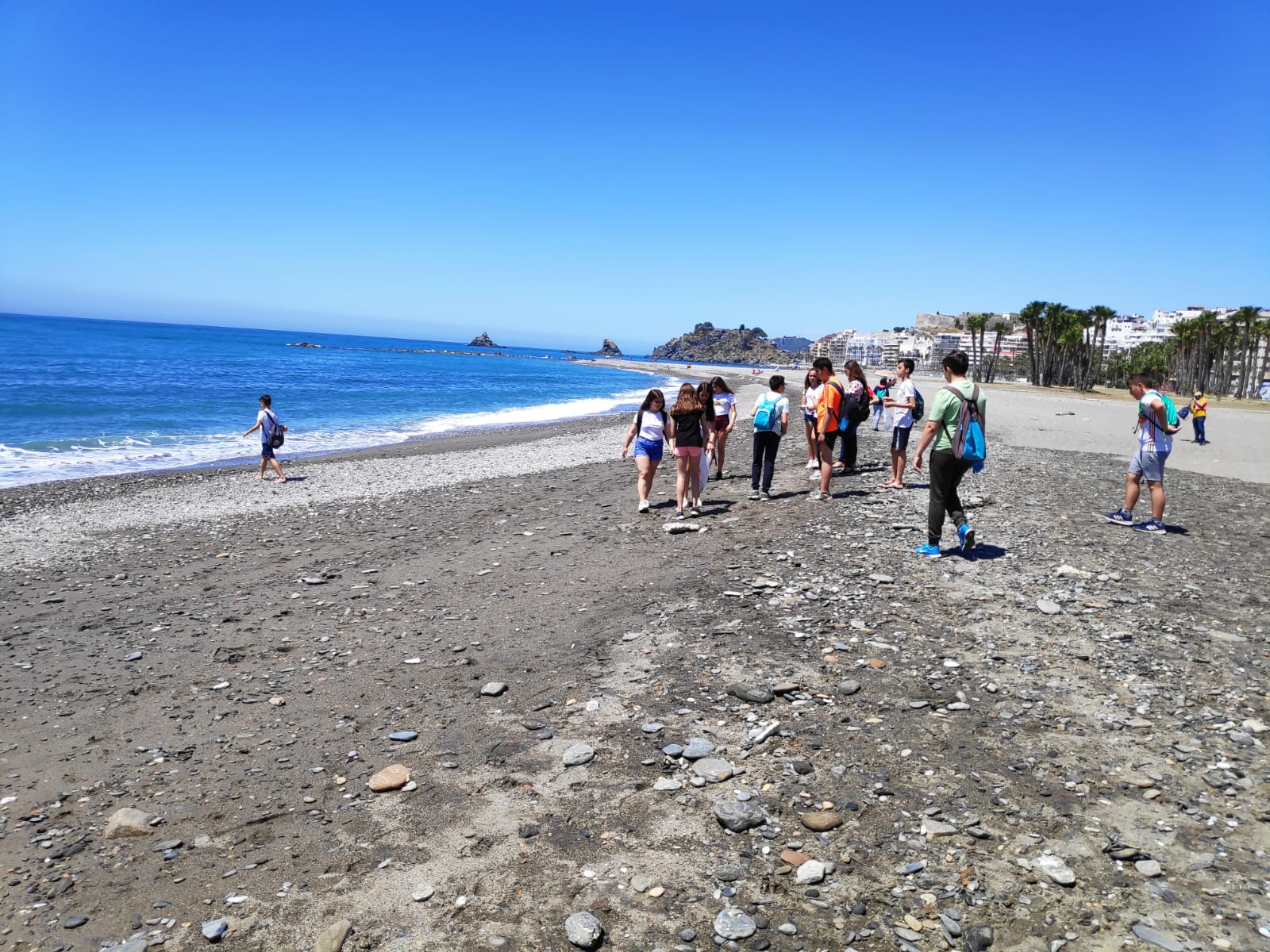 Al acabar la visita y las actividades, nos dirigimos por el cauce de Río Verde hasta llegar a la Playa Puerta del Mar. En la playa, los alumnos realizaron la inspección costera "Correlimos" y fueron recogiendo los desechos que había tirados y haciendo un inventario de toda la basura recogida, así como de los animales y plantas que encontramos.
