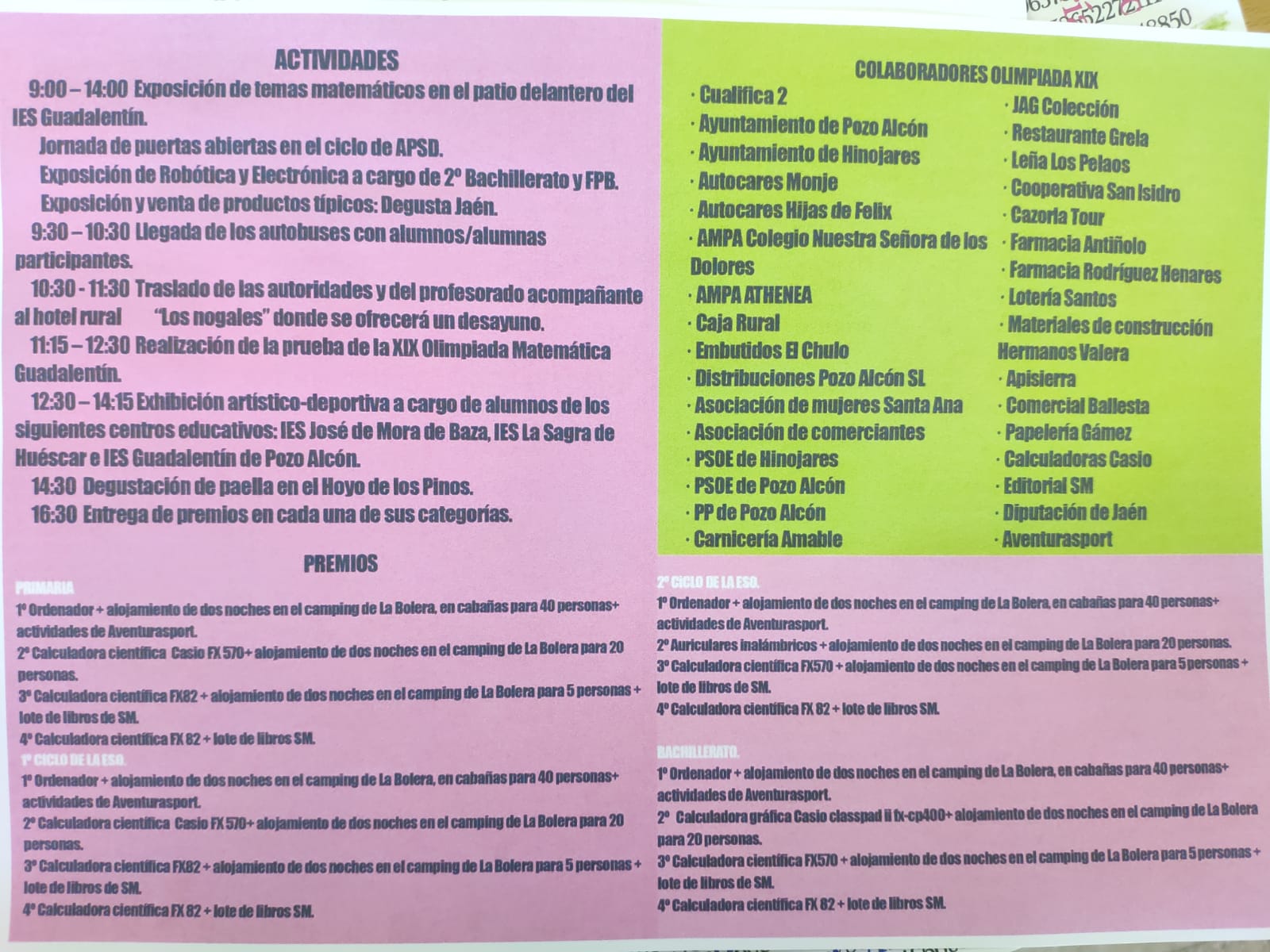 Algunos de nuestros alumnos y alumnas acudieron el pasado jueves 16 de Mayo a la XIX Olimpiada Matemática "Guadalentin" celebrada en Pozo Alcón. Un encuentro en el que han participado 126 centros educativos de las provincias de Málaga,Córdoba, Almería, Granada y Jaén.