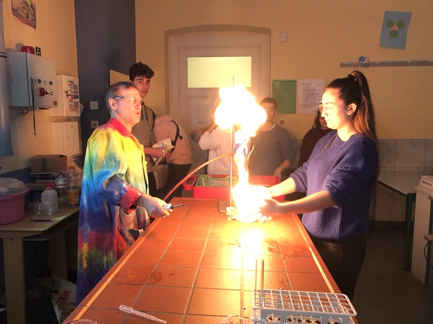Ayer miércoles seguimos con el planning de actividades previsto. Por un lado, los 3 primeros periodos nos dividimos en dos grupos y asistimos a prácticas de laboratorio con Mr. Brunet y Mr. Lewis , profesores de Biología y Química respectivamente en el LIS. Hemos trabajado con enzimas y con velocidades de reacción y como actividad extra ¡hemos experimentado el fuego en nuestras propias manos! Sin tiempo para descansar hemos tomado el tranvía y el bus para llegar a la factoría BMW de Leipzig, donde se nos ha recibido y acompañado durante una extensa visita guiada por sus impresionantes instalaciones. Hemos tenido la oportunidad de comprobar de primera mano el nivel de desarrollo tecnológico de la industria automovilística y el alto grado de robotización que ha alcanzado todo el proceso de producción de vehículos más modernos (concretamente los modelos eléctricos) desde las primeras etapas hasta que el vehículo llega al punto de venta. Además, se ha hecho hincapié en la importancia que tiene para la compañía la gestión sostenible de los recursos, orientando todos los procesos hacia una reducción cada vez mayor del consumo energético dentro de la planta. Cansados pero satisfechos con la experiencia, volvemos de vuelta al centro para reunirnos con el alumnado alemán. Allí, la escuela nos recibe con una merienda a base de pasteles y cafés para reponer energías y aprovechar al máximo nuestra última tarde en Leipzig.
