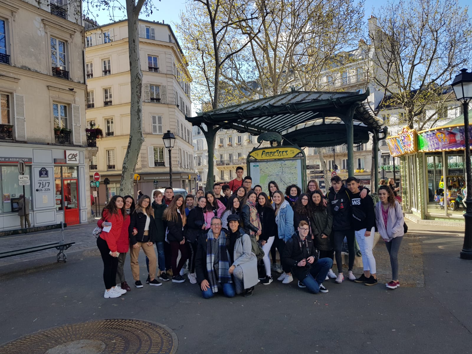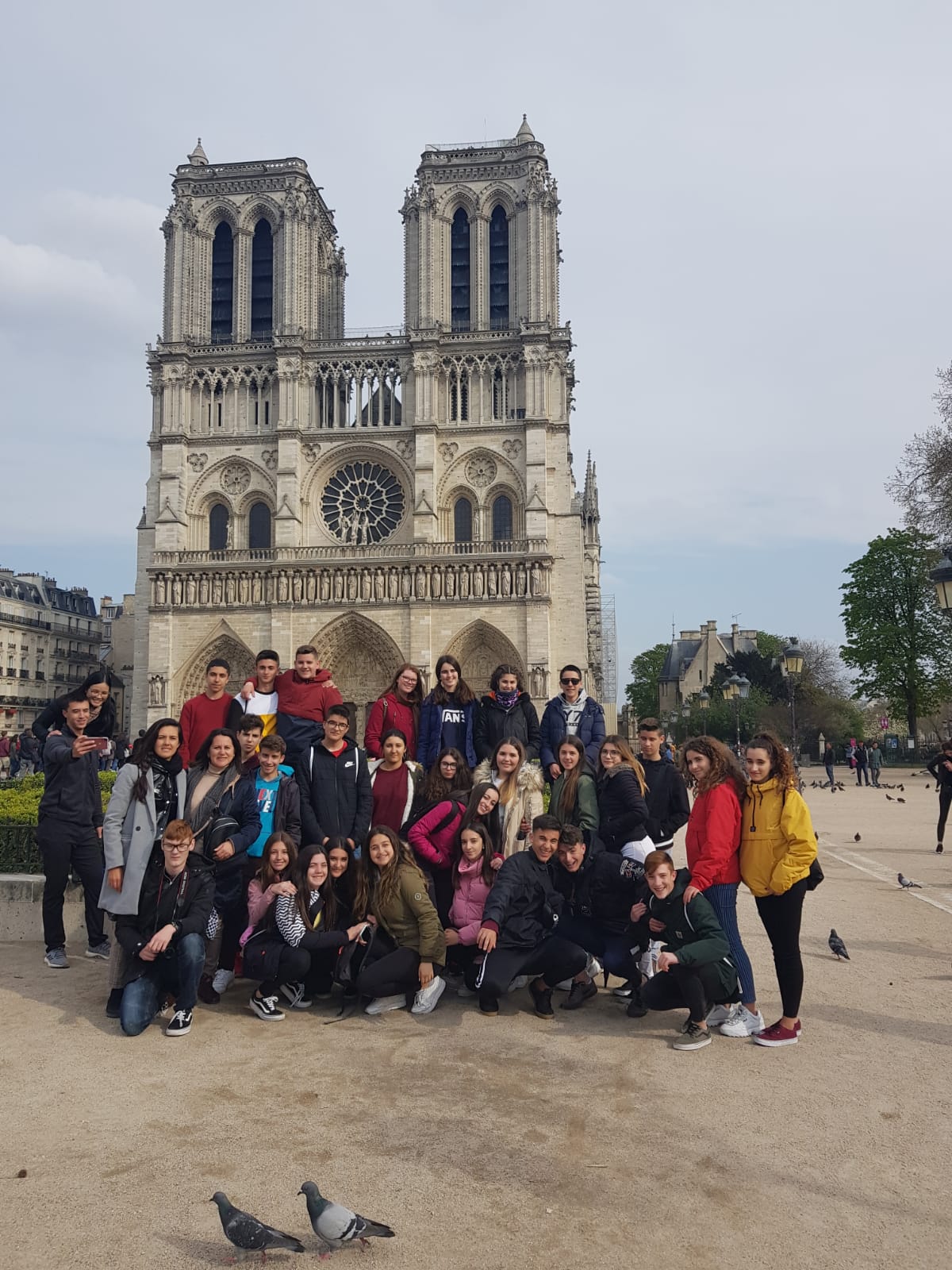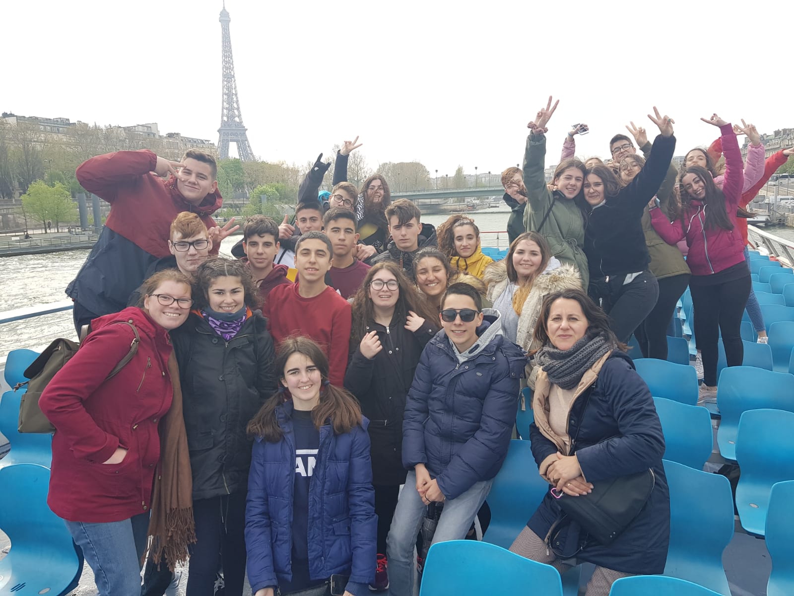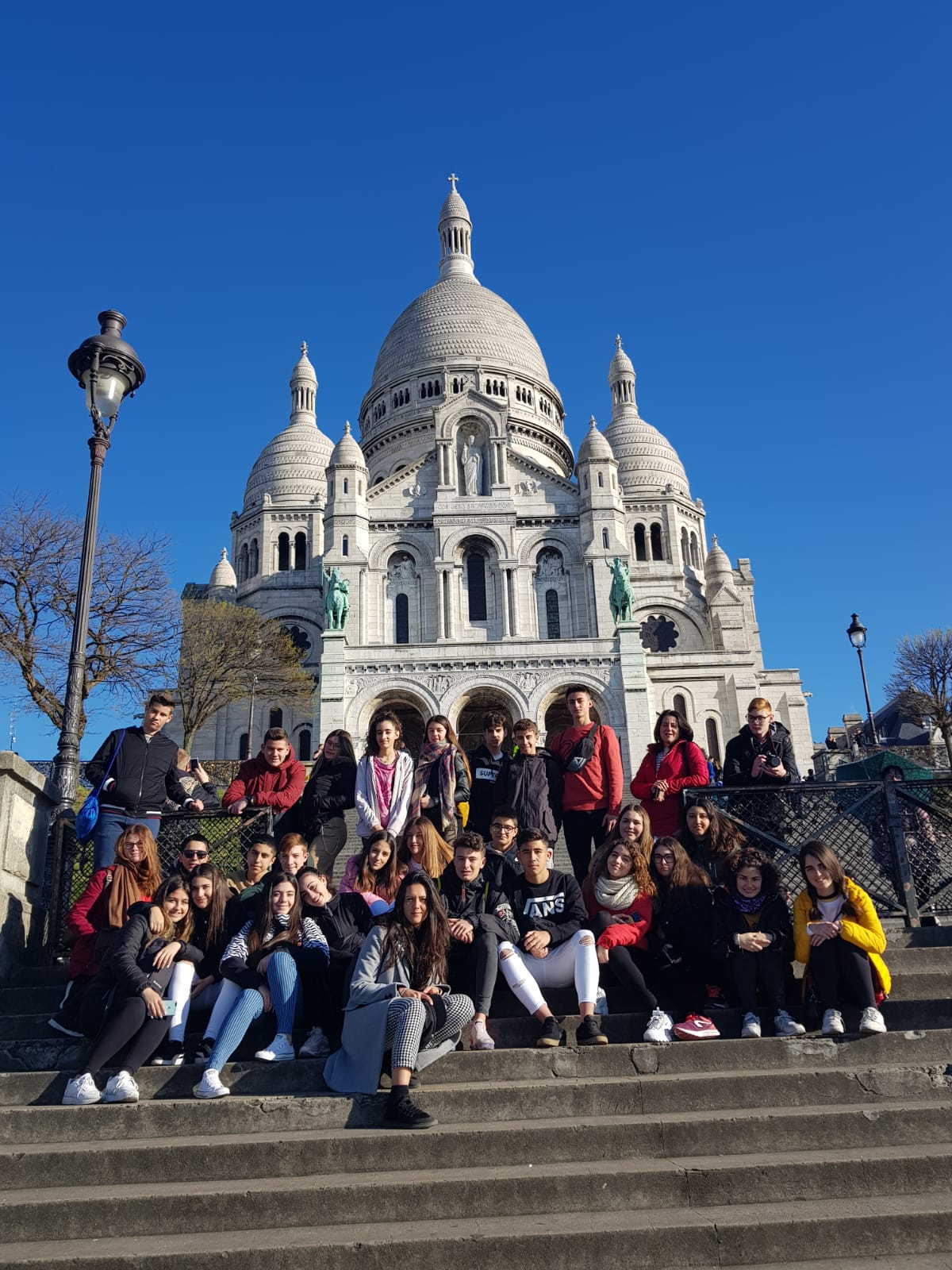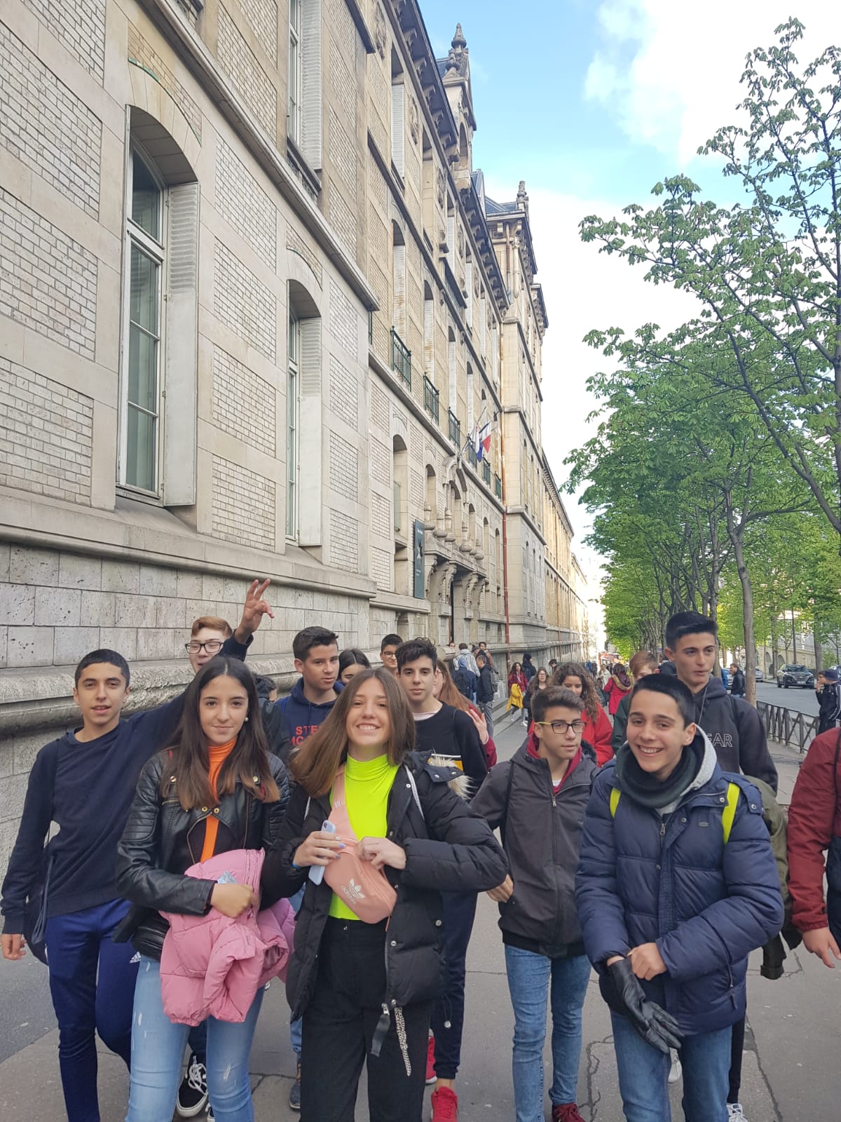Paris du 1er au 8 avril 2019 Como anunciamos en nuestra página web, nos complace ahora si compartir con ustedes la experiencia vivida por nuestros alumnos de 3º de la ESO con motivo de la primera etapa de nuestro intercambio escolar con París. Proyecto organizado en Francia por la profesora de español Pilar IZQUIERDO (apoyada por Madame Le Du, profesora de Educación Física) y aquí en España por la profesora de francés Inmaculada PALMA, en colaboración con Virginia Cañestro e Isabel Quirós. Acompañantes del viaje a París los profesores: Virginia Cañestro (Hª del Arte) y Paco Martínez (Inglés). Acogidos por familias y alumnos franceses, esta inmersión lingüística les ha permitido conocer de cerca la vida y la cultura francesa así como su sistema educativo. Entre las actividades planificadas en el programa resaltaremos: el bonito recibimiento el día de llegada con una merienda, la asistencia a las clases y las comidas en el comedor escolar, la visita a la Torre Eiffel, el paseo en barco por el Sena “ Bateaux Mouches”, la entrada a la Catedral de Notre Dame, el día en el parque Disneyland, nuestro recorrido por el barrio de Montmartre, visitando su Basílica “Sacre Coeur”, la visita guiada al Palacio Real- Museo del Louvre a cargo de la profesora Virginia Cañestro con traducción simultánea al francés por Serge Belleti, el tiempo libre y de juegos en los Jardines de las Tullerías, el espectáculo de danza argentina “Che Malambo” en Bobino- Montparnasse, y la excursión realizada para conocer el Palacio de Versalles y sus jardines musicales. Durante el fin de semana, cada alumnado compartió con las familias todo lo que estas les habían preparado. Finalmente, el día de la despedida los alumnos franceses nos sorprendieron cantando en español arropados por algunos padres y la Directora de Buffon Madame Gay-Boisson. La segunda etapa tendrá lugar en junio cuando recibamos a los alumnos franceses y a sus profesores. Que disfruten las fotos; |