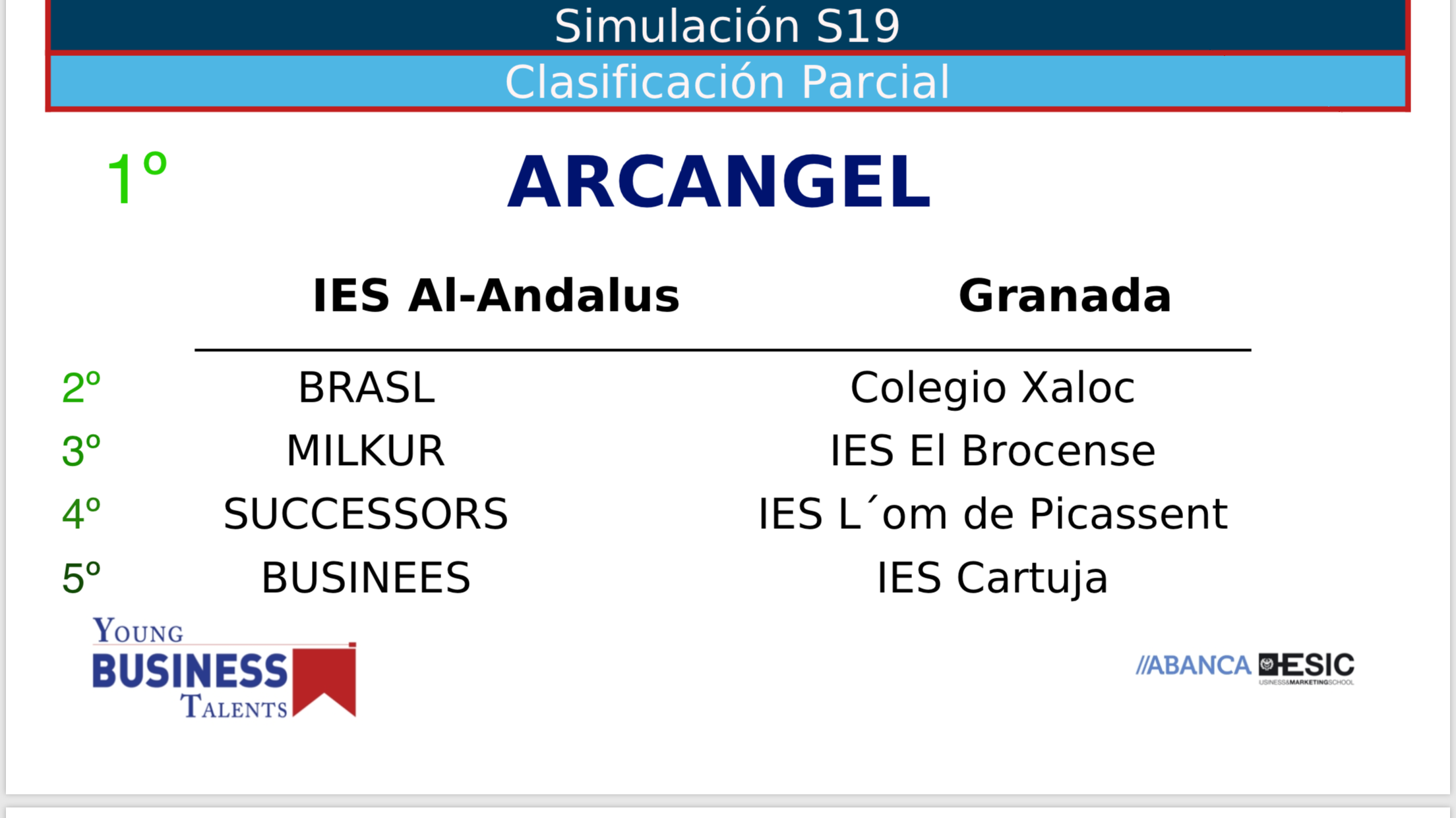 La agenda ha sido muy ajustada, desde las 10:00 de la mañana hasta las 17:00 de la tarde, alternándose los tiempos para la toma de decisiones, con breves charlas motivadoras de directivos de las entidades patrocinadoras, ABANCA y ESIC (Bussines Marketing School), y la publicación de los resultados de los tres períodos (se suponen años) que se han jugado. En la parte final se hizo entrega de diplomas y premios: 480 € a cada equipo ganador en su mercado, y premios especiales a los 5 mejores equipos de la clasificación por beneficios. En esta última, Arcangel ha quedado en el puesto nº 17 de un total de 100.