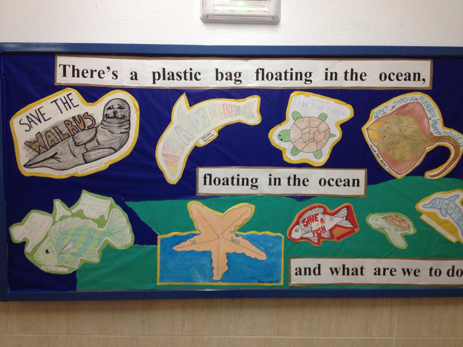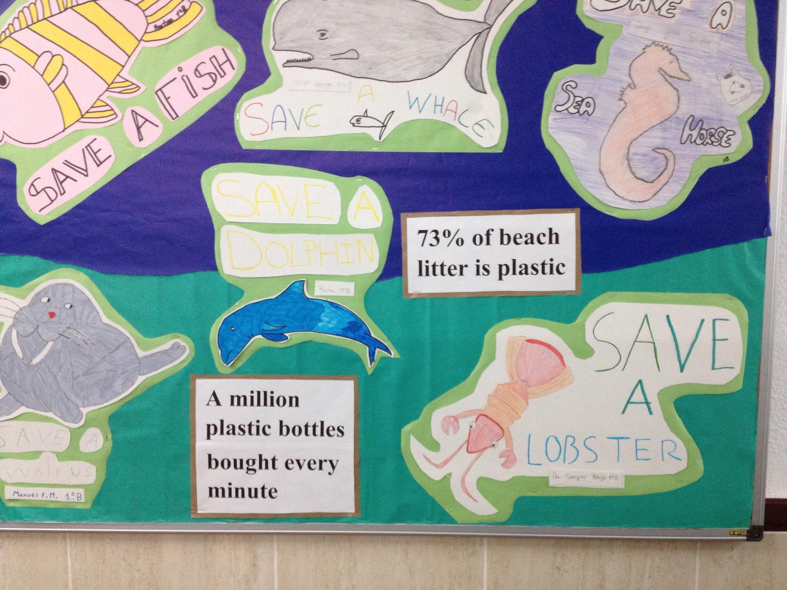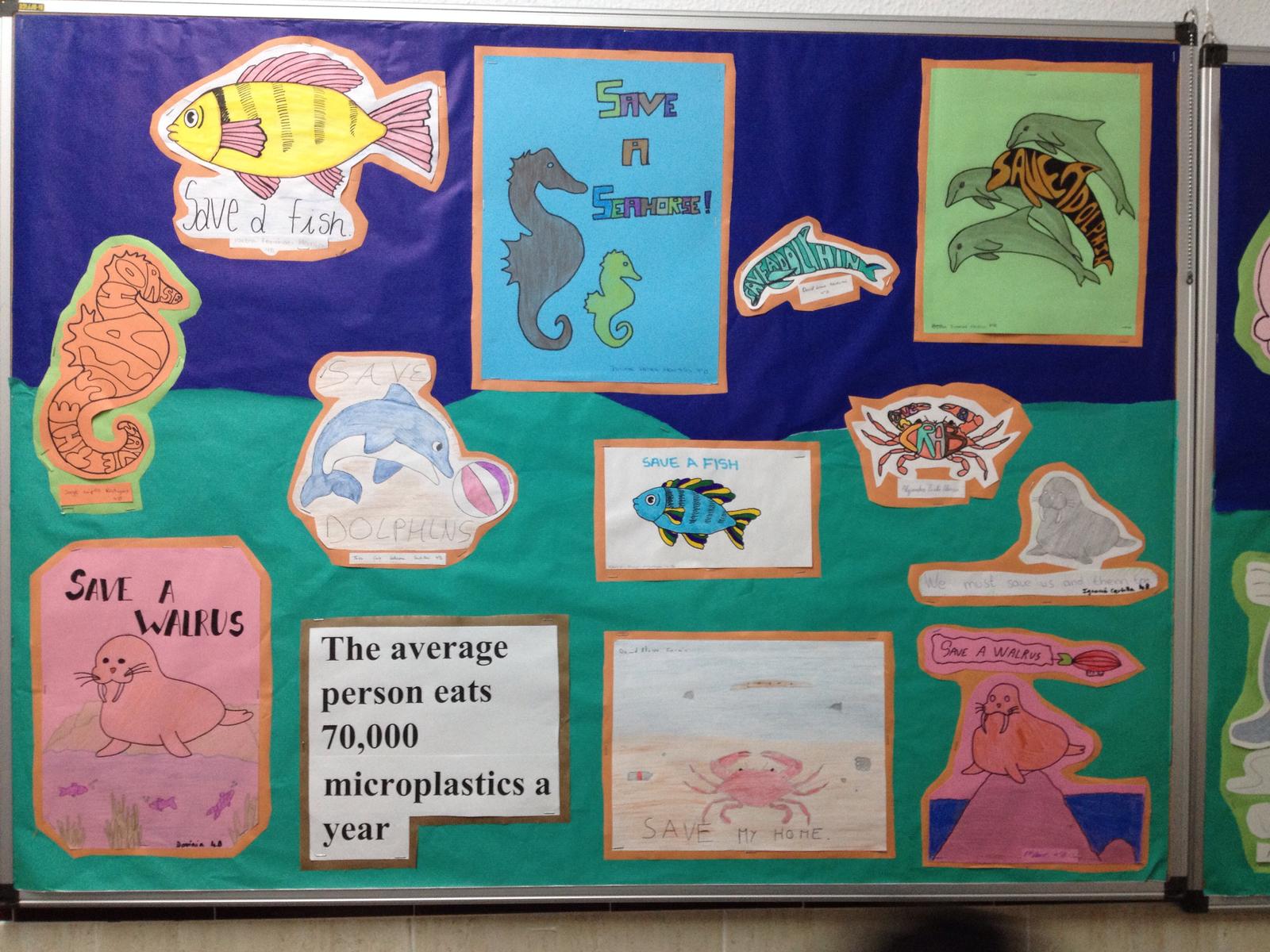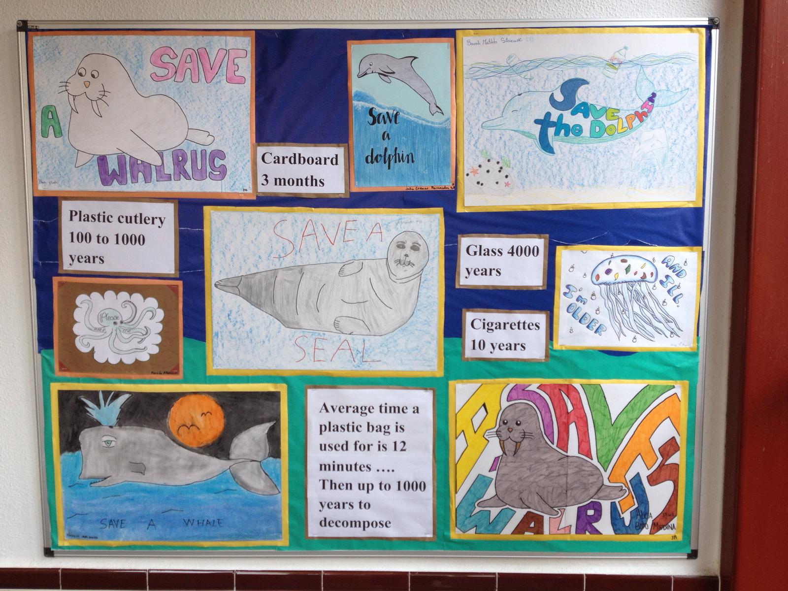 The students made a few posters on the issue of saving the environment. These posters have been placed throughout the school hallways, for everyone to view. Action towards saving the environment can start anywhere. For example making others aware on the issue through posters is the first step towards saving our environment. The students can walk through the hallways with a sense of pride, knowing that they have done a small part with helping clean our world. From this project we have observed a sense of some ot the students talents through their individual artwork. They haven't only drawn some fish. They have also learnt and sung a song called “There is a Plastic Bag Floating in the Ocean” which they have enjoyed singing.