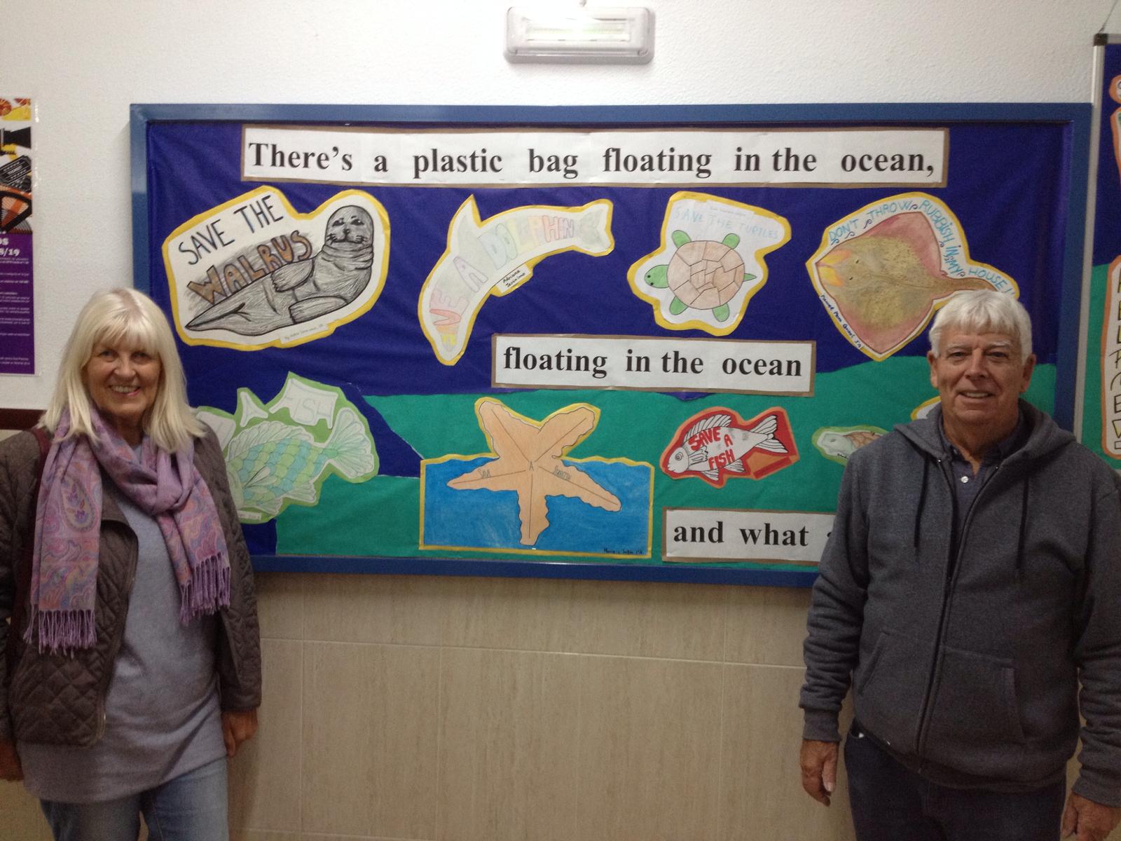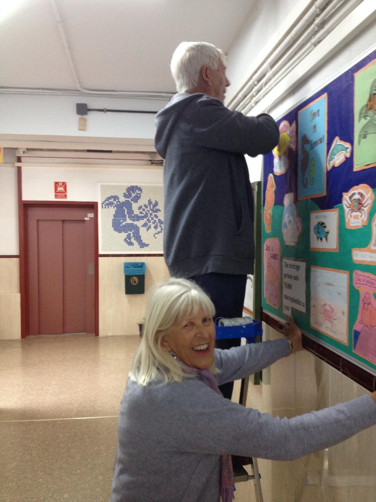 Michael Comley and Jenny, his wife, have cut out, mounted and displayed all the logos drawn by our students. A few steps towards making the world a better place to live in.