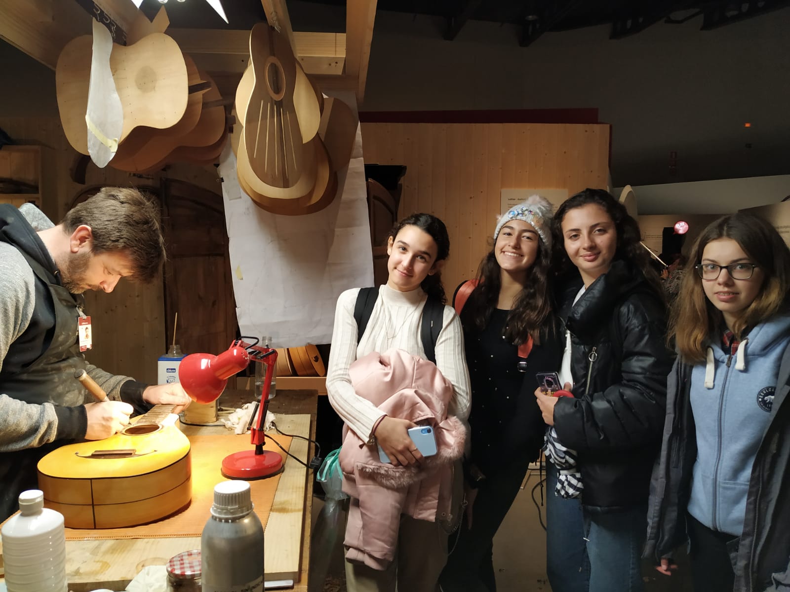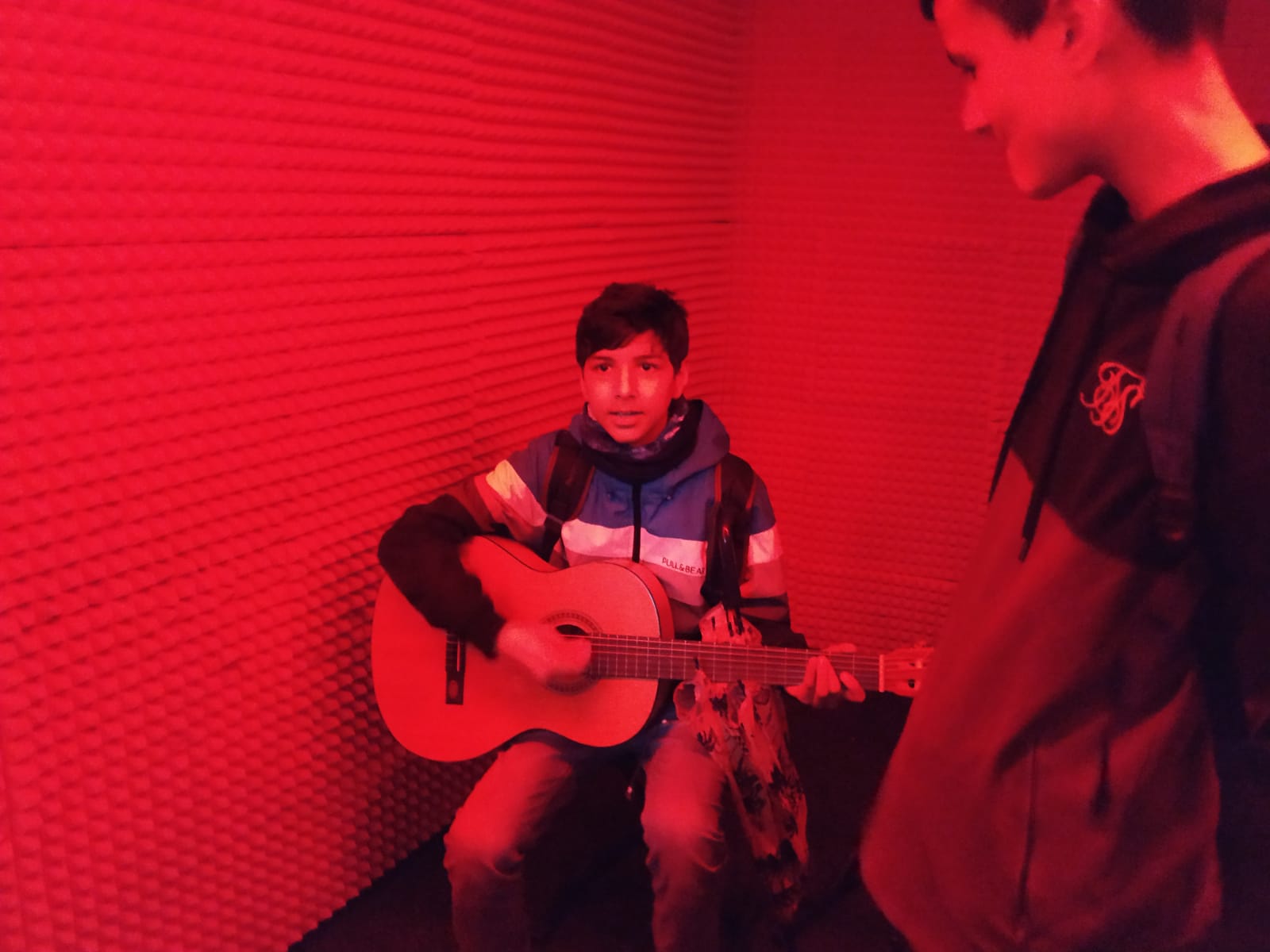 Seguidamente, nos trasladamos al Parque de las Ciencias, donde prestamos especial atención a la exposición temporal PLAY: Ciencia y Música. Pudimos ver la exposición de instrumentos antiguos, tocar el arpa virtual, dirigir una orquesta, tocar la batería, el violín y el piano, asistir a talleres sobre el sonido y los efectos sonoros en el cine, ver construir una guitarra…en definitiva, acercarnos a la música desde una perspectiva científica y artística totalmente práctica.