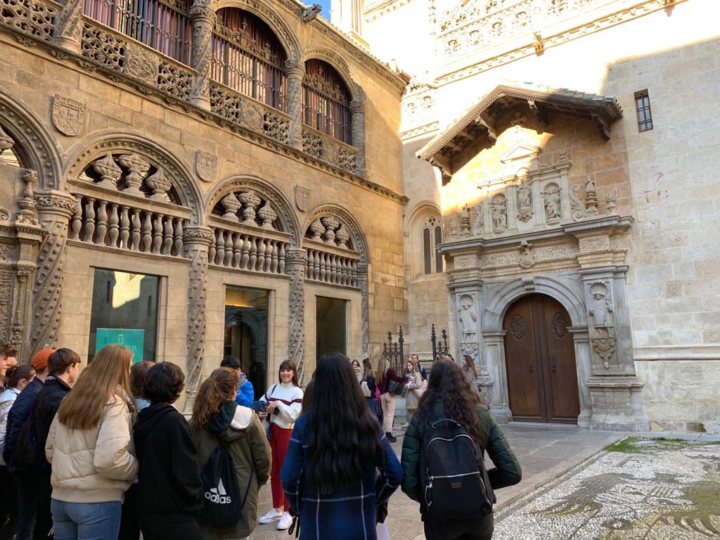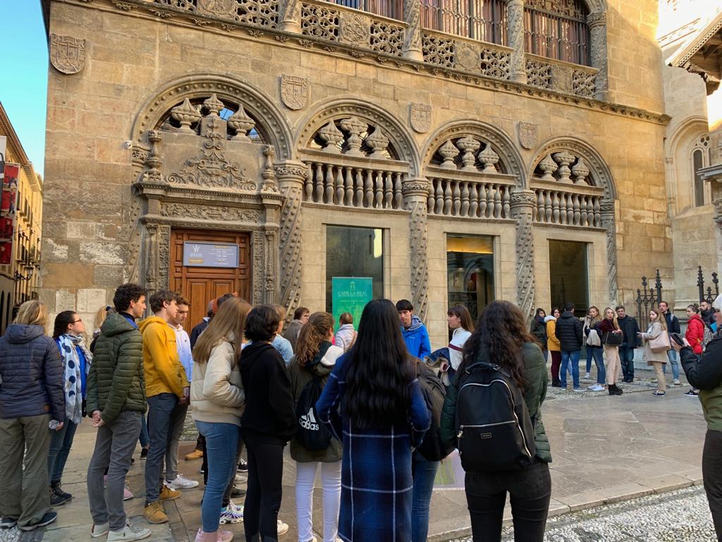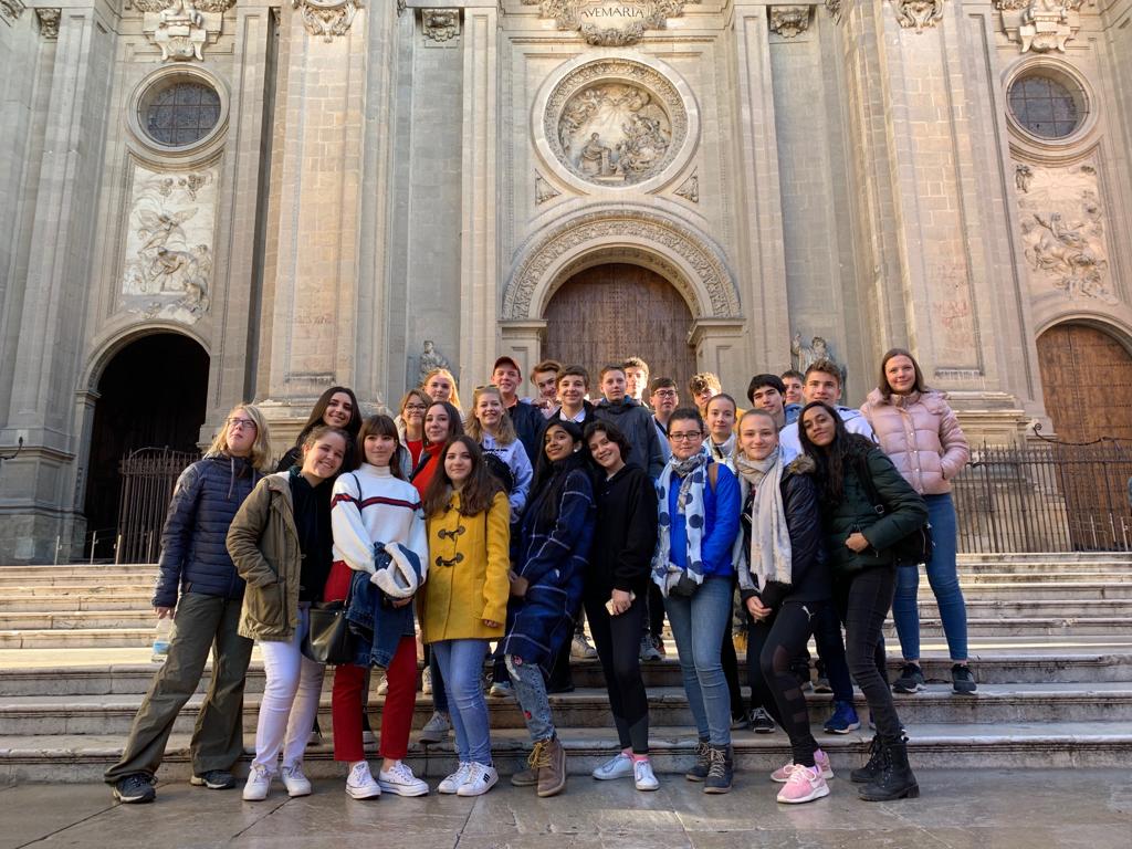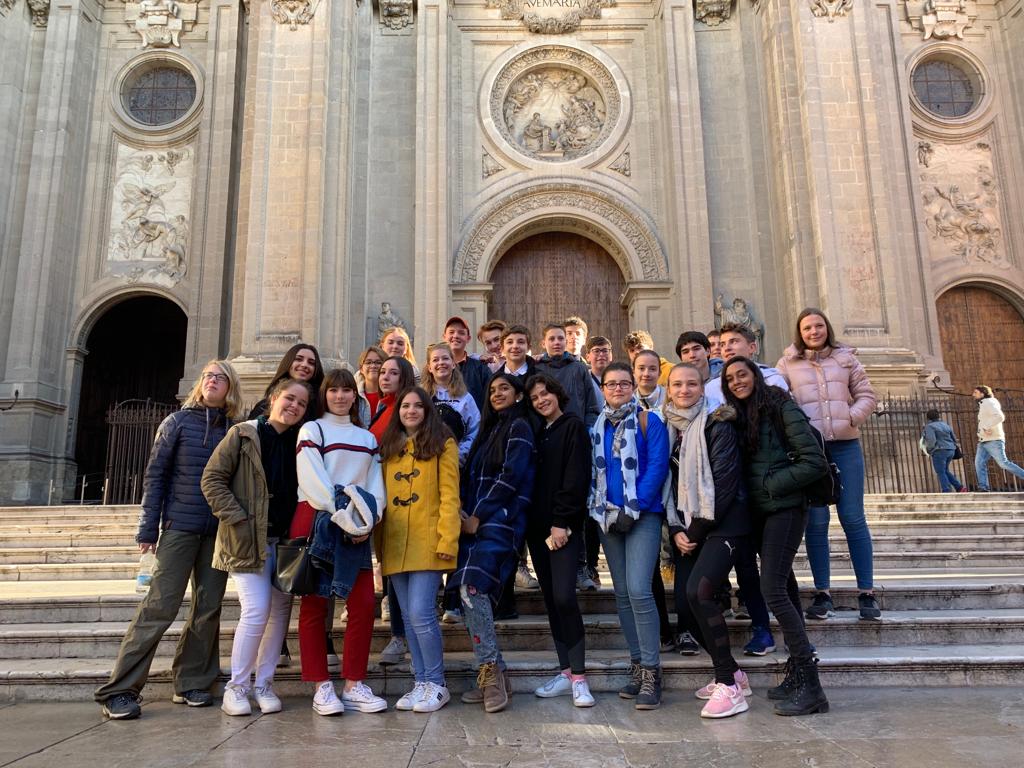 Nuestras alumnas Nuria, Sara, Estrella, Paula y Eva de Primero de Bachillerato han puesto un broche de oro al Intercambio realizado con alumnos alemanes en nuestro centro,acompañadas por José Manuel Lorenzo (profesor de Biología) junto con Ángel y Gwen los profesores alemanes,les han servido de guía en una visita cultural y artística al centro de Granada donde han podido visitar Plaza Bibrambla, Zacatin, Cátedral, Capilla Real, Madraza, Puerta Real, Corral del Carbón, etc. Después los han acompañado hasta el aeropuerto desde donde han partido hacia su destino. Buen viaje!!
