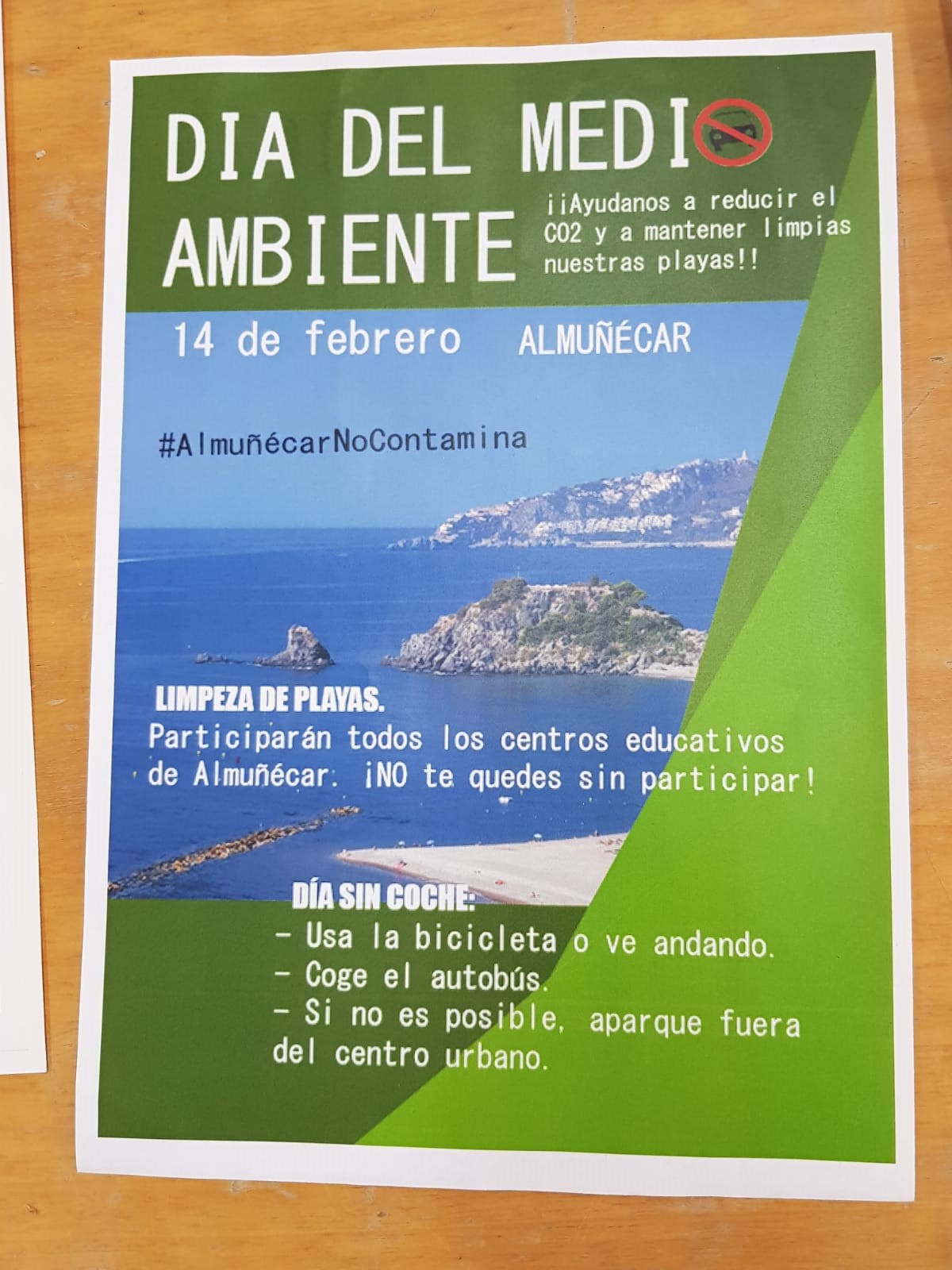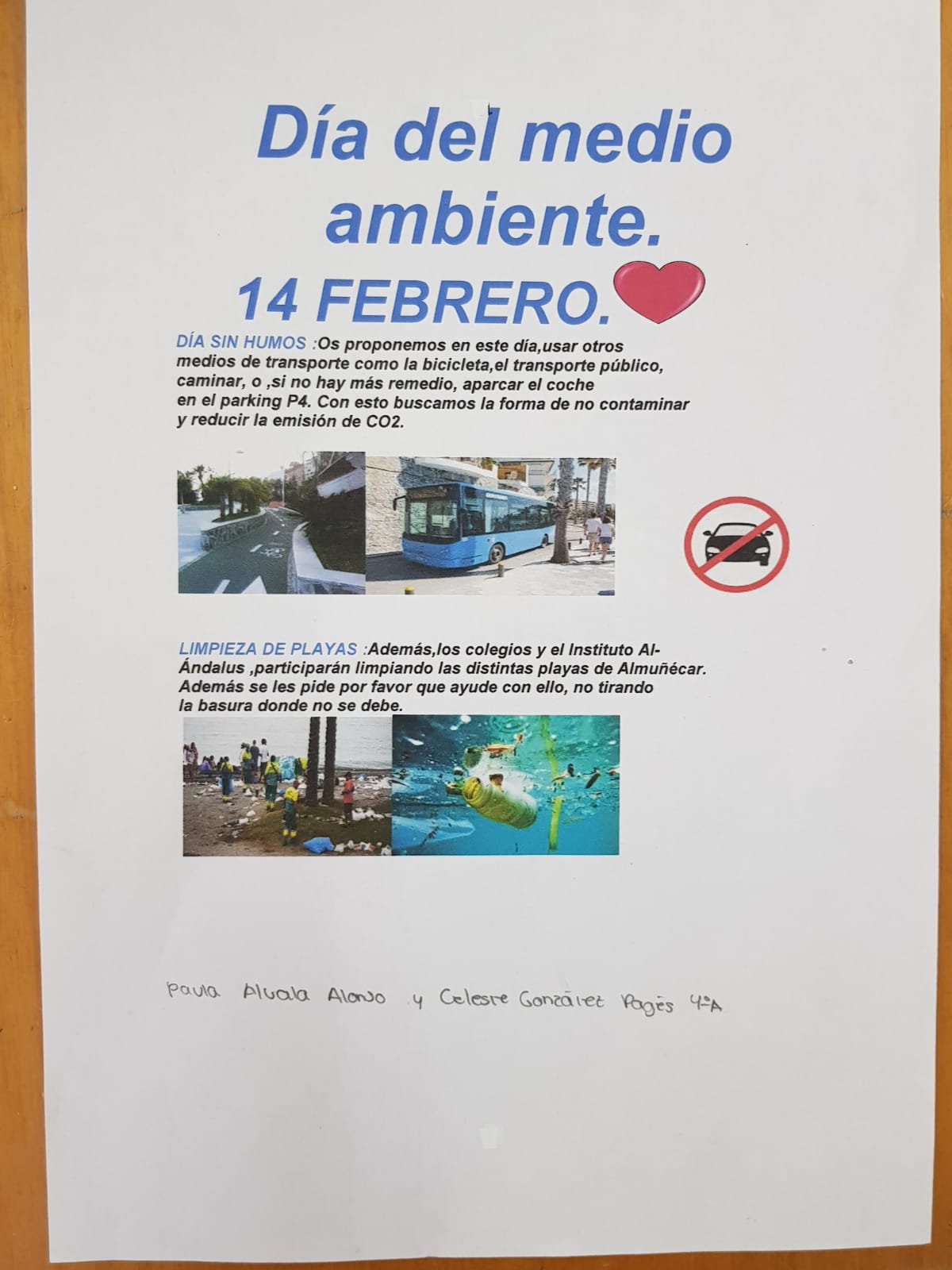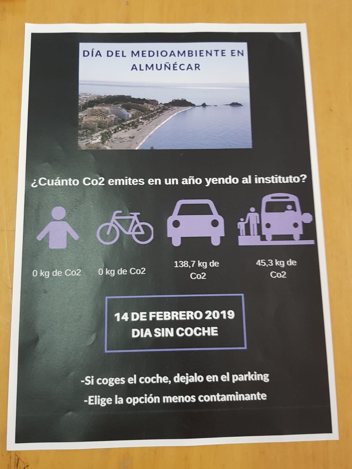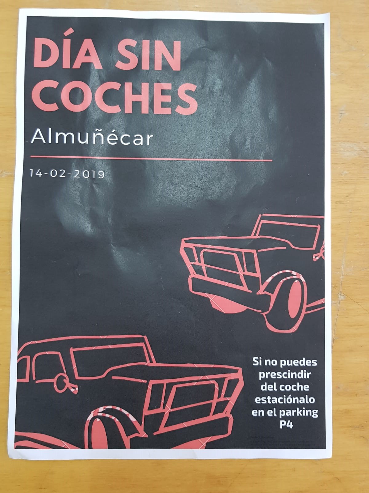 Iniciativa del IES Al-Ándalus con la colaboración de IES Antigua Sexi, IES Puerta del Mar, IES Villanueva del Mar, CEIP Rio Verde,CEIP San Miguel, CEIP Virgen de la Antigua, CEIP Arcos de Torrecuevas, CEIP La Noria, Ayuntamiento de Almuñécar y Erasmus+ pone en marcha el DÍA SIN COCHES el próximo 14 de Febrero bajo el lema MENOS HUMOS Y BASURA, ¡MÁS CULTURA para impulsar el cuidado del medio ambiente mediante actividades de limpieza de playas, uso de bicicleta, transporte público gratuito y si te es imprescindible el coche podrás estacionarlo en el P4.