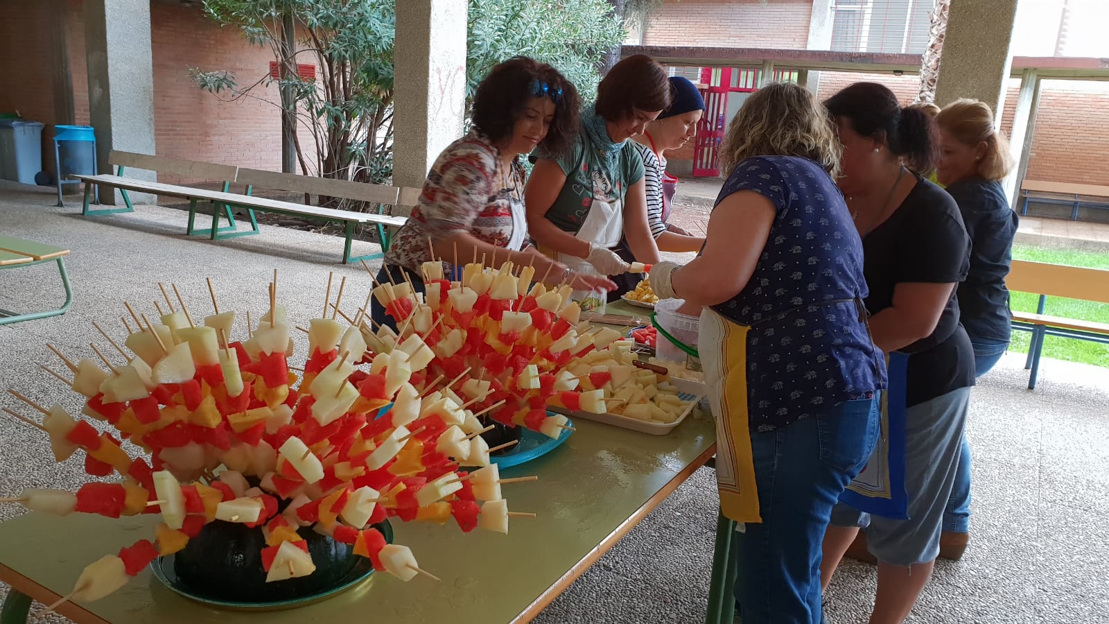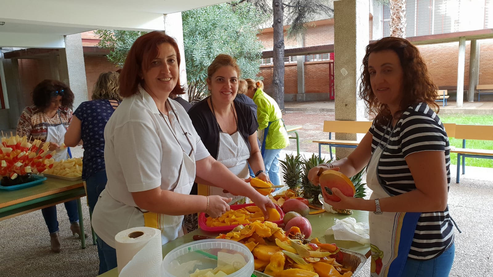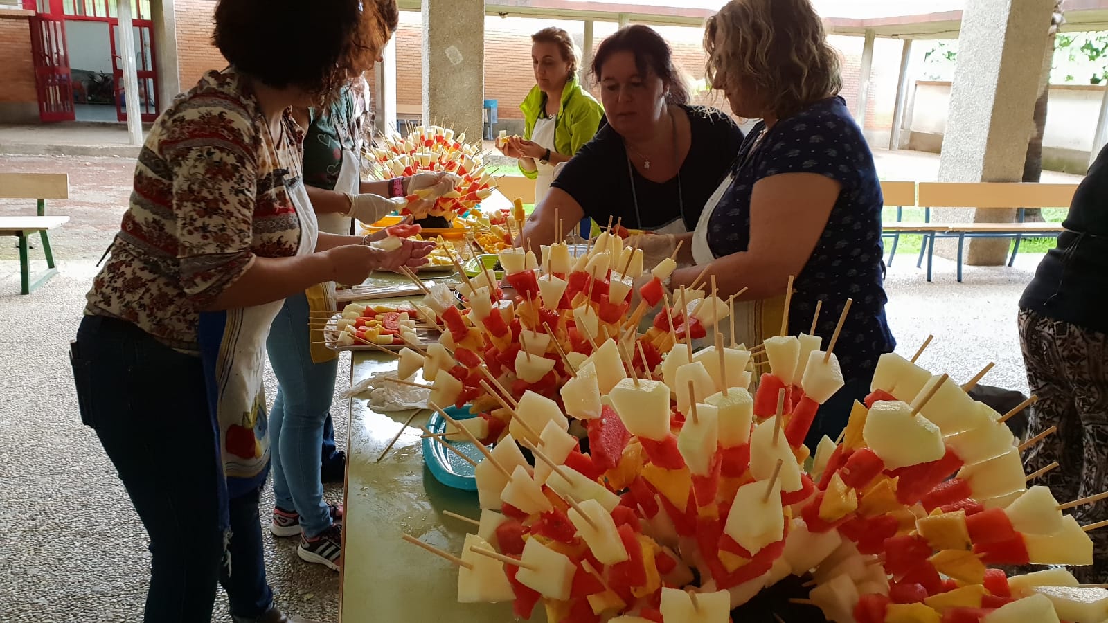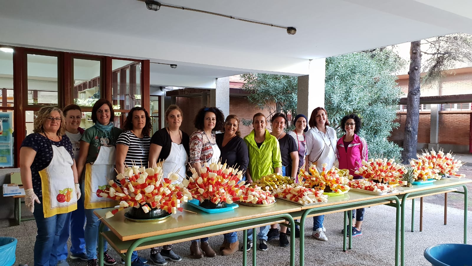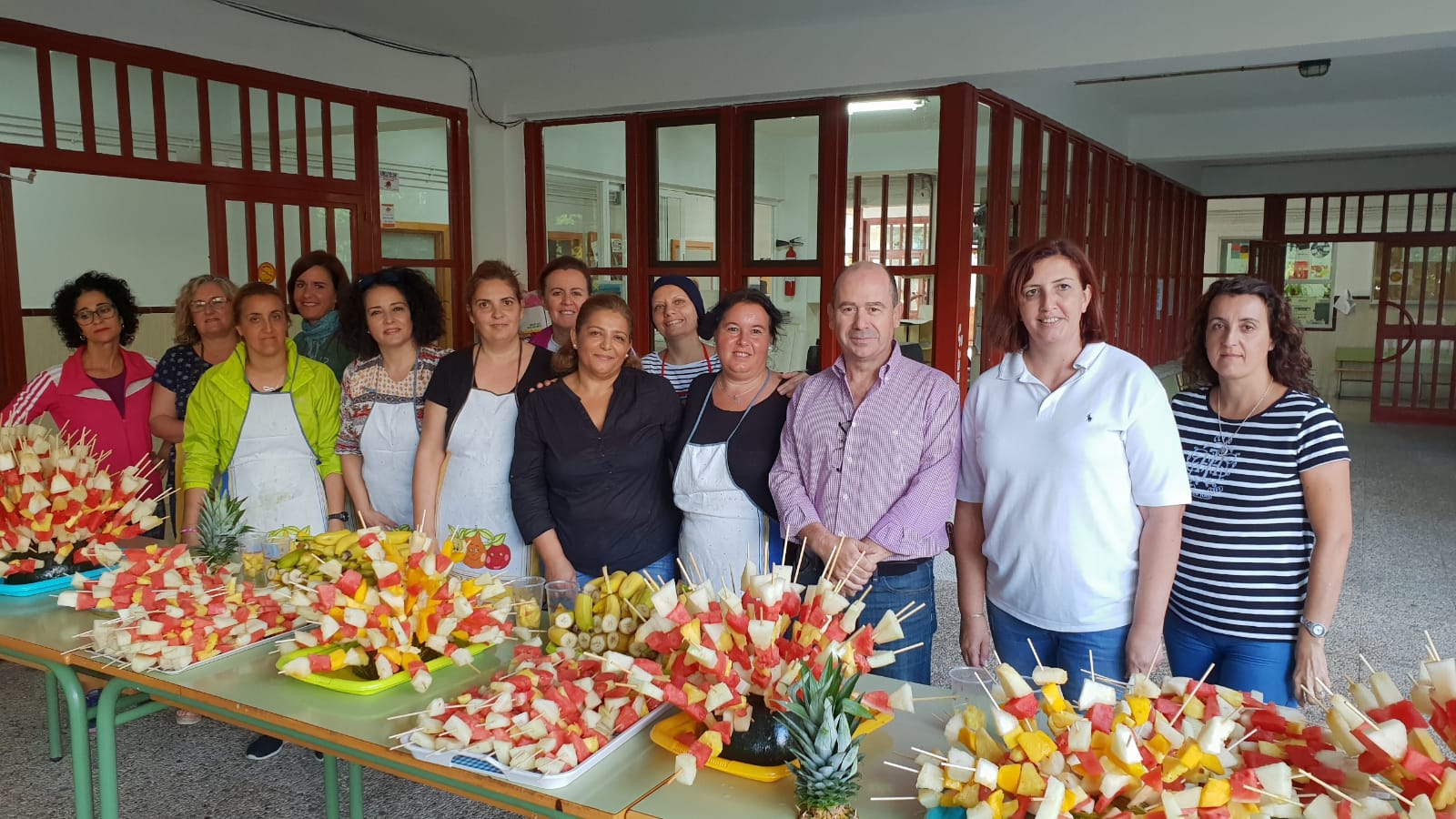 A la hora del recreo las madres de nuestra AMPA, el Acueducto, llenaron el patio de sabores y colores saludables ofreciendo para todos un desayuno de diferentes frutas montadas con diversas formas y composiciones muy imaginativas y atractivas que alegraron nuestra vista y nuestro paladar a la vez que combinaban una serie de vitaminas necesarias cada día.