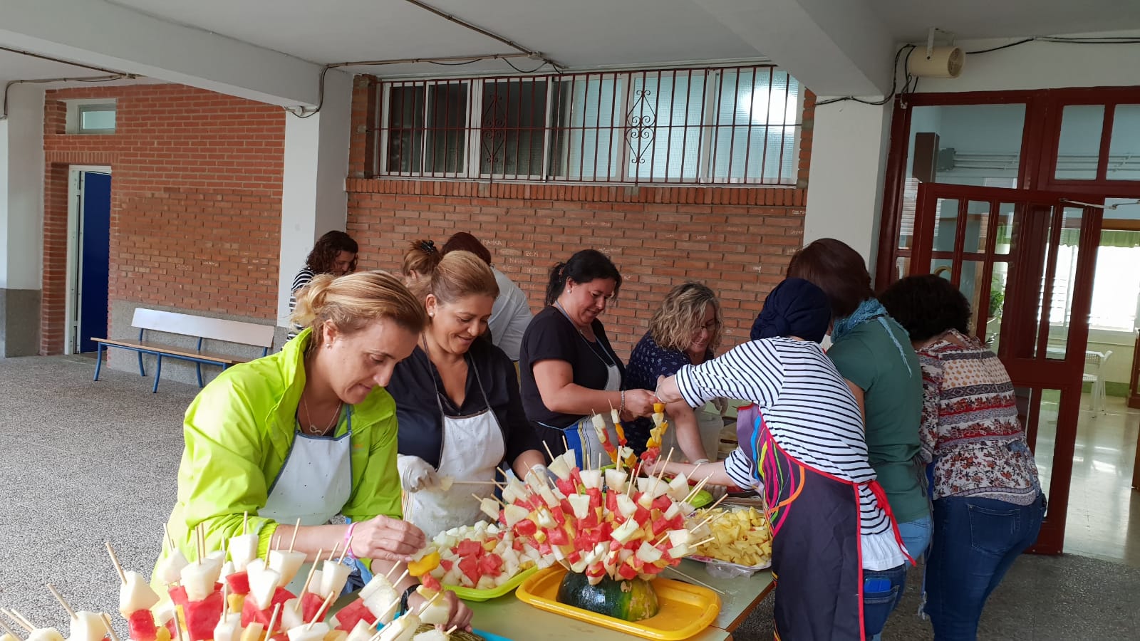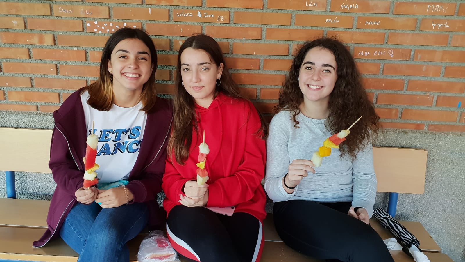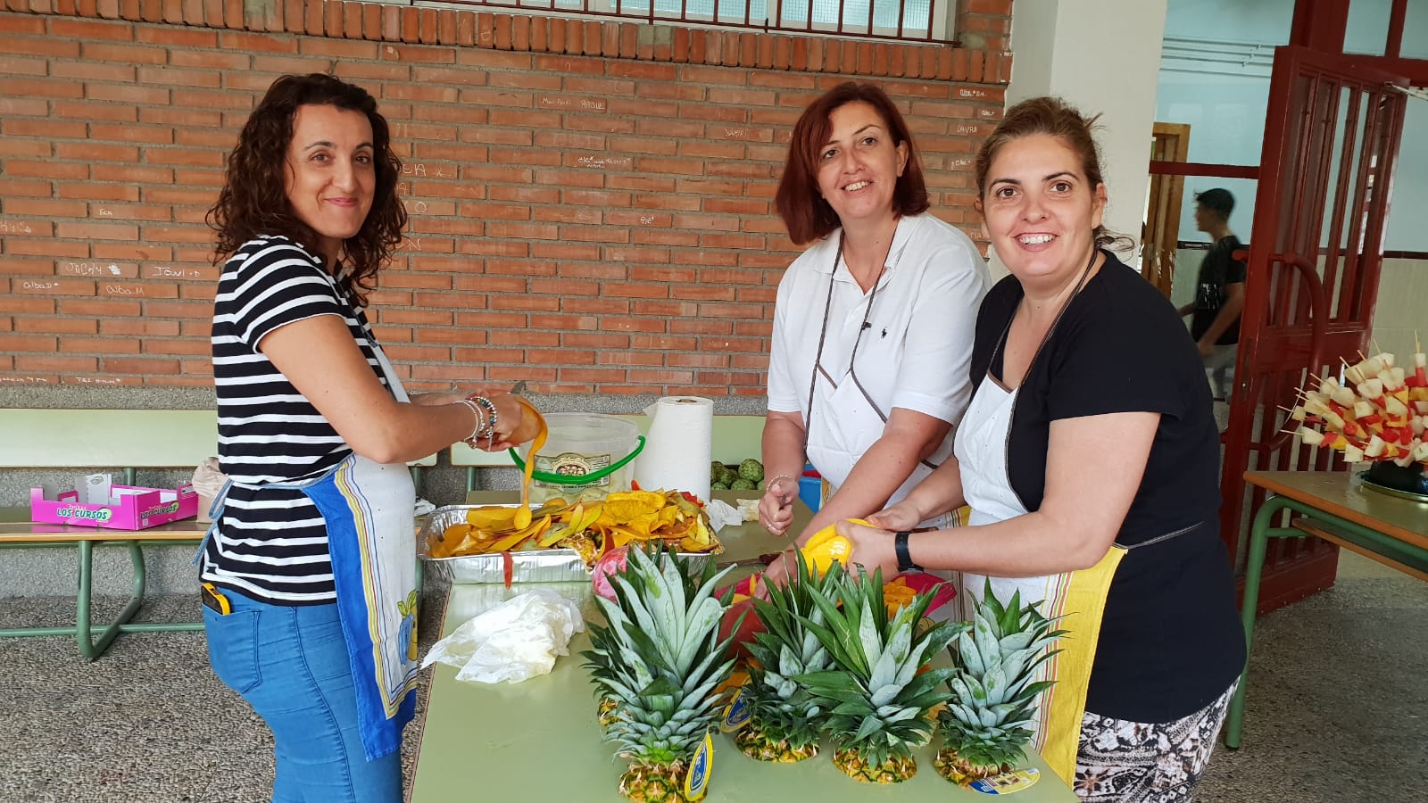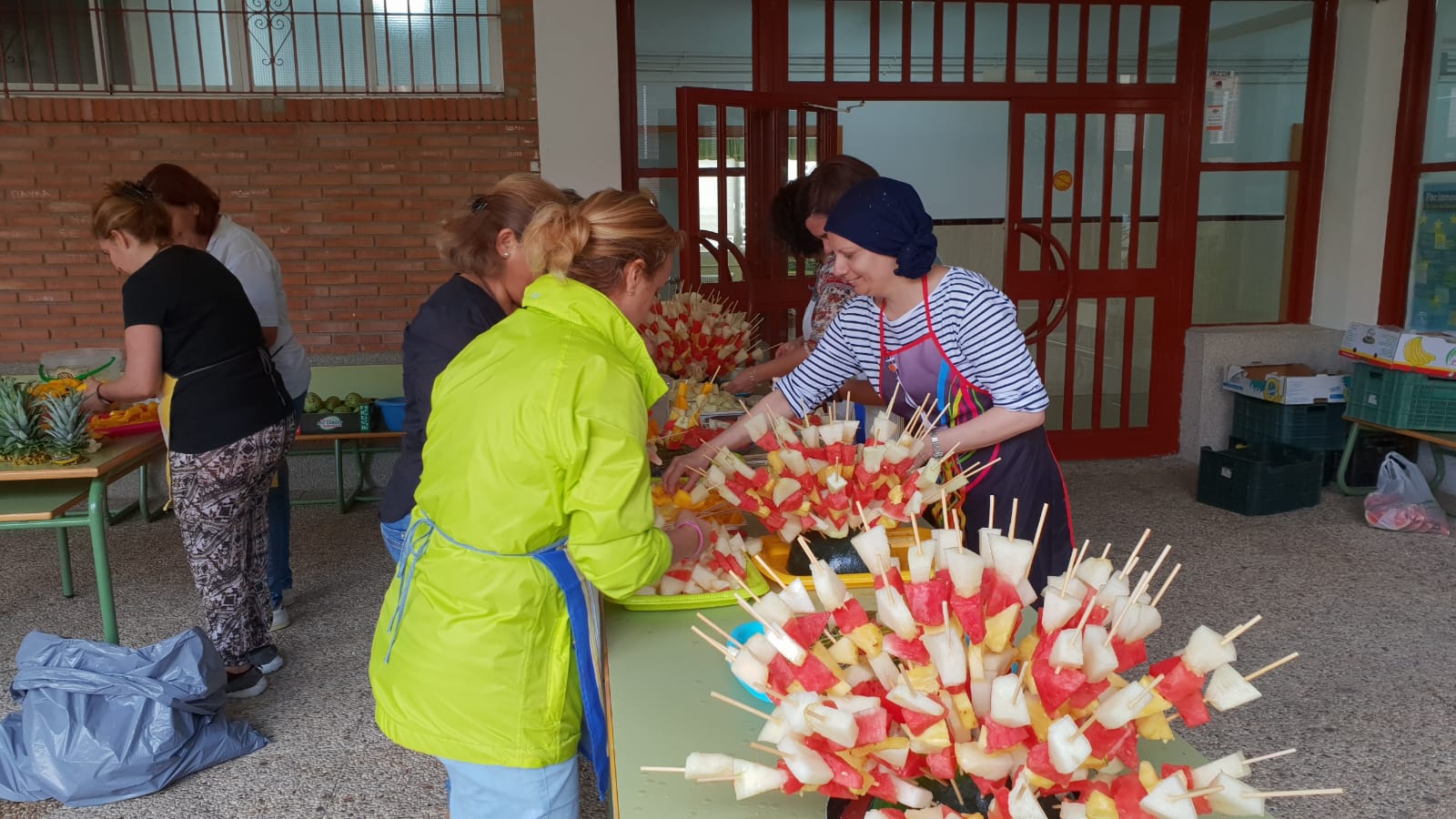 A la hora del recreo las madres de nuestra AMPA, el Acueducto, llenaron el patio de sabores y colores saludables ofreciendo para todos un desayuno de diferentes frutas montadas con diversas formas y composiciones muy imaginativas y atractivas que alegraron nuestra vista y nuestro paladar a la vez que combinaban una serie de vitaminas necesarias cada día.