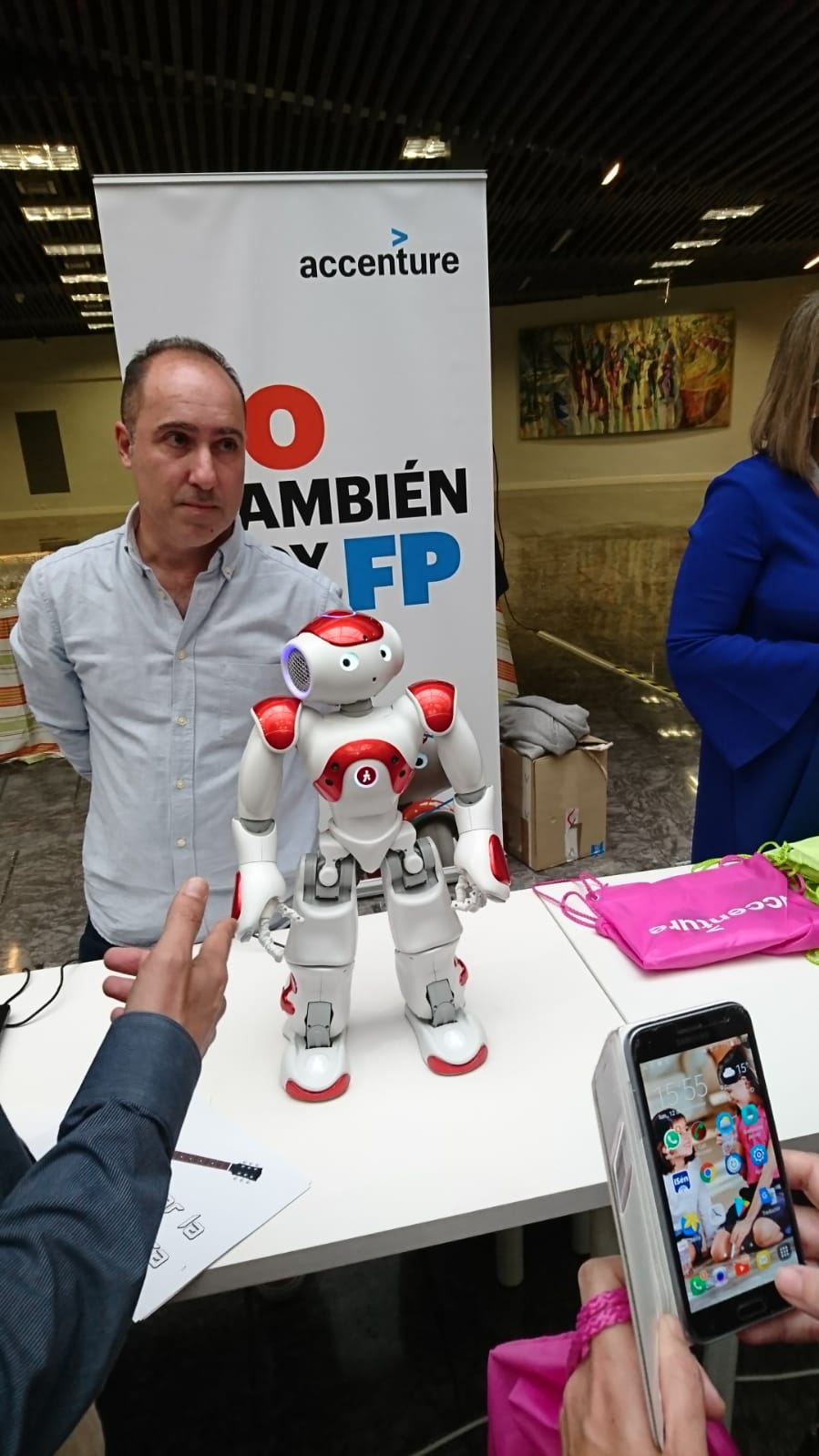 En tercer lugar tuvimos oportunidad de escuchar a Jaime Mata de Accenture Technology, empresa dedicada sobre todo a la Inteligencia Artificial con proyectos tan ambiciosos como la Estación 4.0 de Metro, el billete electrónico de Renfe o el software de realidad aumentada de Ikea que permite ver como quedaría un mueble sobre nuestra propia casa antes de comprarlo. También expresó la importancia que tiene hacer una Inteligencia Artifical responsable y ética así como los perfiles buscados por la empresa que son los de lenguajes de programación y robótica.