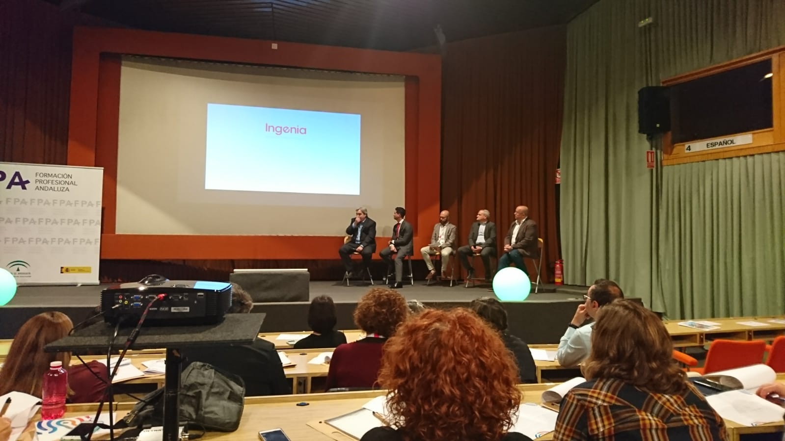 La segunda empresa del panel fue Ingenia en la que su representante de marketing, Carlos Bentabol, resaltó la importancia de la Ciberseguridad en un mundo tan hiperconectado como el actual en el cual debe suponer un pilar fundamental en el desarrollo de software. Dio a conocer también a los asistentes la existencia del INCIBE (Instituto de Ciberseguridad) donde los profesores que impartimos el módulo de "Seguridad Informática" podemos obtener muchos recursos para el aula. Los perfiles profesionales que más encajan con Ingenia son el de sistemas, desarrollo y comunicación.