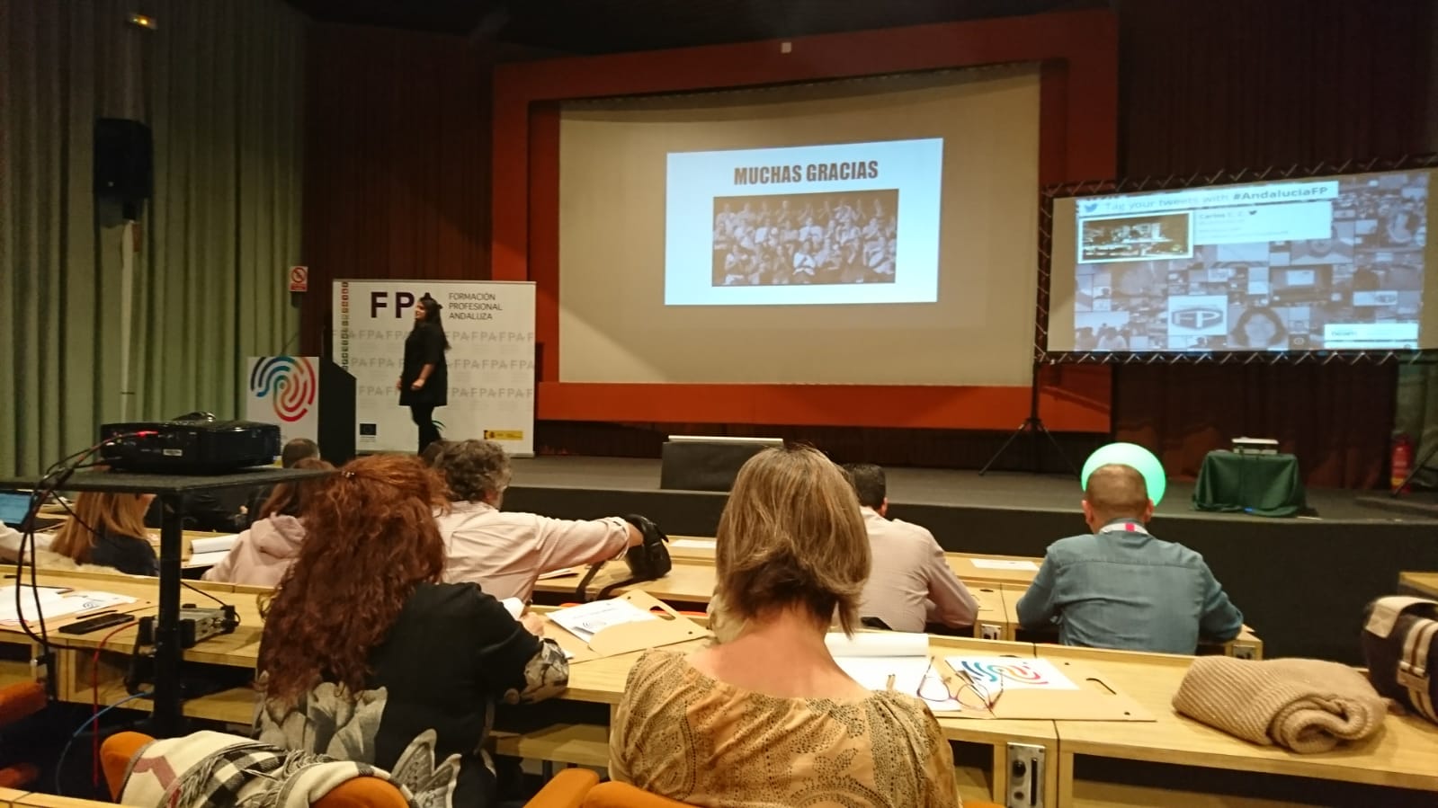 En la segunda jornada del Martes comenzó con la conferencia "La necesidad del cambio en la FP" a cargo de la profesora de FOL Patricia Santos Campos, premio nacional a la mejor docente en 2017, en la que nos habló entre muchas otros aspectos de la importancia de trabajar el "músculo" de la creatividad en nuestra labor docente y fomentarlo de igual modo en nuestro alumnado.