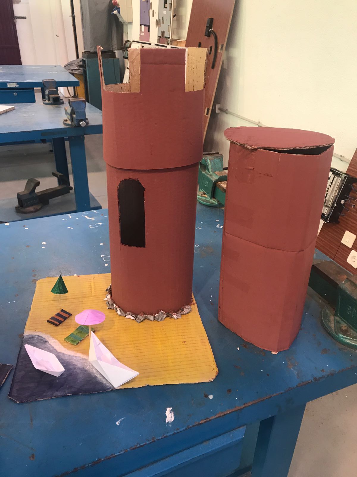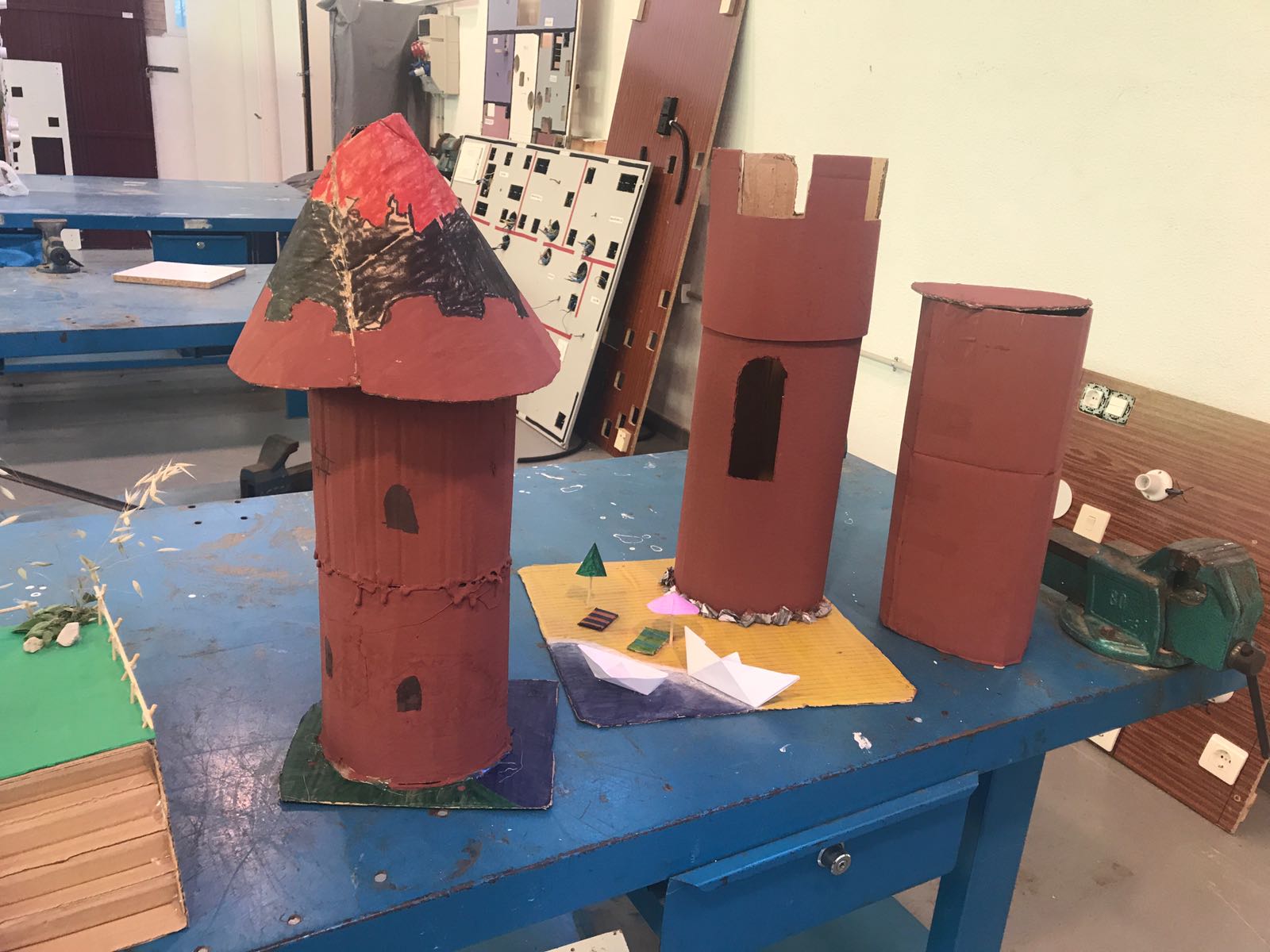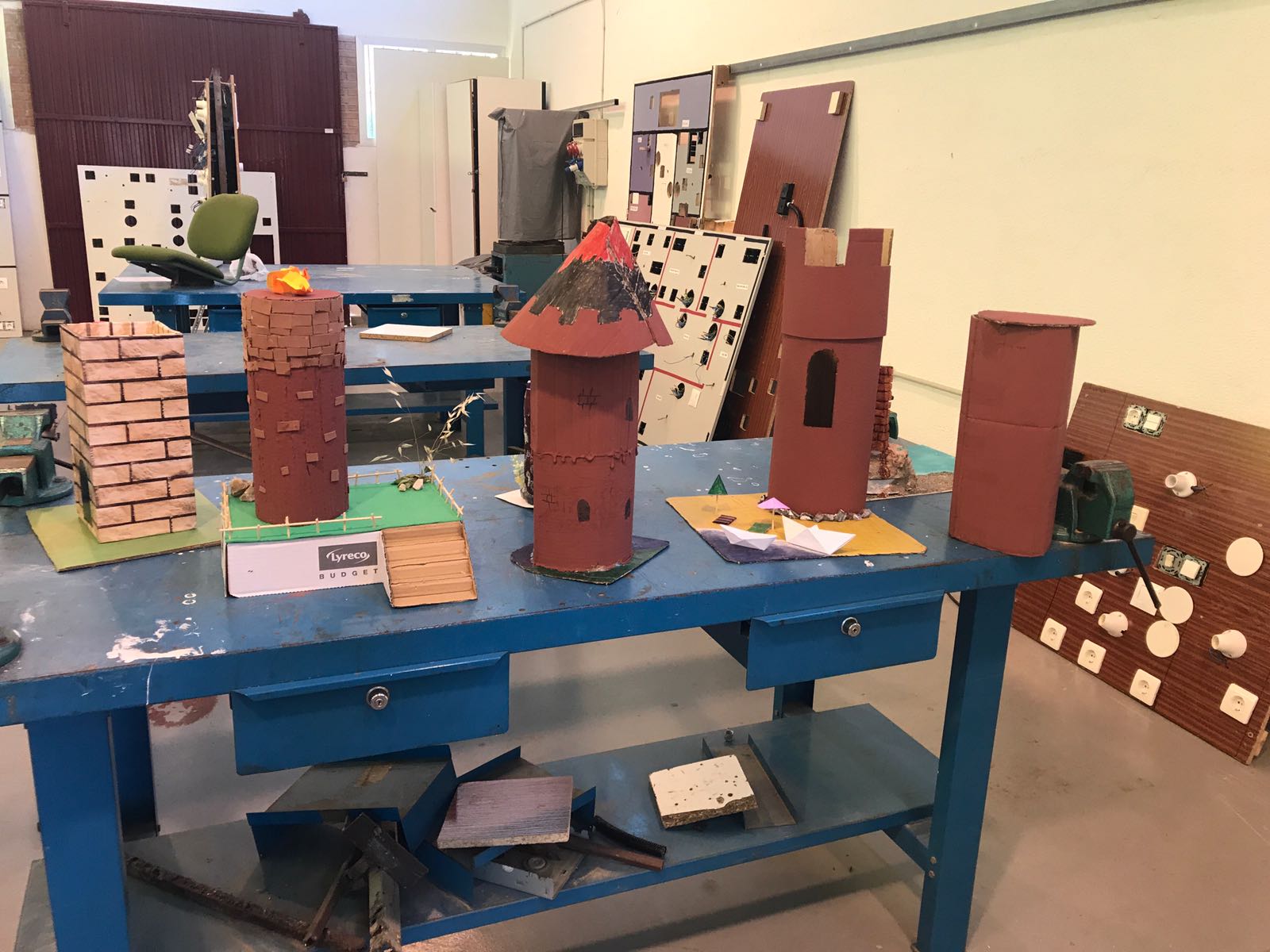 Los alumnos de 2º de ESO han realizado con materiales reciclados unas torres almenaras para entender la importancia de estos edificios en la comunicación de los siglos pasados cuando la tecnología no permitía mensajes instantáneos