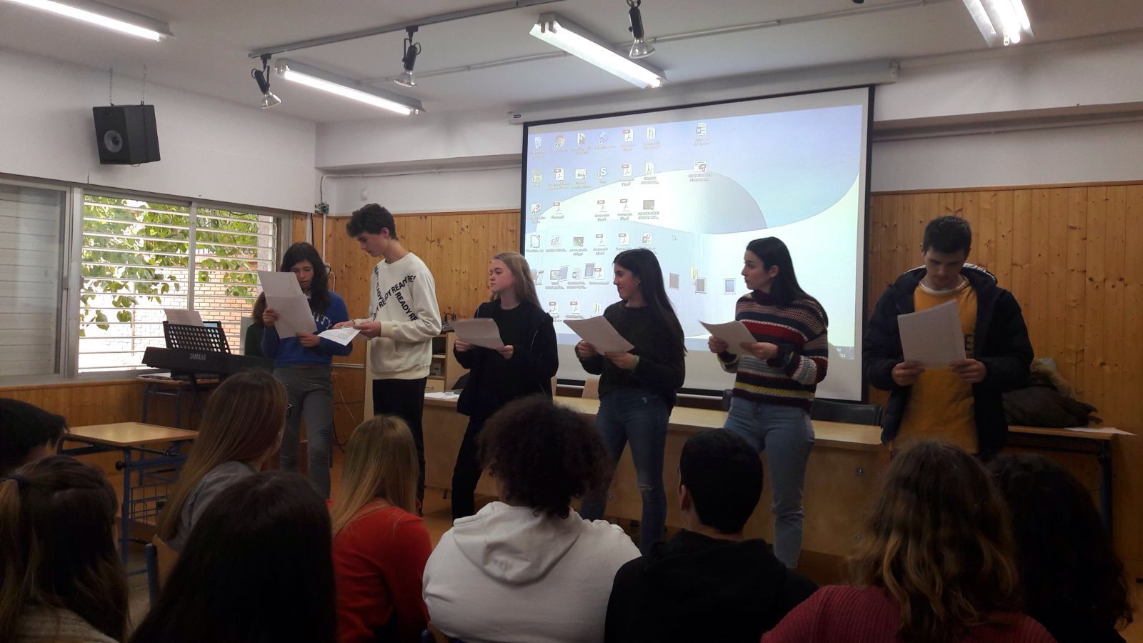 También se comentó que se darían premios a la clase cuyos lemas fueran los más votados por los organizadores del evento, y de las que resultaran elegidas, uno o varios alumnos/as recogerían el premio y explicarían qué significa el lema y por qué lo escogieron, por lo que la profesora de Lengua y Literatura de 2ª ESO, Dª Elizabeth, estuvo preparando con las chicas y chicos está justificación y la exposición oral.