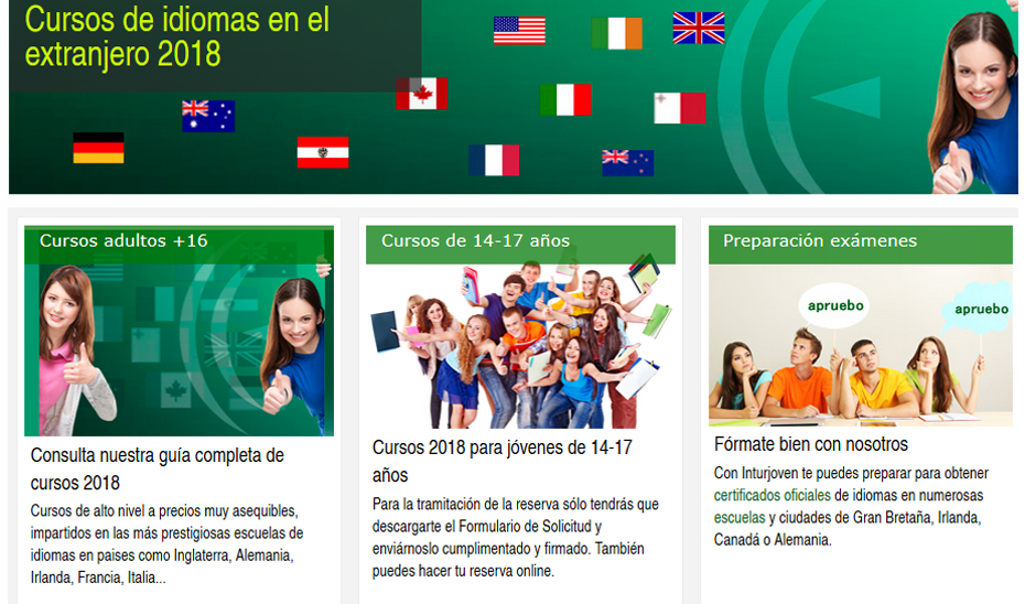 Sobre la Guía de Cursos de Idiomas en el Extranjero 2018, para mayores de 16 años, enmarca estancias en escuelas de idiomas de países como Inglaterra, Irlanda, Estados Unidos, Francia, Italia o Alemania; mientras que para jóvenes de entre 14 y 17 años se ofertan cursos en diversas escuelas ubicadas en distintas ciudades de Gran Bretaña, Irlanda, Alemania, Austria o Francia.