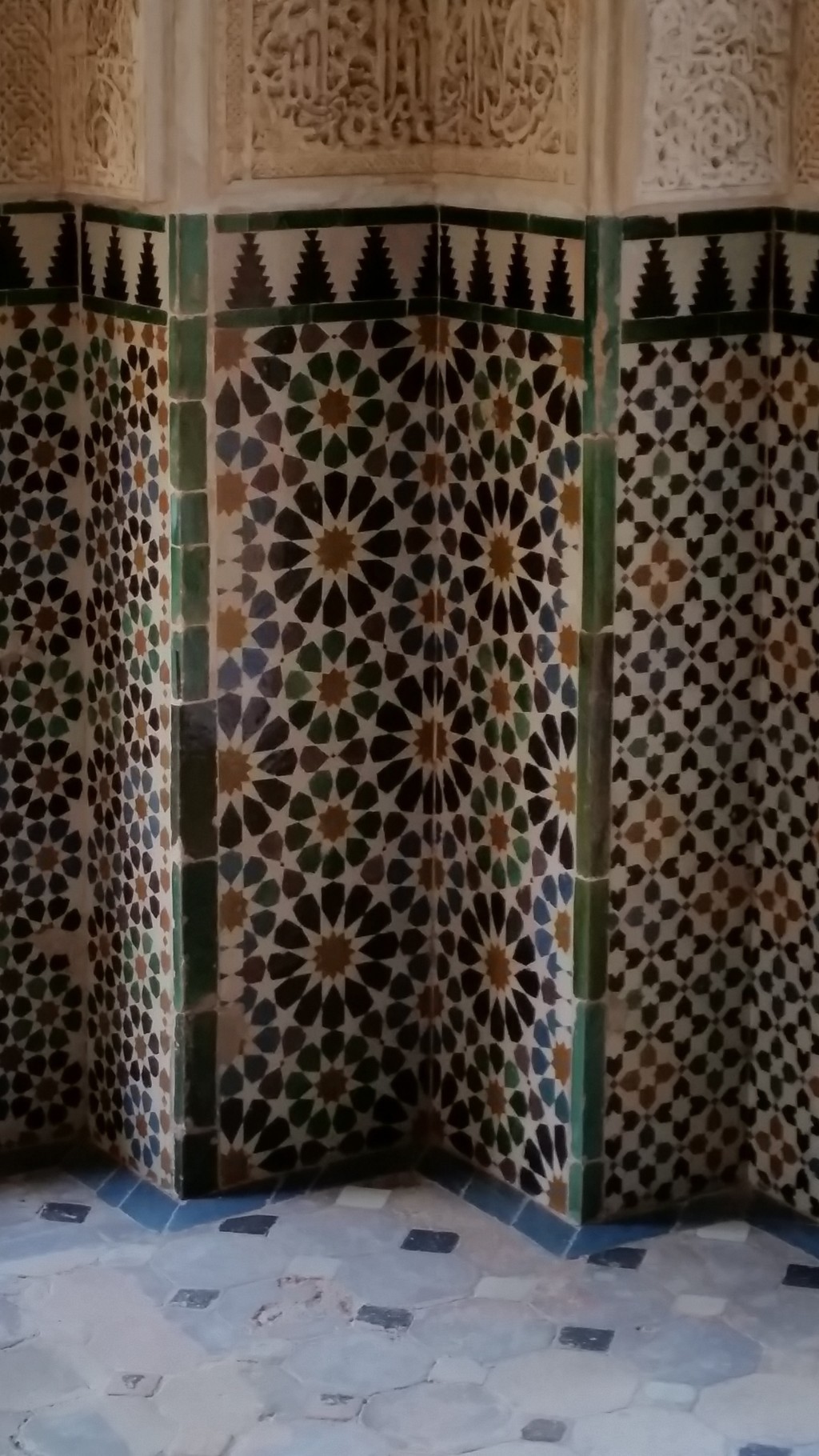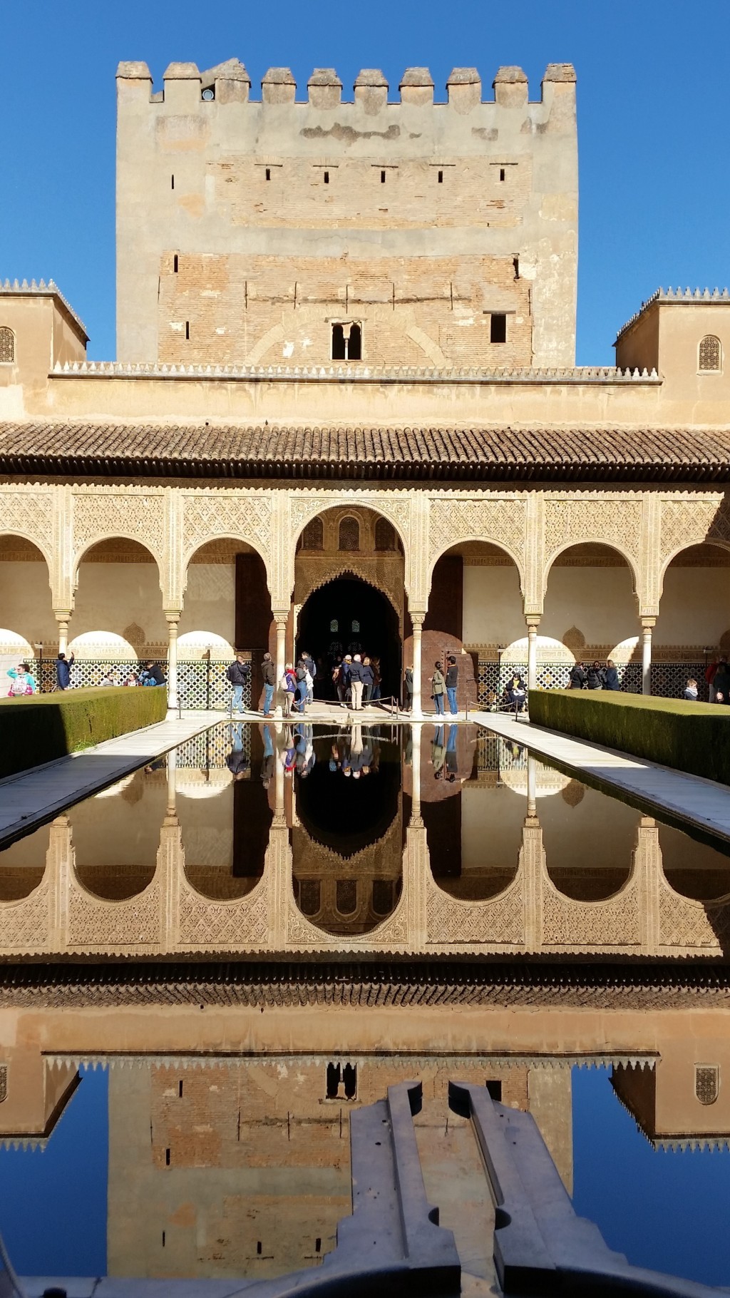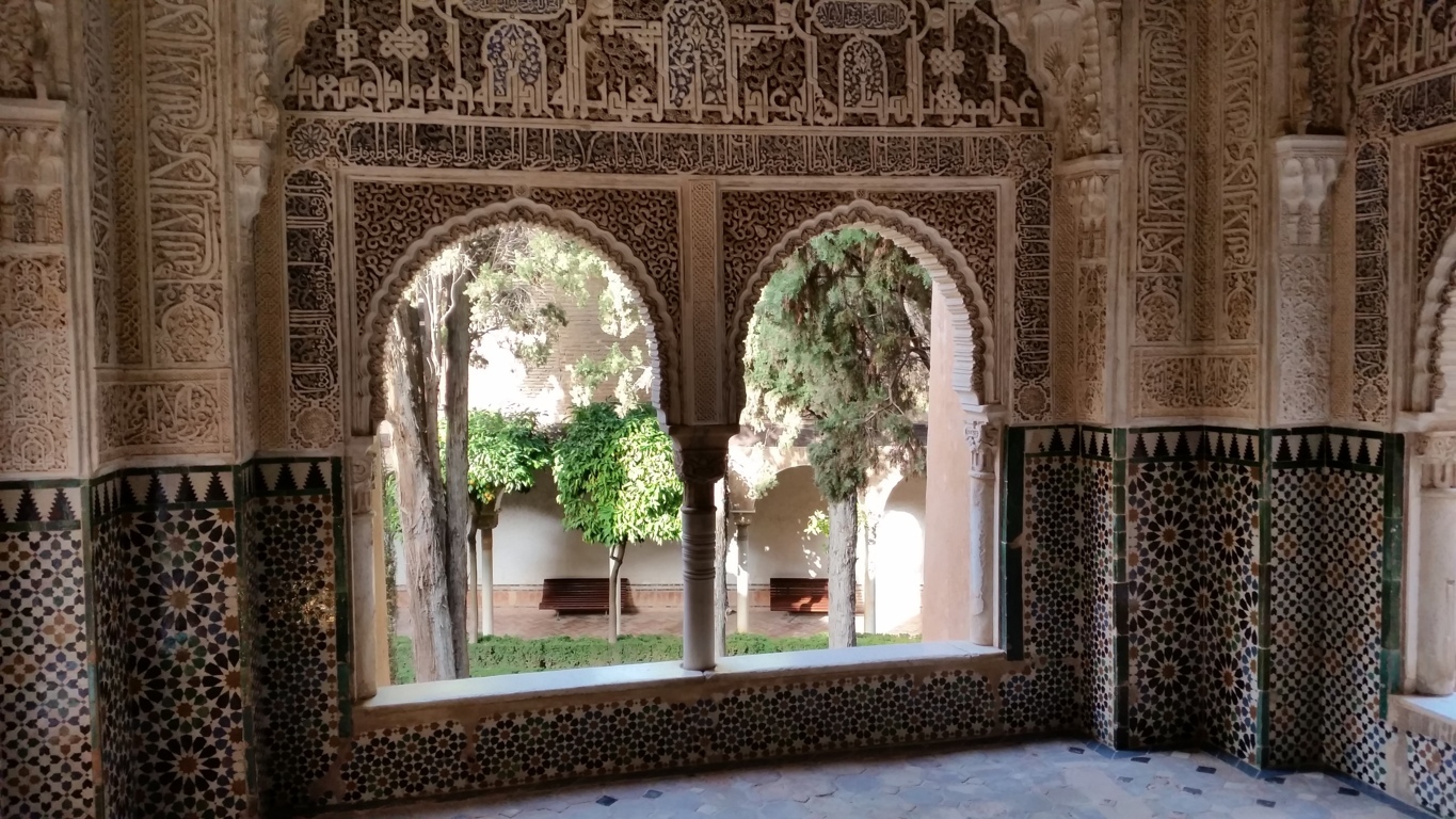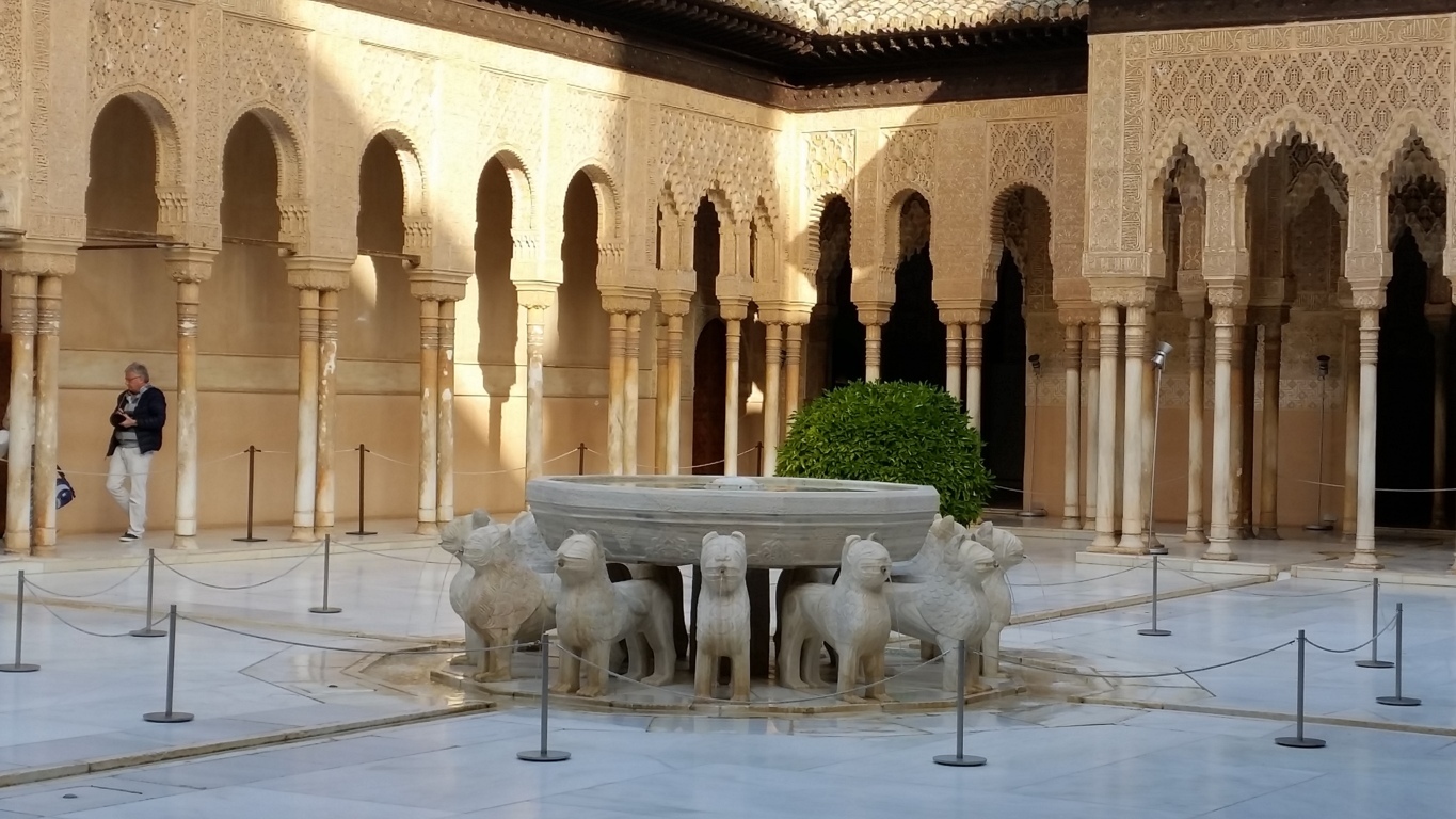Después de un brevísimo descanso pasamos a visitar los Palacios Nazaríes. Su historia, su arte y sus matemáticas nos volvieron a dejar maravillados a todos. Contemplamos todos los tipos de mosaicos, sus proporciones, sus muestras de grupos cristalográficos, … y por supuesto la incomparable decoración de todas y cada una de sus estancias.