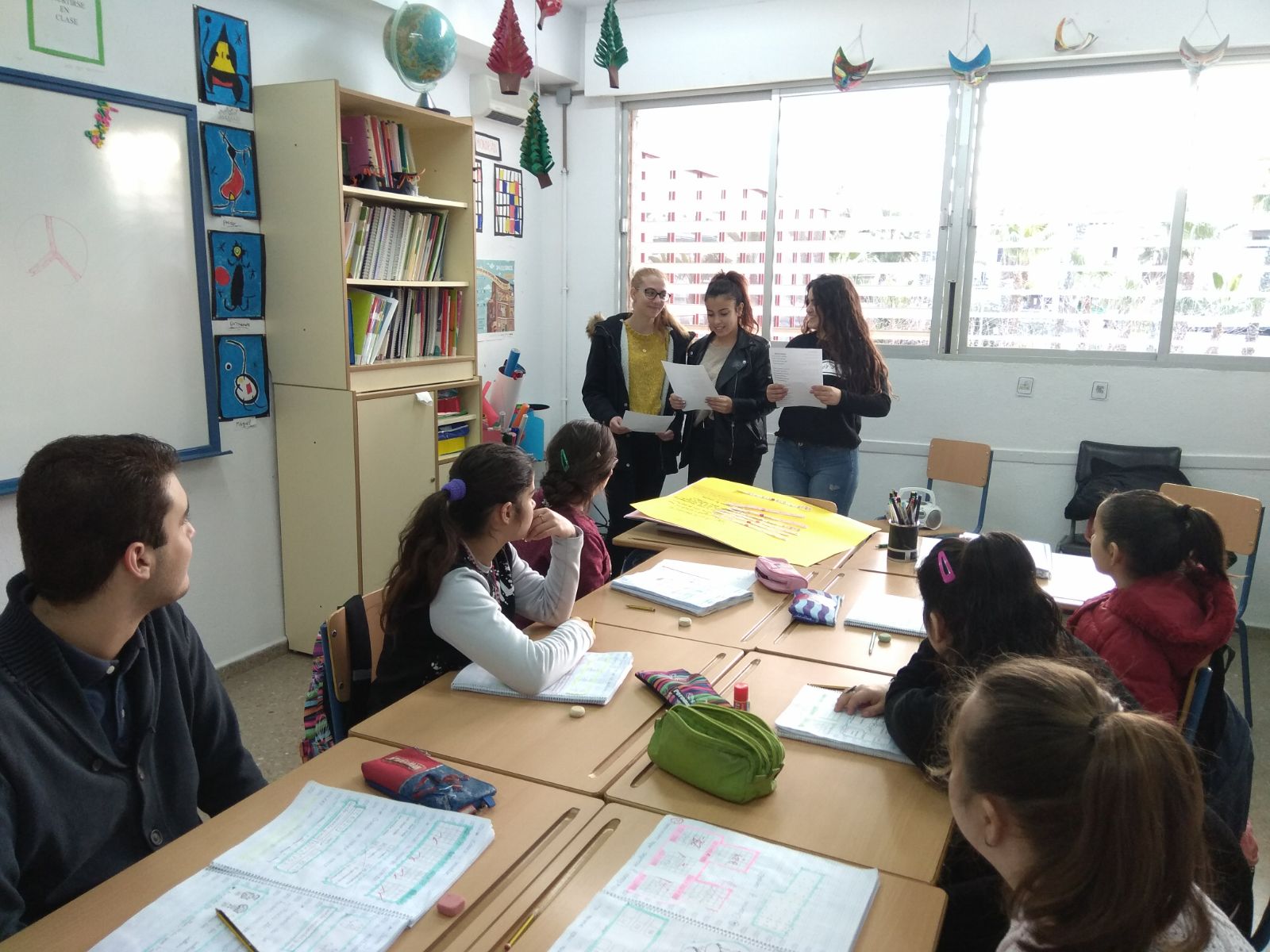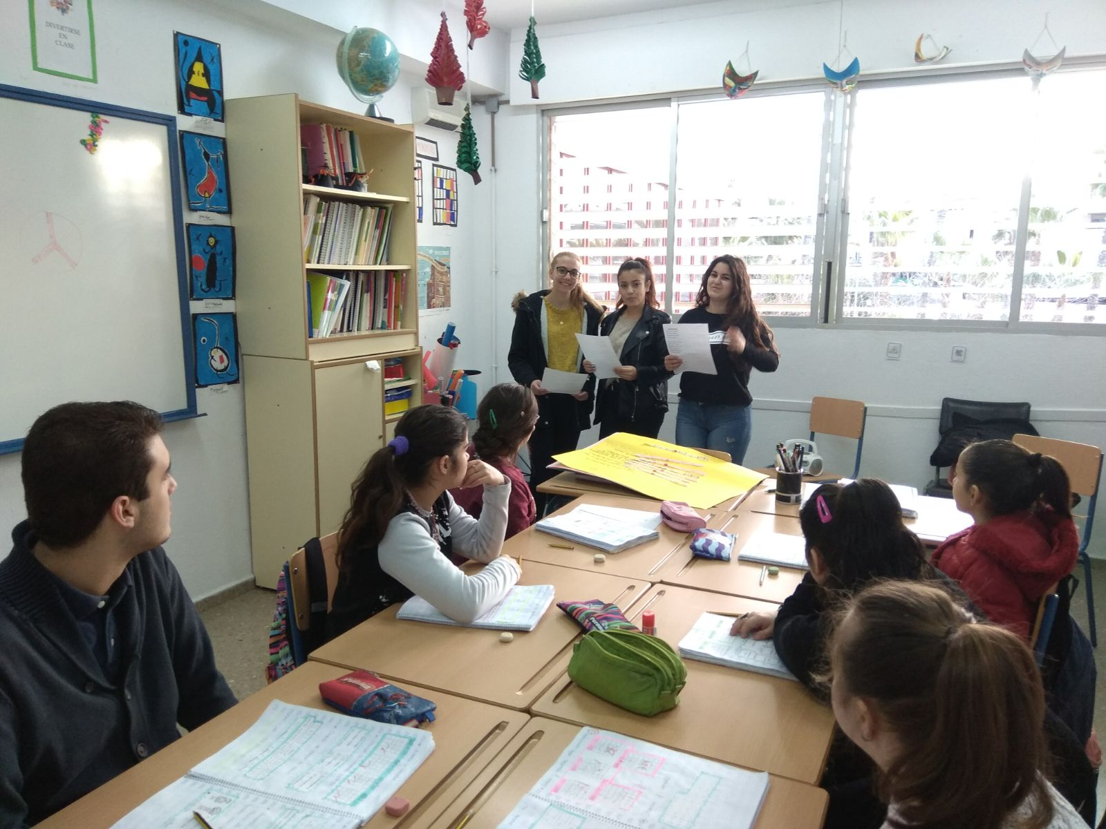 Las alumnas de la asignatura de griego cantan "La vida es bella" a los alumnos/as del aula especica con motivo del Día de la Paz: