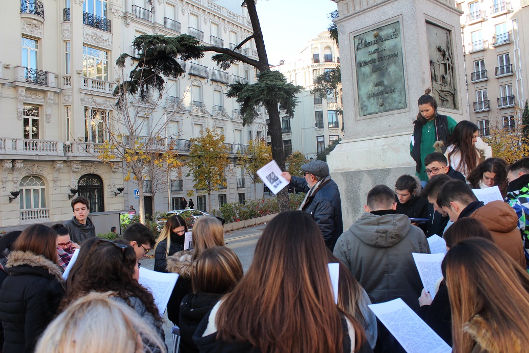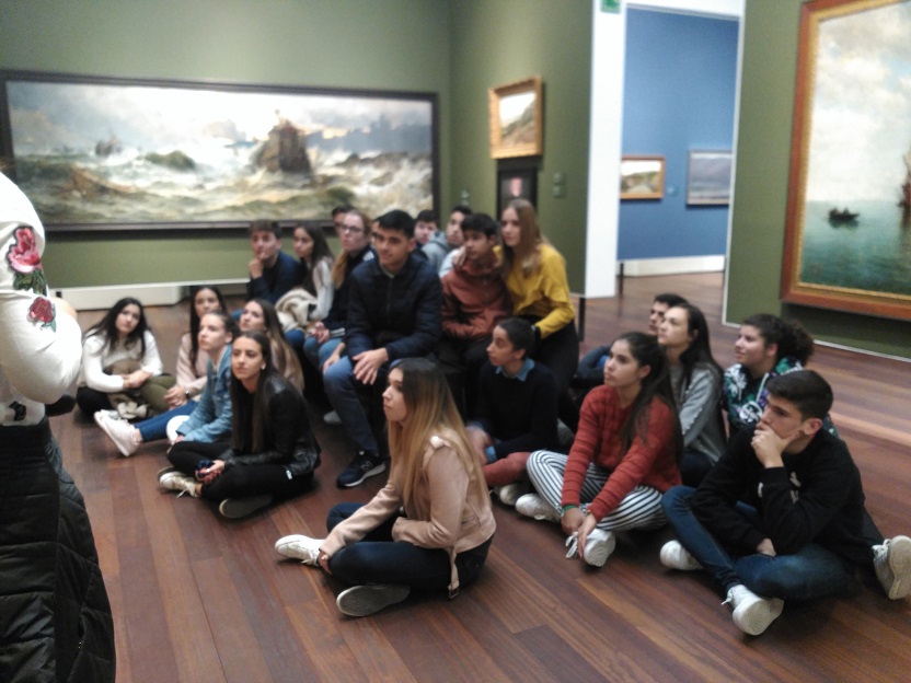 We have been organizing a trip to Madrid for 4 years now together with the History and Spanish Language Departments and I must say it is always interesting if we consider all the activities students make and the places they visit. We have been to the capital of Spain for 3 days visiting some of the most important museums such as El Prado and Reina Sofia Museums where we have seen some of the most important and interesting paintings and masterpieces. Most of them were explained by both teachers and students in Spanish and English. Most of the students in the bilingual group of Bachiller2 gave us some information about the best paintings by Velazquez, Goya, Picasso and Rubens. Alyssa, our language assistant, travelled with us and gave us some information about some of these masterpieces. Apollo in the Forge of Vulcan, The Triumph of Bacchus, Adoration of the Magi, Meninas, The Fable of Aracne, The Three Graces, Portrait of Charles IV’s Family and Guernica were some of the paintings we studied . We began our day visiting The Prado Museum and walking around the old town. We focused on our sightseeing in the architecture and the so called Literary Walk, in which we were told about the most important Spanish writers and playwrights. I won’t get into much details regarding Madrid since we have already mentioned in other reports, but adding the trip to El Escorial Palace on a guided tour and getting to know about Philippe II was definitely worthwhile. We could enjoy visiting the impressive Library, the church, the King and Queen’s private rooms and the breathtaking and ostentatious burial chamber where most Spanish kings and queens were buried. It is a well preserved and breathtaking enclosed space where a huge part of the History of Spain is “buried”.