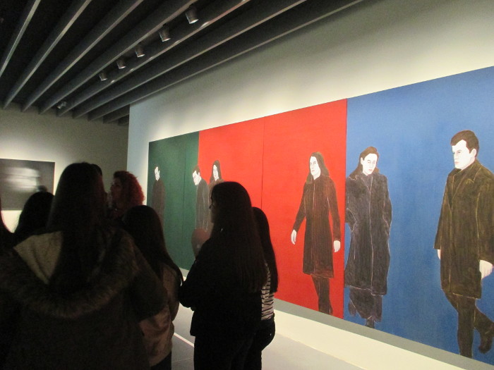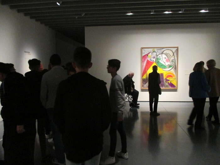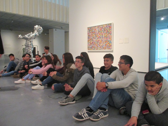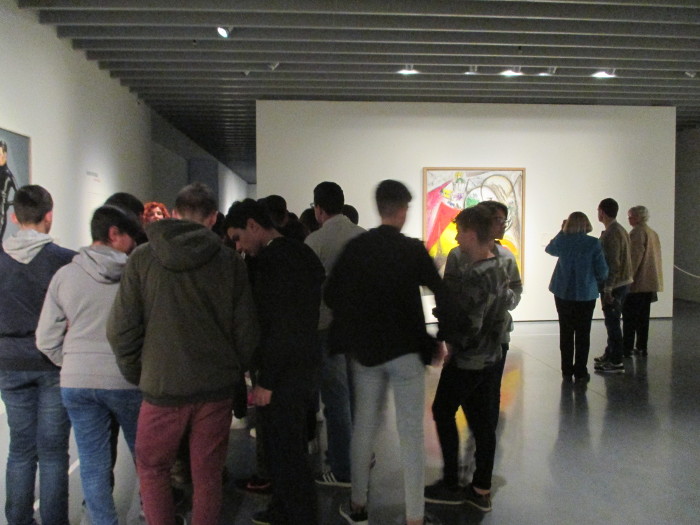Posteriormente, visitamos el Museo Pompidou que está situado en el Muelle Uno, donde pudimos contemplar numerosas obras de arte de distinta índole en la colección permanente, por ejemplo instalaciones de video, pinturas, sculturas, etc. Esta visita que también es guiada intenta ser interactiva y. que los alumnos participen, ya que se les hacen preguntas y les piden su opinión.. Alguno de los temas que se trataron fueron la soledad o el papel de los medios de comunicación en nuestra sociedad. También pudimos observar una exposición temporal sobre arquitectura, con maquetas de edificios emblemáticos de París construidos desde 1950.