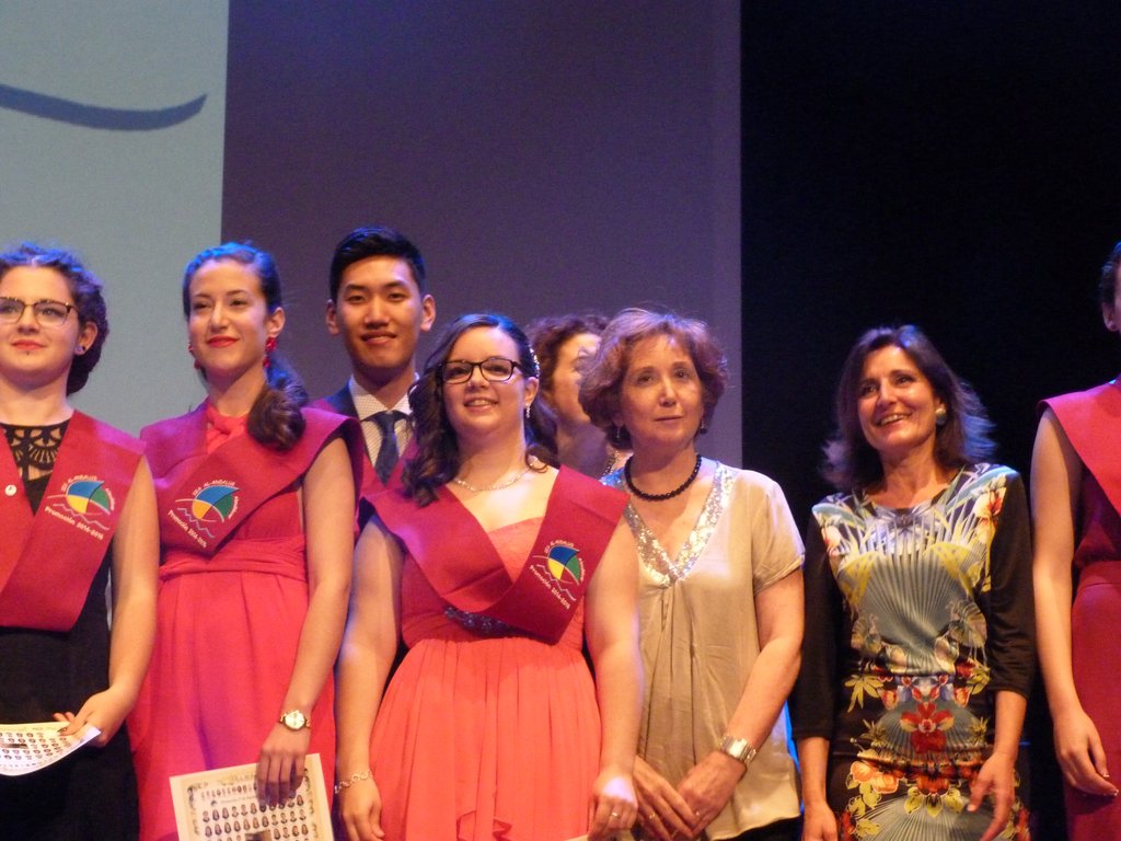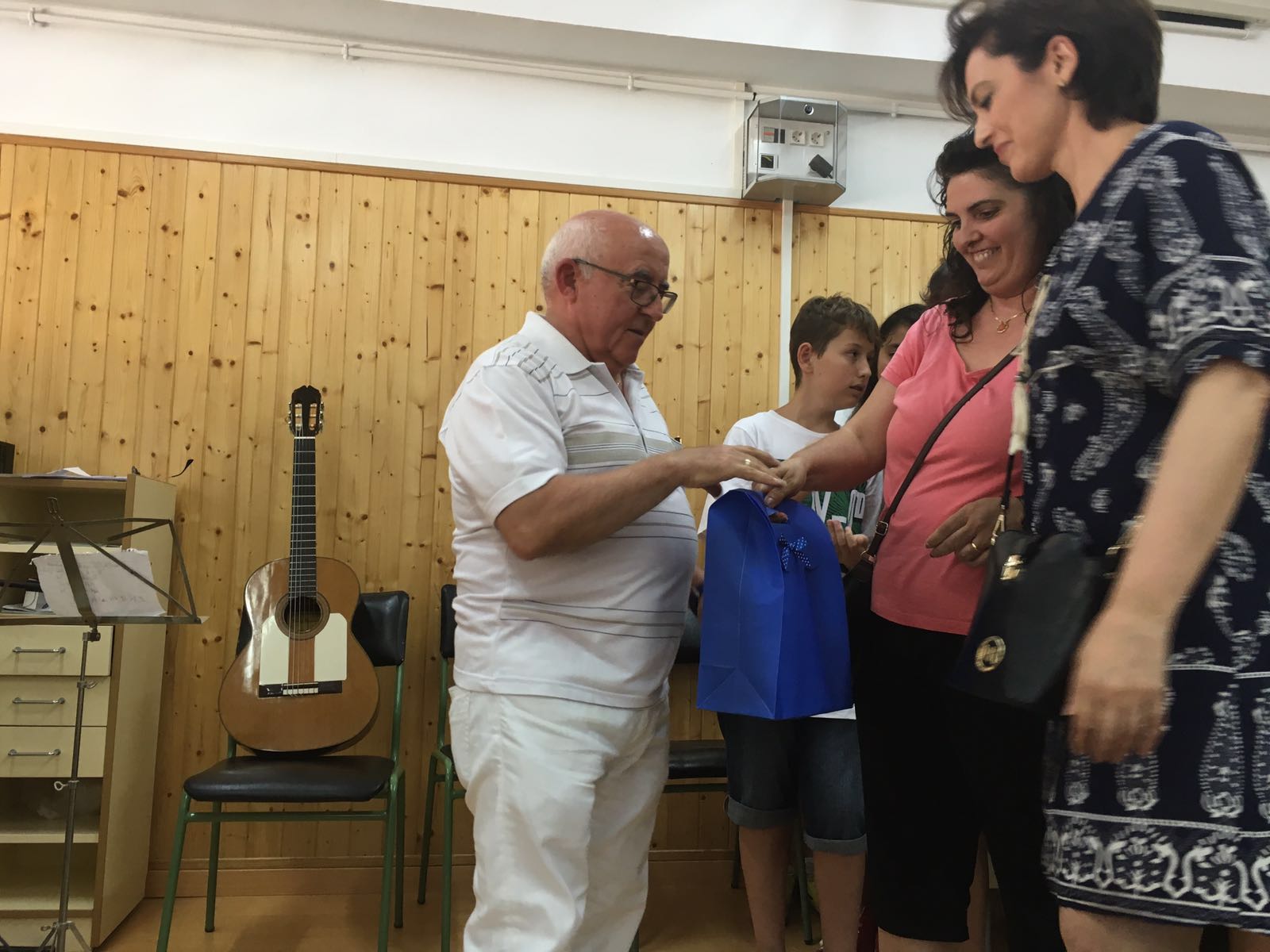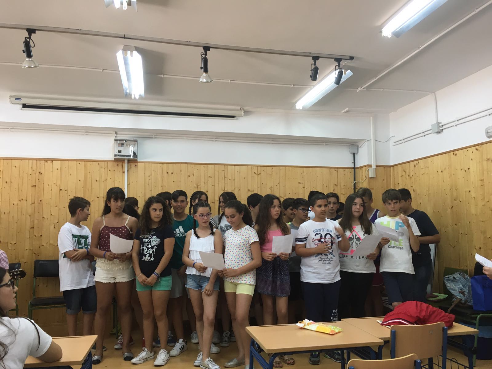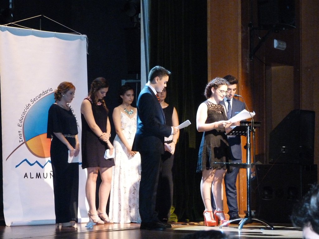 La ceremonia se amenizó con dos actuaciones, un baile, por parte de una alumna y una canción del coro dirigido por la profesora de Música. Además de todos estos alumnos graduados, premiados, mencionados,… este año hubo un protagonista muy especial en el acto: el profesor Paco Adamuz,que ya se jubila (¡aunque esperamos que continúe organizando y dirigiendo la liga de fútbol!). Los alumnos de su tutoría le dedicaron una bonita canción en francés que fue una sorpresa para él. También las madres del AMPA le tuvieron su reconocimiento y, como colofón final, se proyectó un vídeo muy emotivo realizado por alumnos, que recogía muestras de agradecimiento y cariño de parte de profesores, alumnos y personal no docente, para este profesor tan querido en el centro.