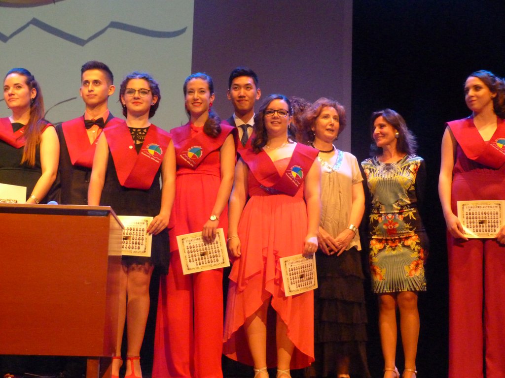 El acto terminó con la imposición de becas y entrega de orlas a los alumnos por parte del Director y el profesorado asistente.