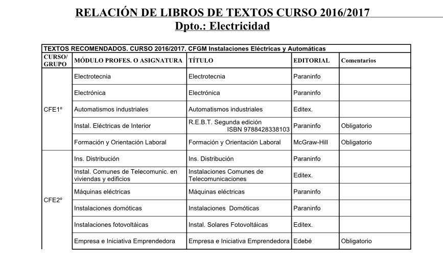 Libros del Ciclo de Instalaciones Eléctricas y Automáticas