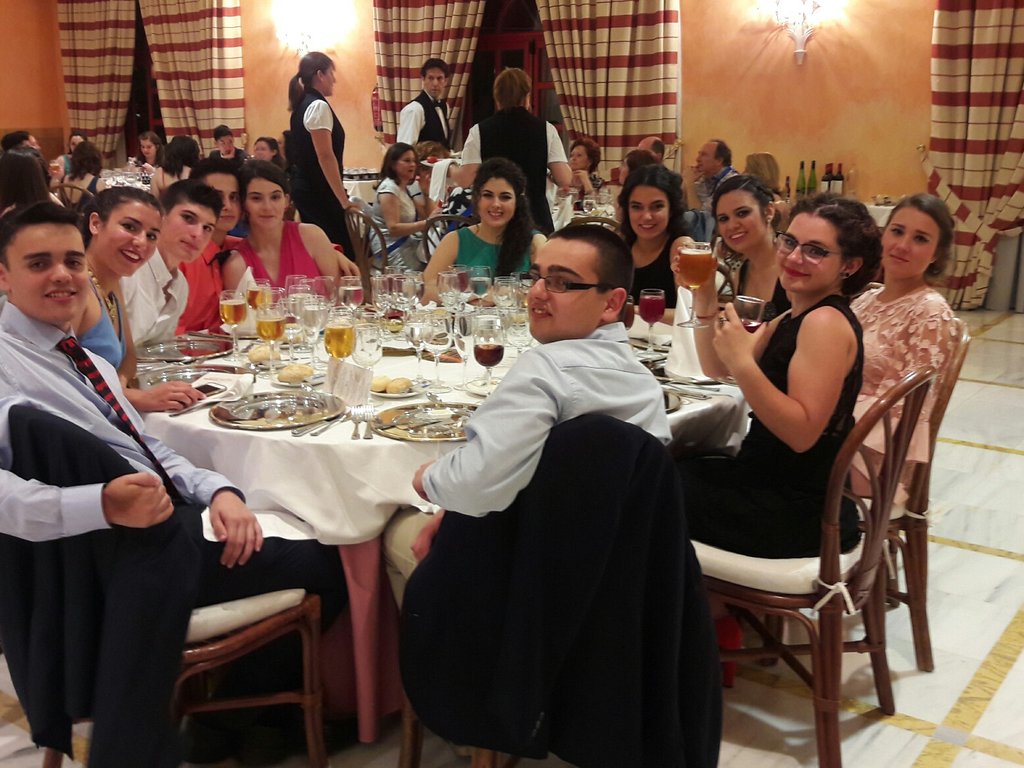 Pero la merecida fiesta continuó: encuentro con los padres; la cena de alumnos y profesores en la que también hubo otra canción interpretada por el profesor Mario Cantero y su grupo de Humanidades y, más y más merecidos ratos de risas, charlas, baile… ”hasta los churros”.