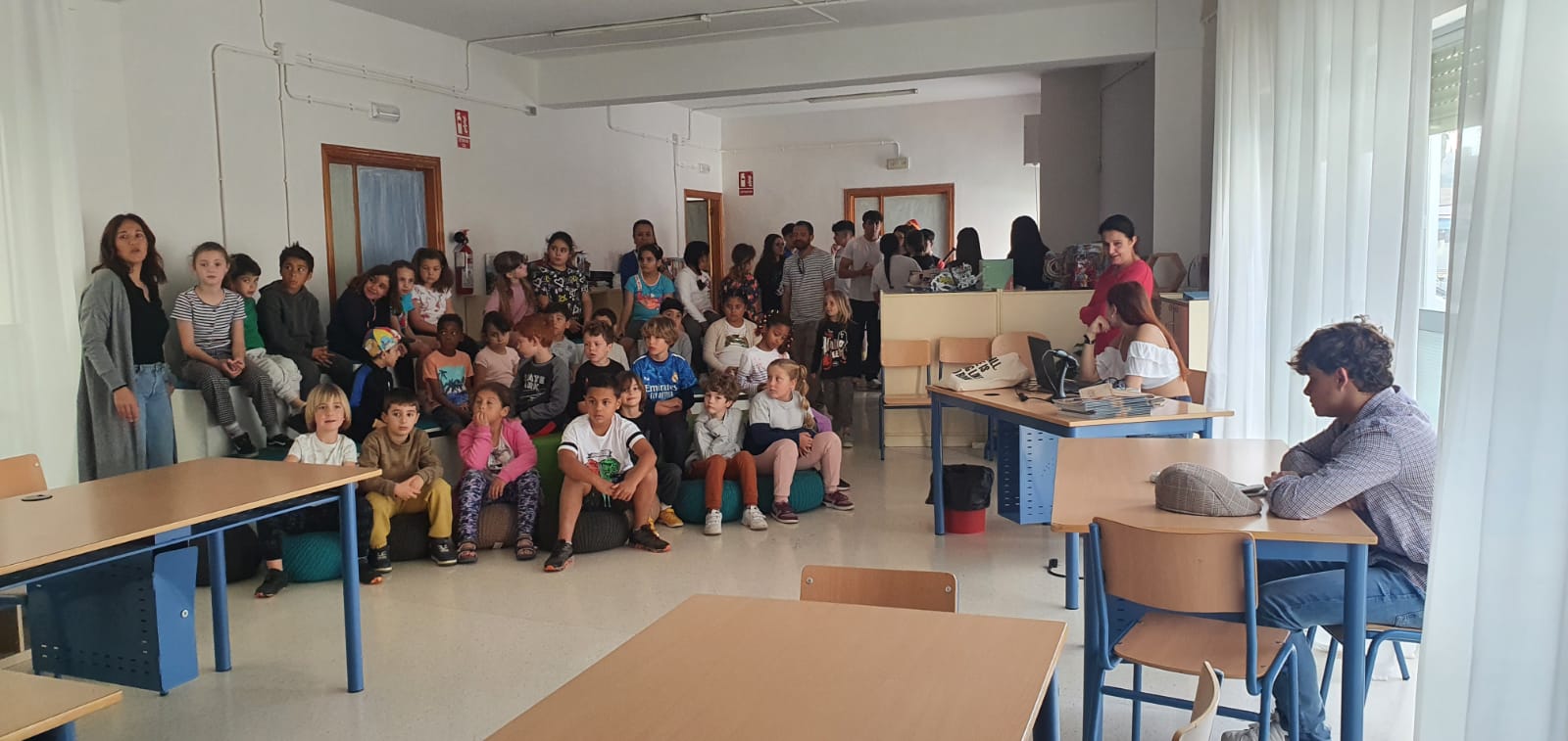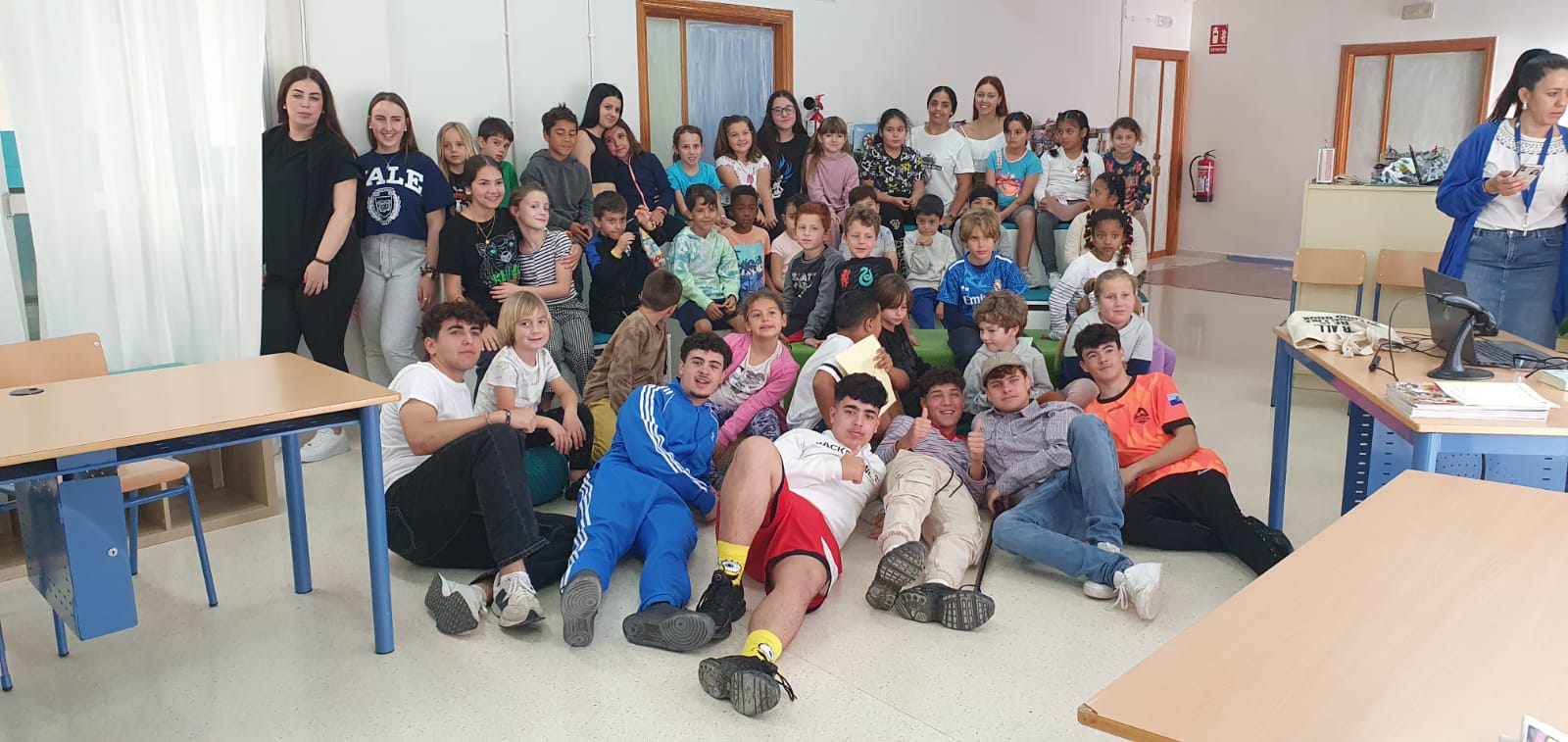 El día 18 de abril, "Día del Teatro", el alumnado de 1° de Bachillerato de Artes Música y Danza representó una breve y divertida obrita de teatro "¿Qué NO podemos hacer en la biblioteca?" en la Biblioteca del cole La Noria (que por cierto, está preciosa) y que fue muy aplaudida y jaleada por los diferentes grupos de Primaria que asistieron a la escenificación en tres pases sucesivos. Y después llegó una parte más didáctica pero también divertida: "Y ahora vamos a elaborar nuestras normas de la Biblioteca..." Mientras, el alumnado de 6° dramatizaba para sus compañeros de infantil "El flautista de Hamelin". Para finalizar, nuestros alumnos entregaron la cartelería para la clasificación de los libros de su "biblio" realizada en nuestra Aula de Emprendimiento (¡gracias, profe de Tecnología!)