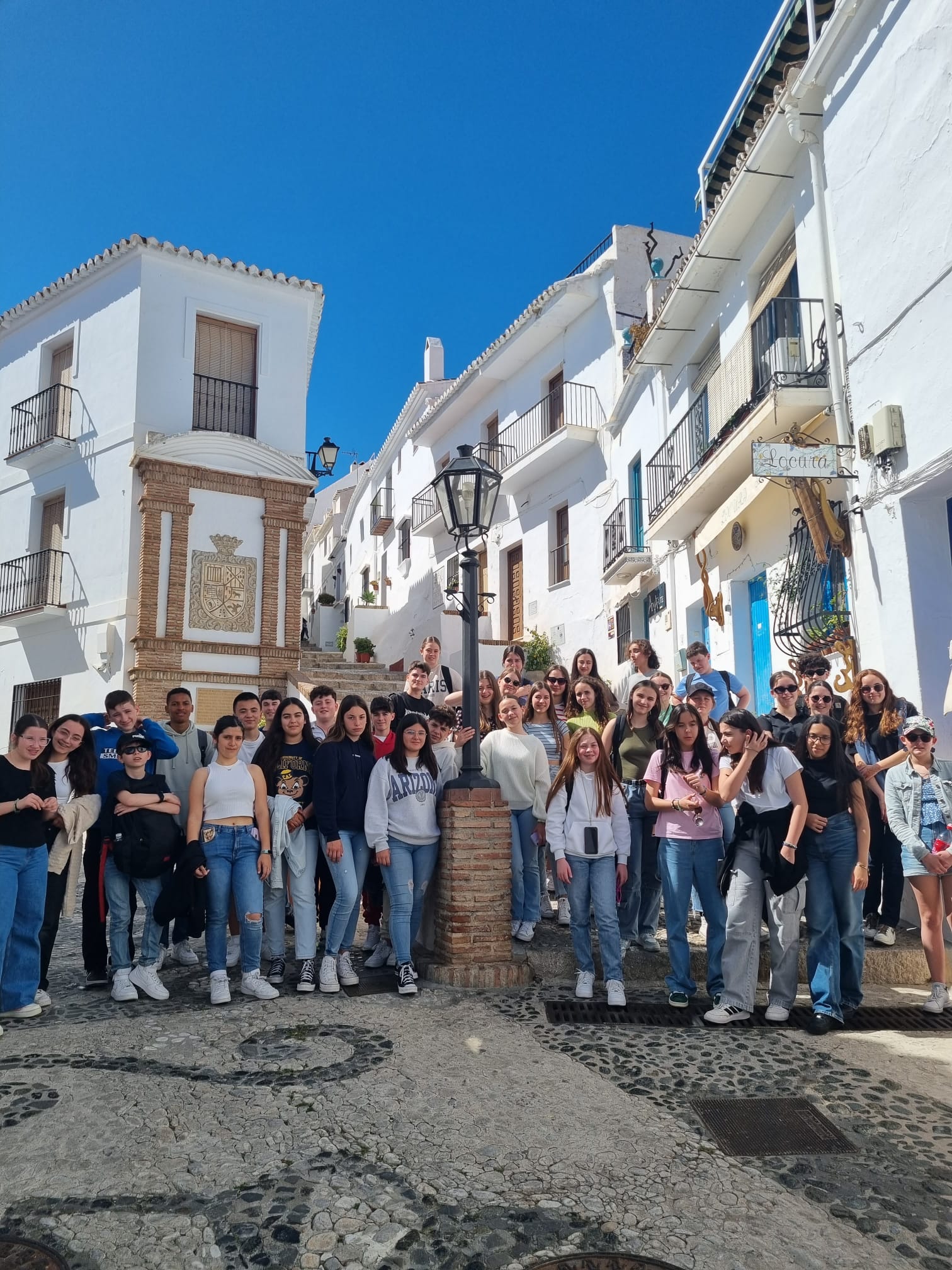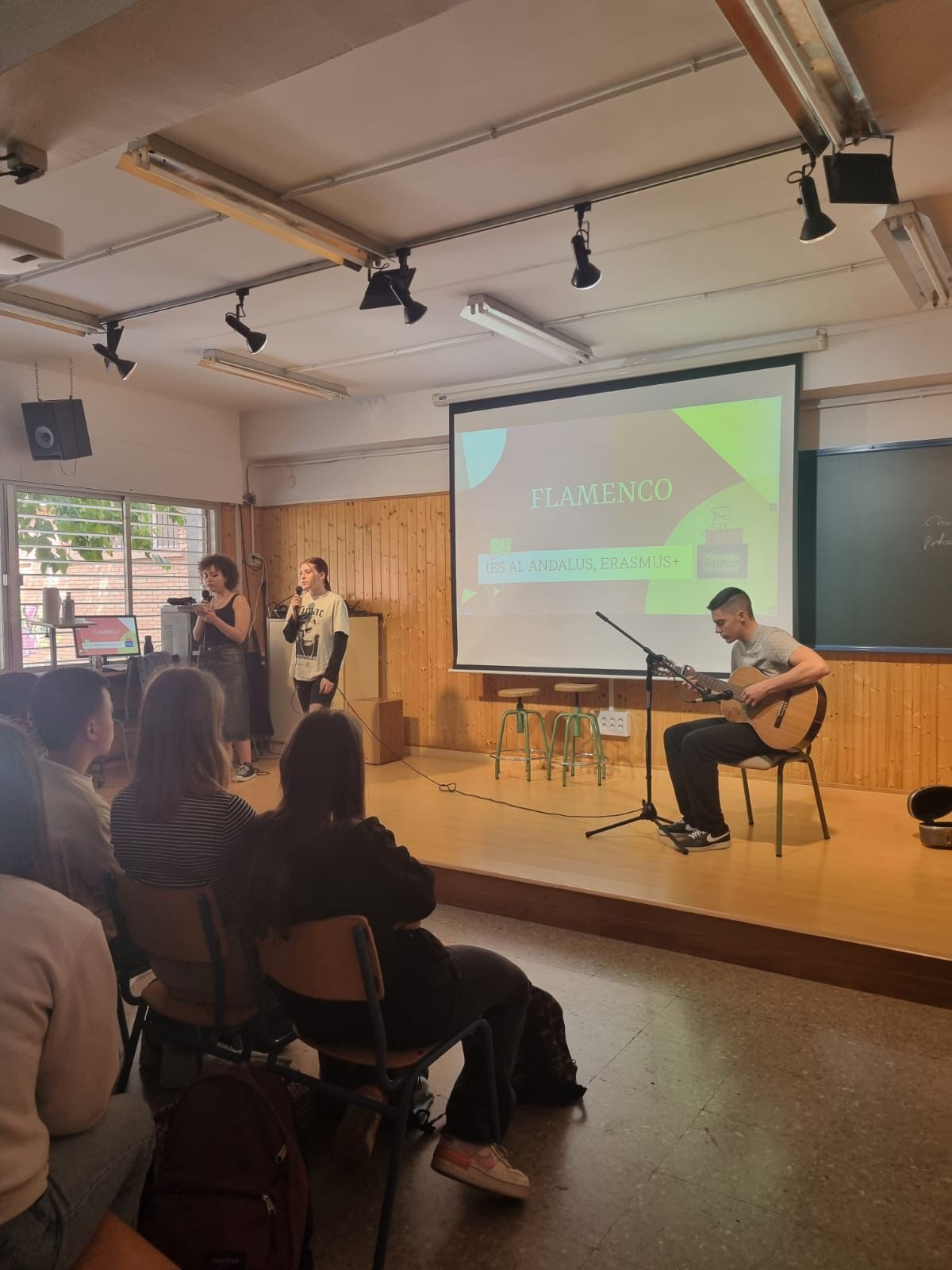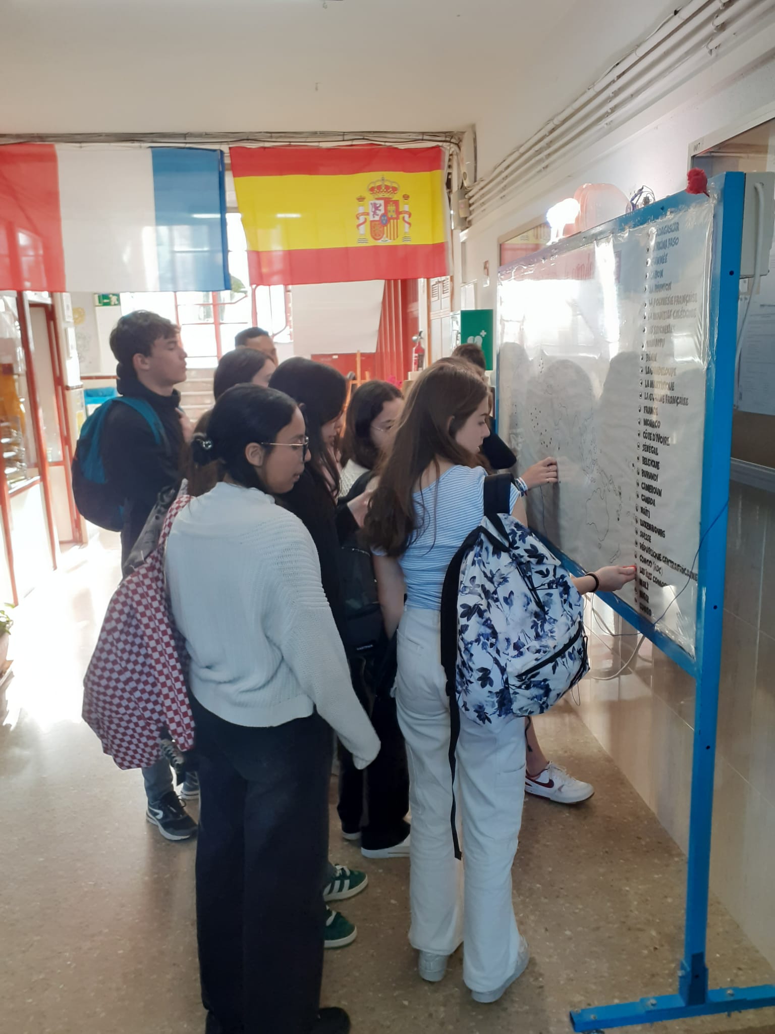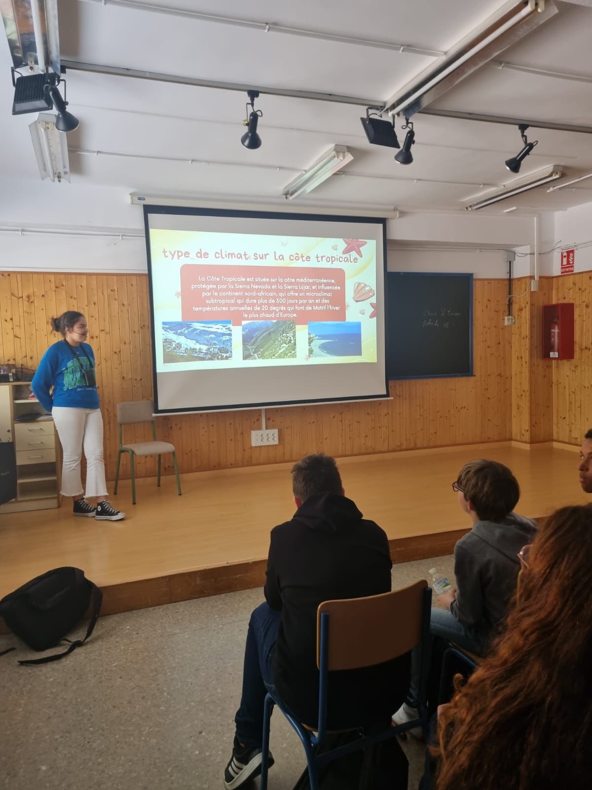 El lunes 8 de abril los estudiantes de la Bretaña francesa conocieron más de cerca el sistema educativo español. Tras asistir a sus primeras clases, todo el alumnado participante en el proyecto pudo disfrutar de un desayuno preparado con ayuda del AMPA, y acompañados por el Coordinador Erasmus+, vicedirección y los profesores organizadores. Después, se acercaron a la cultura flamenca gracias al bonito Taller Flamenco creado por los alumnos de música y del bachillerato de Artes escénicas, junto a su profesora Isabel Quirós. Los bretones aprendieron hasta sus primeros pasos por sevillanas 💃🏻 . La jornada terminó con las presentaciones en francés de los alumnos de 3°A, B y C de este intercambio donde explicaron todos los puntos del programa a sus nuevos compañeros: Almuñécar, Nerja, Frigiliana, Granada, la Alhambra, Andalucía, gastronomía, historia, personajes ilustres, clima tropical, curiosidades etc.