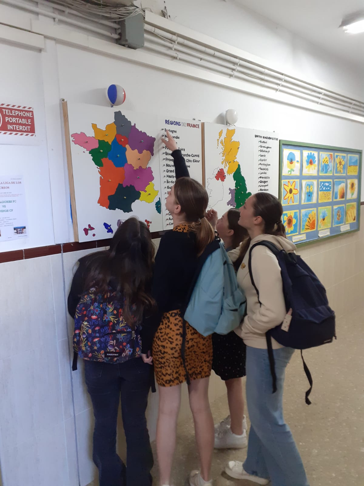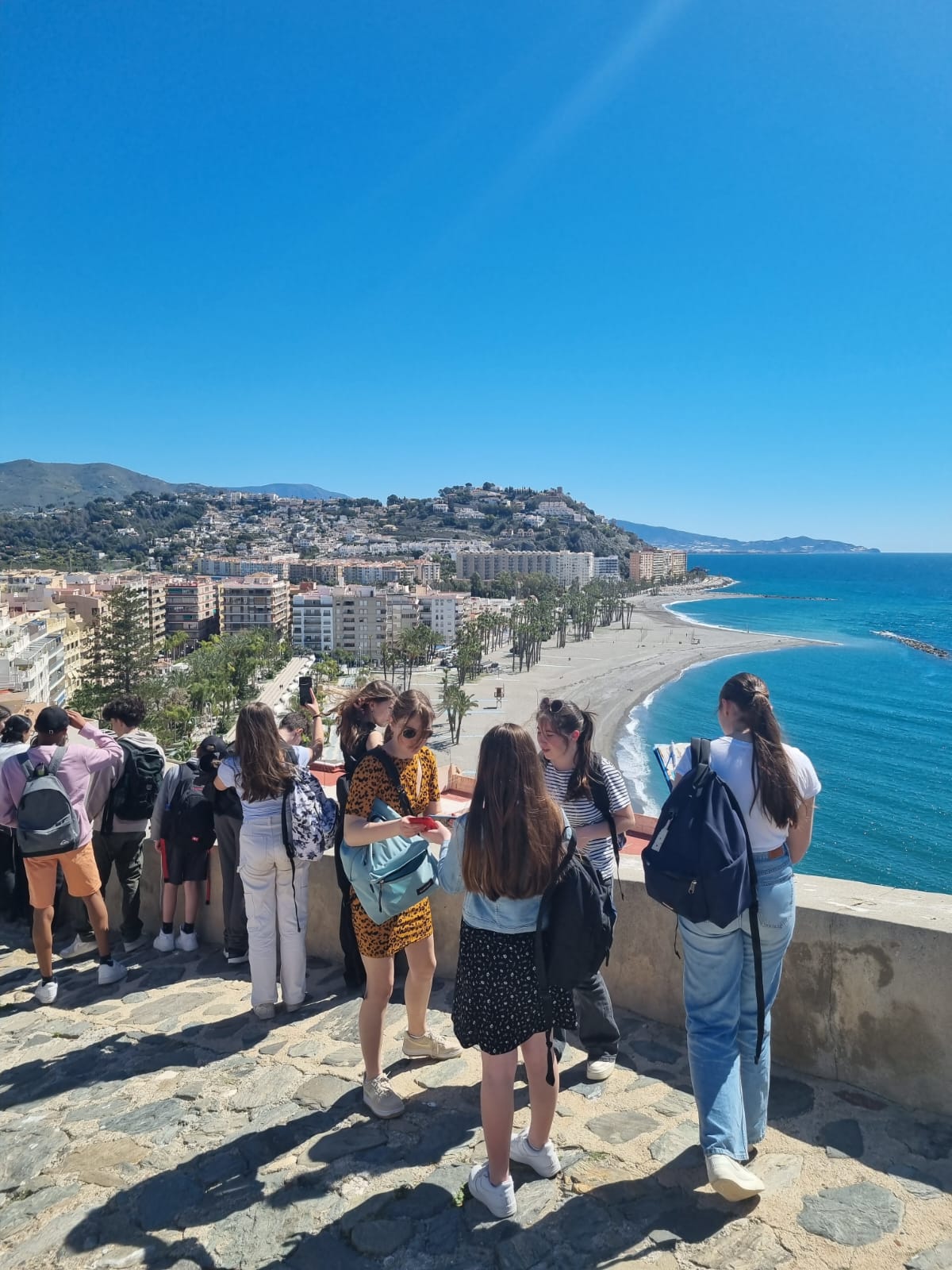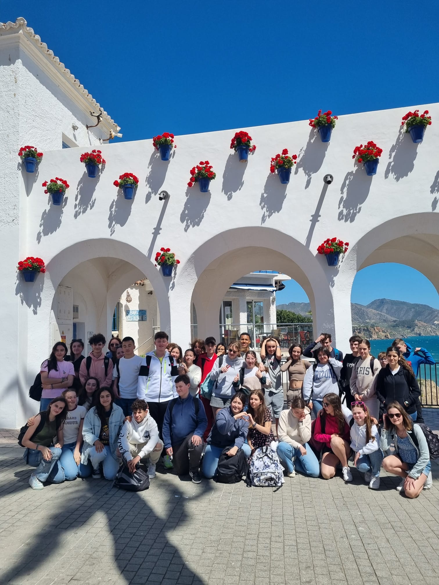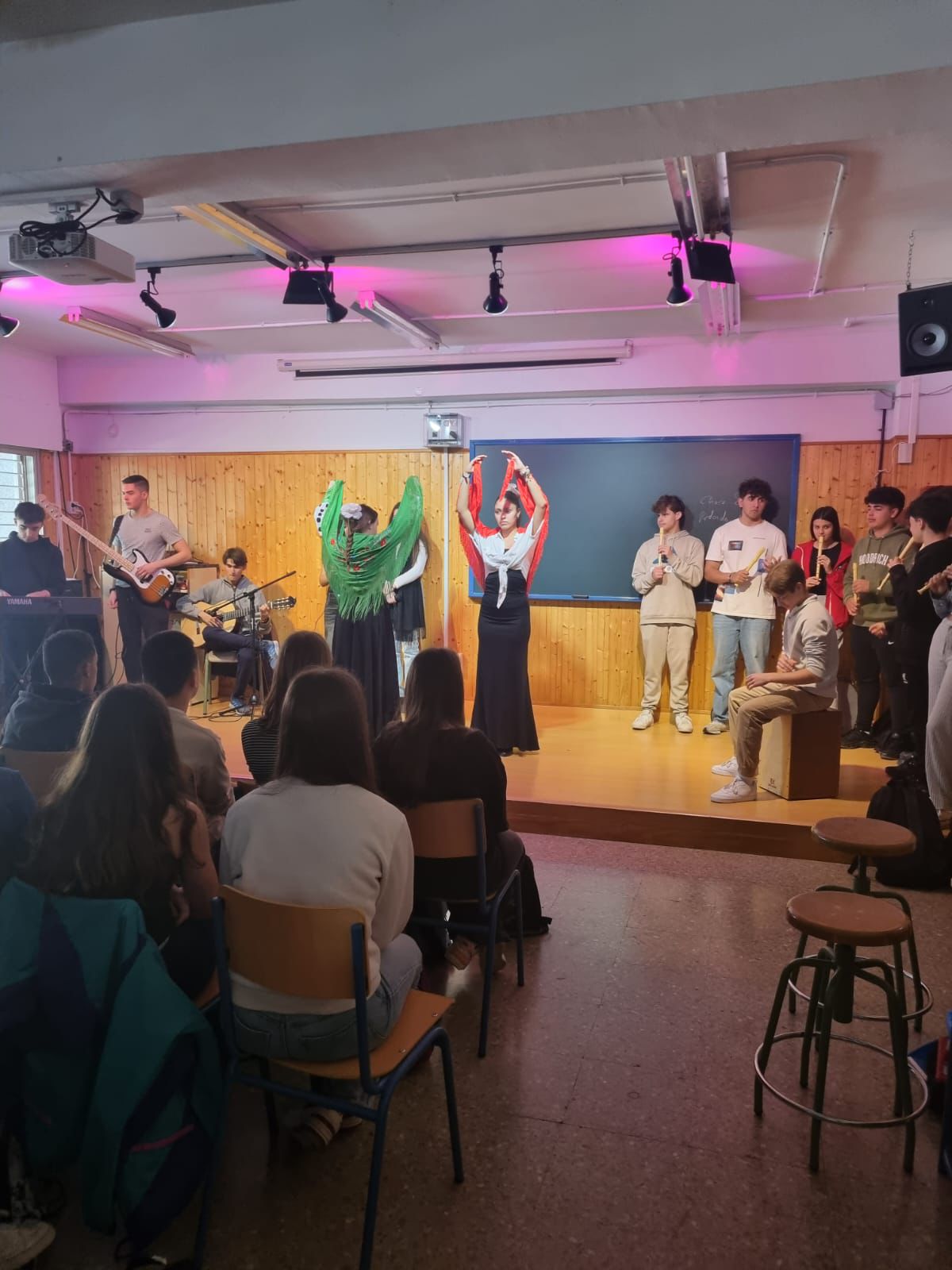 El lunes 8 de abril los estudiantes de la Bretaña francesa conocieron más de cerca el sistema educativo español. Tras asistir a sus primeras clases, todo el alumnado participante en el proyecto pudo disfrutar de un desayuno preparado con ayuda del AMPA, y acompañados por el Coordinador Erasmus+, vicedirección y los profesores organizadores. Después, se acercaron a la cultura flamenca gracias al bonito Taller Flamenco creado por los alumnos de música y del bachillerato de Artes escénicas, junto a su profesora Isabel Quirós. Los bretones aprendieron hasta sus primeros pasos por sevillanas 💃🏻 . La jornada terminó con las presentaciones en francés de los alumnos de 3°A, B y C de este intercambio donde explicaron todos los puntos del programa a sus nuevos compañeros: Almuñécar, Nerja, Frigiliana, Granada, la Alhambra, Andalucía, gastronomía, historia, personajes ilustres, clima tropical, curiosidades etc.