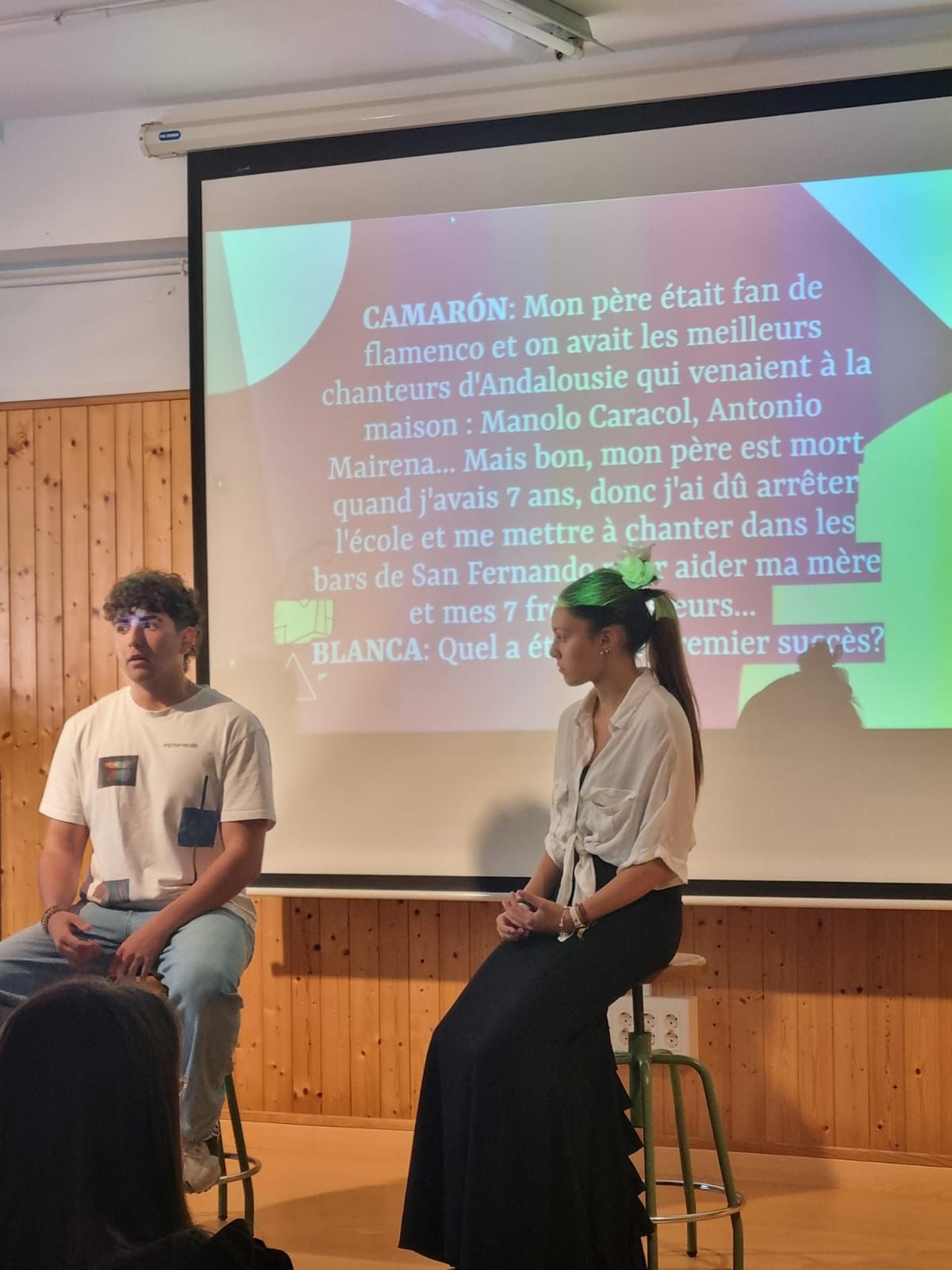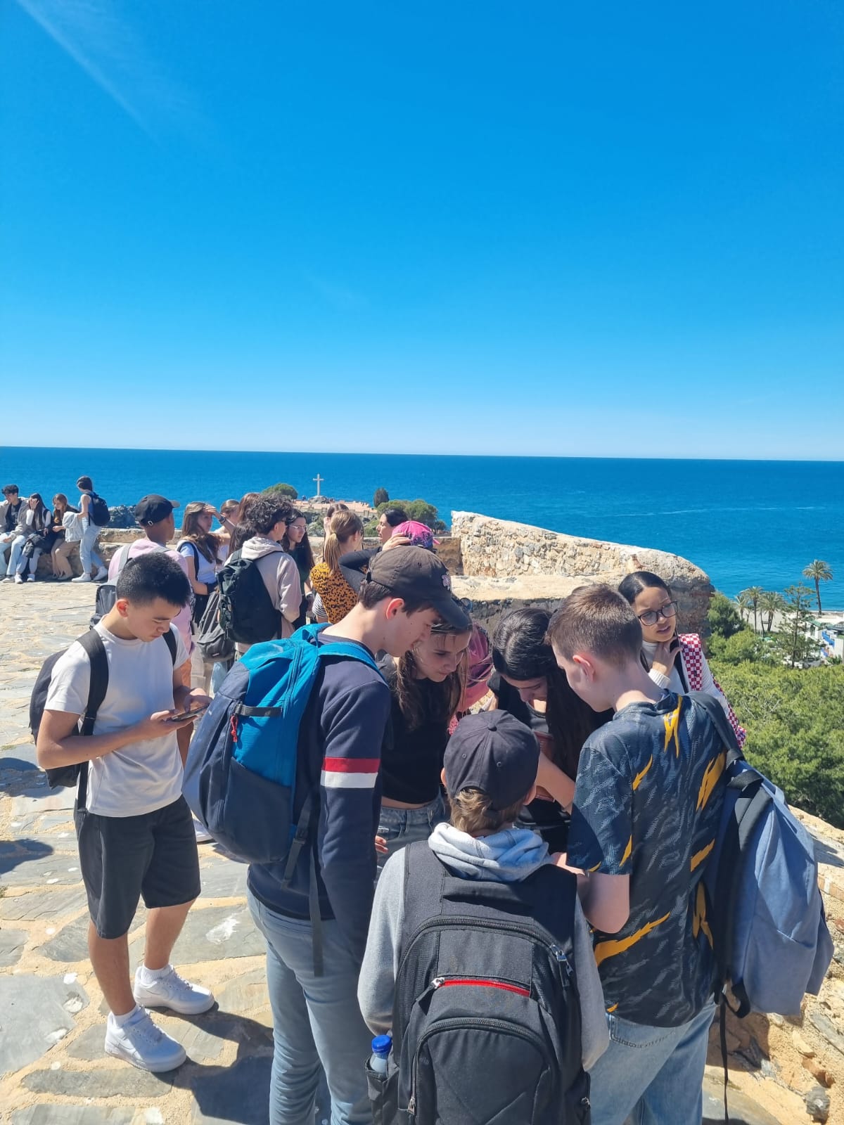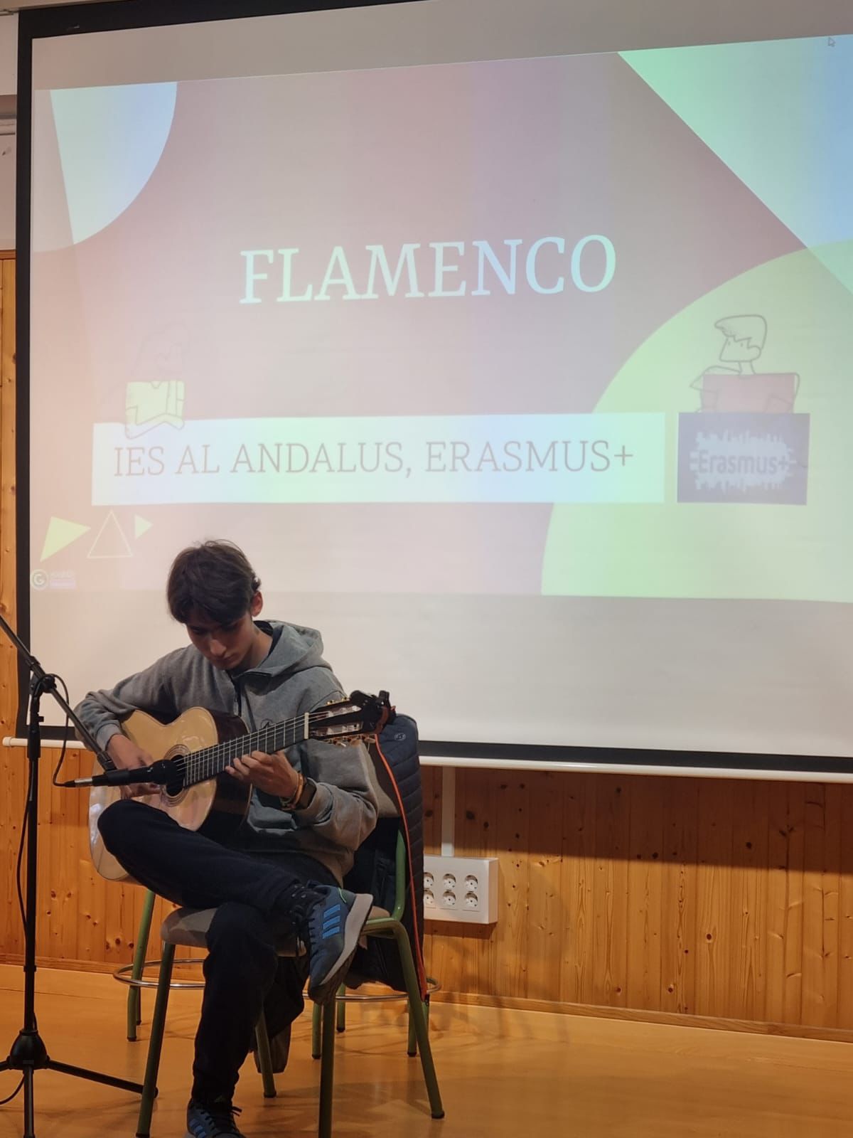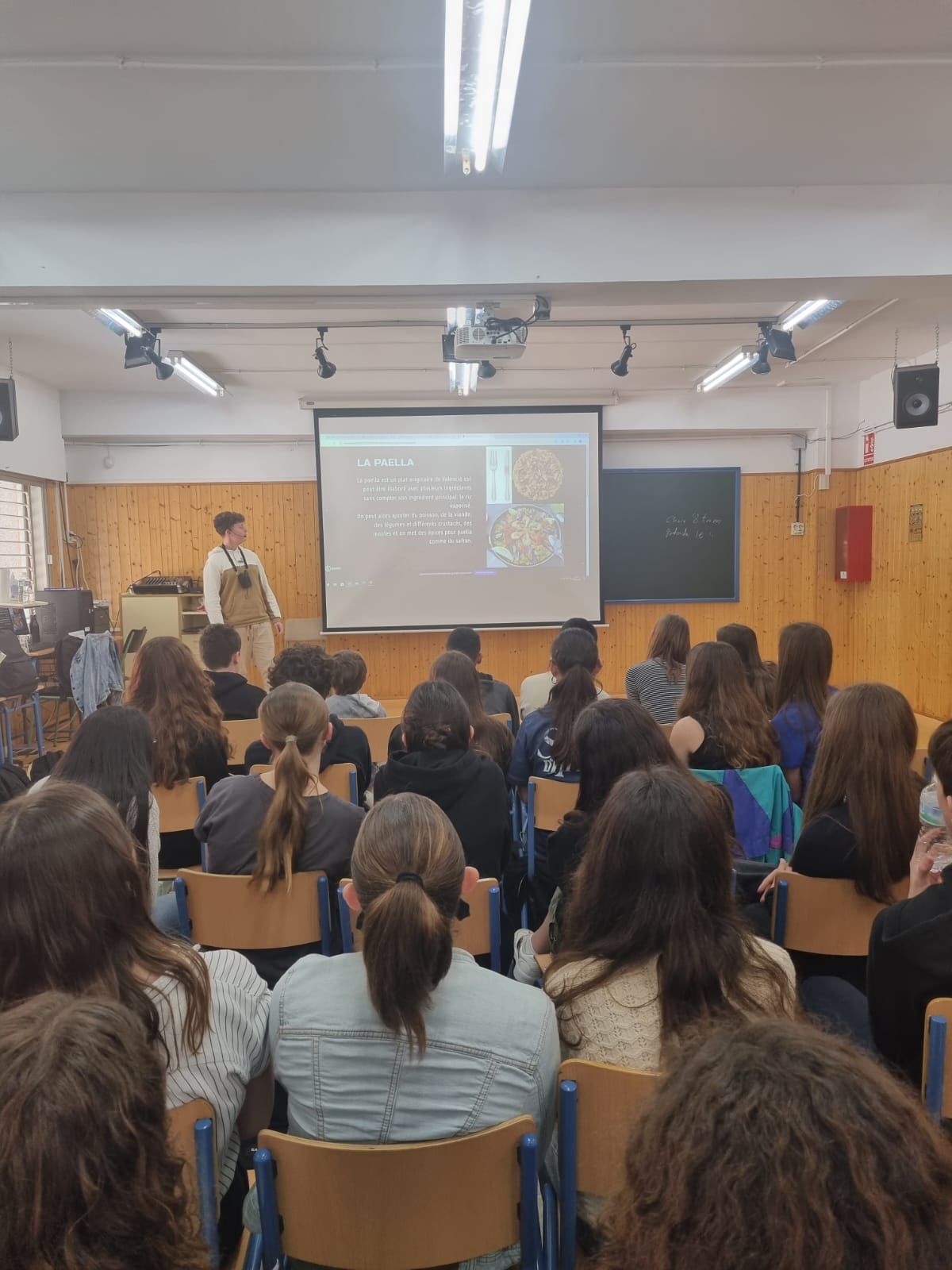 El lunes 8 de abril los estudiantes de la Bretaña francesa conocieron más de cerca el sistema educativo español. Tras asistir a sus primeras clases, todo el alumnado participante en el proyecto pudo disfrutar de un desayuno preparado con ayuda del AMPA, y acompañados por el Coordinador Erasmus+, vicedirección y los profesores organizadores. Después, se acercaron a la cultura flamenca gracias al bonito Taller Flamenco creado por los alumnos de música y del bachillerato de Artes escénicas, junto a su profesora Isabel Quirós. Los bretones aprendieron hasta sus primeros pasos por sevillanas 💃🏻 . La jornada terminó con las presentaciones en francés de los alumnos de 3°A, B y C de este intercambio donde explicaron todos los puntos del programa a sus nuevos compañeros: Almuñécar, Nerja, Frigiliana, Granada, la Alhambra, Andalucía, gastronomía, historia, personajes ilustres, clima tropical, curiosidades etc.