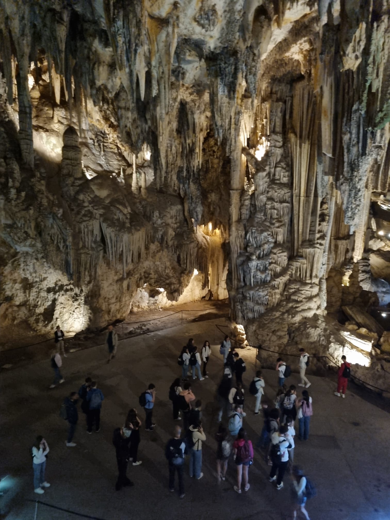 Visita audioguiada a las Cuevas de Nerja y viaje de emociones en su simulador de realidad virtual. Centro histórico de Nerja, balcón de Europa, parada en pizzeria incluida, y terminamos el día paseando por Frigiliana.